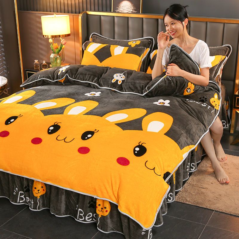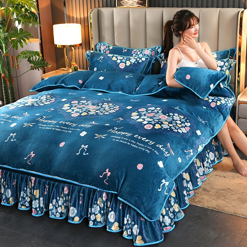 加绒加厚冬季牛奶绒四件套珊瑚被套三件套床裙裙款床上用品