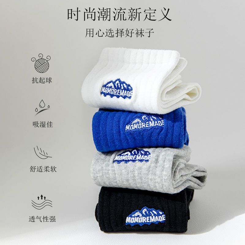 诸暨袜子男款中筒袜秋冬季加厚保暖ins潮百搭纯色运动情侣长袜女