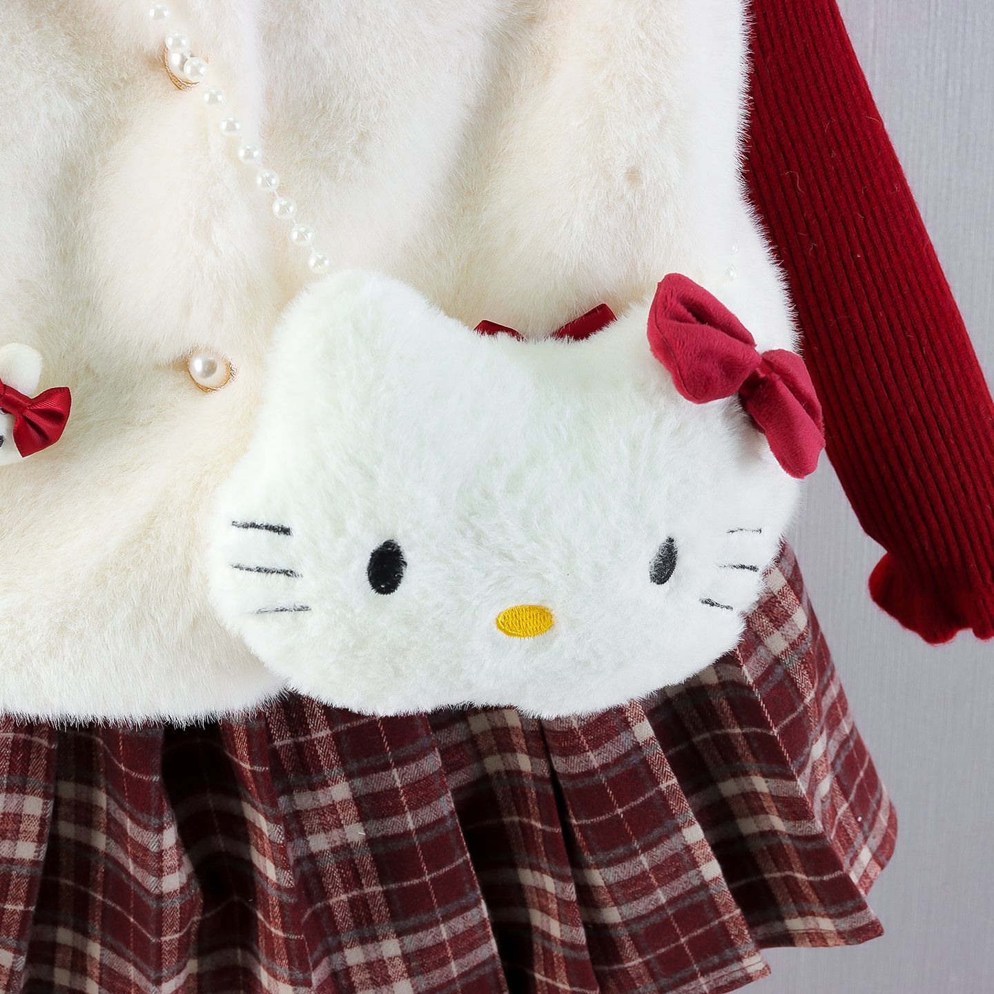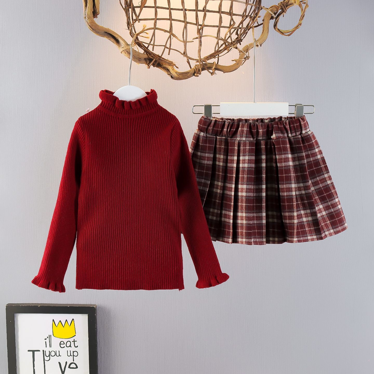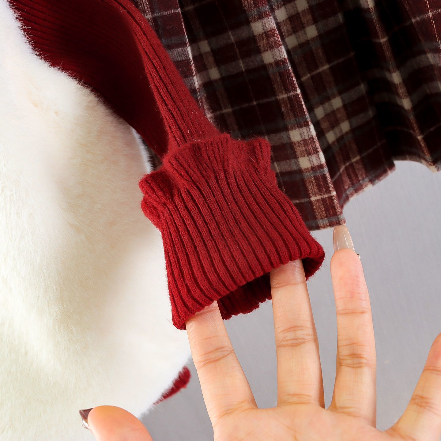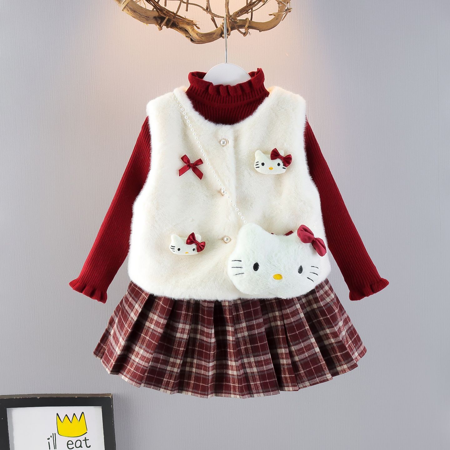 女童秋冬装洋气套装宝宝毛毛马甲加绒半身裙毛衣三件套新年拜年服