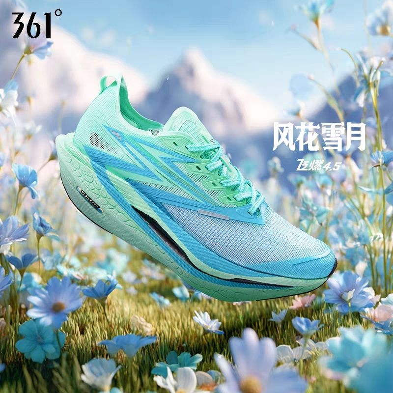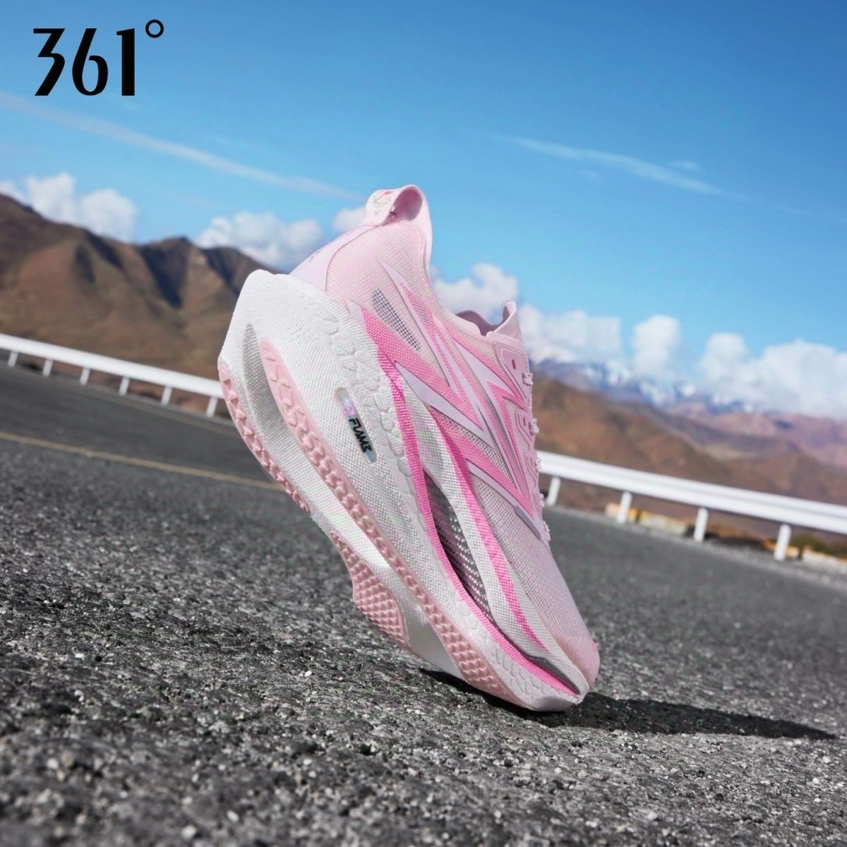 361°飞燃4.5桃花韵体测跑步鞋马拉松碳板竞速跑鞋减震透气运动鞋