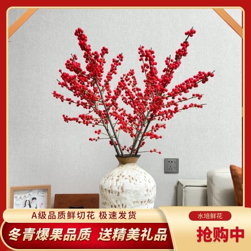 {顺丰包邮}北美冬青鲜切枝水培红果鲜花年宵花红乔迁一件代发