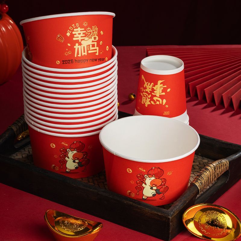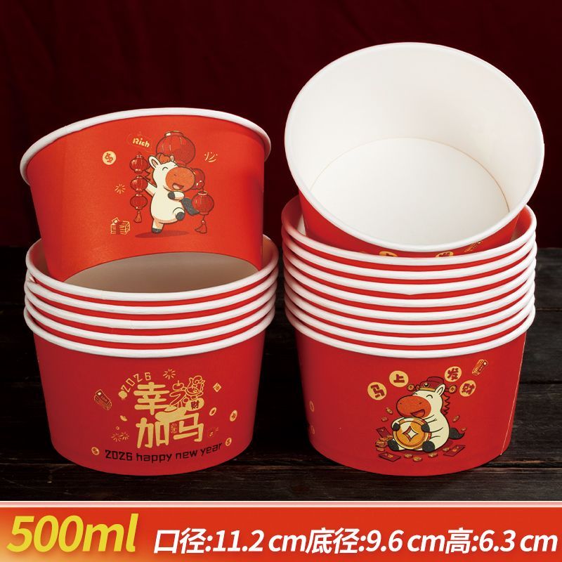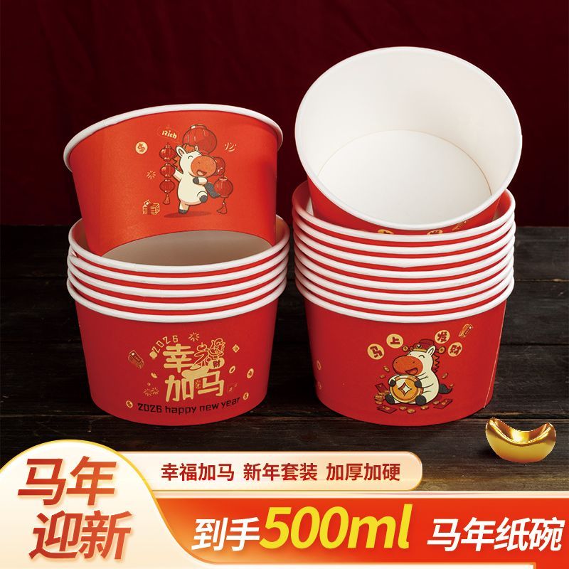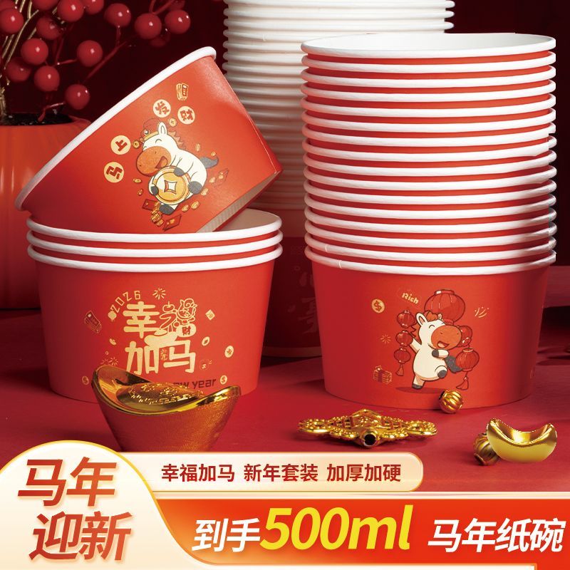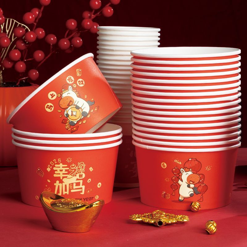 【到手50个】2026马年加厚福字纸碗家用春节一次性饭碗新年过年碗