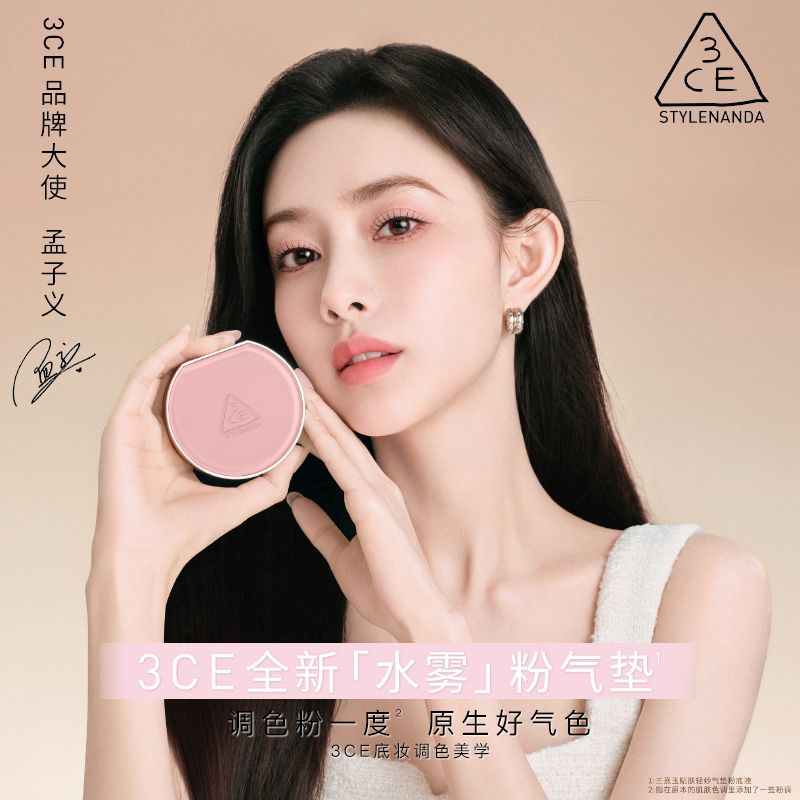 3ce水雾粉气垫新款正装遮瑕粉底液遮瑕保湿持久不脱妆光感送女友