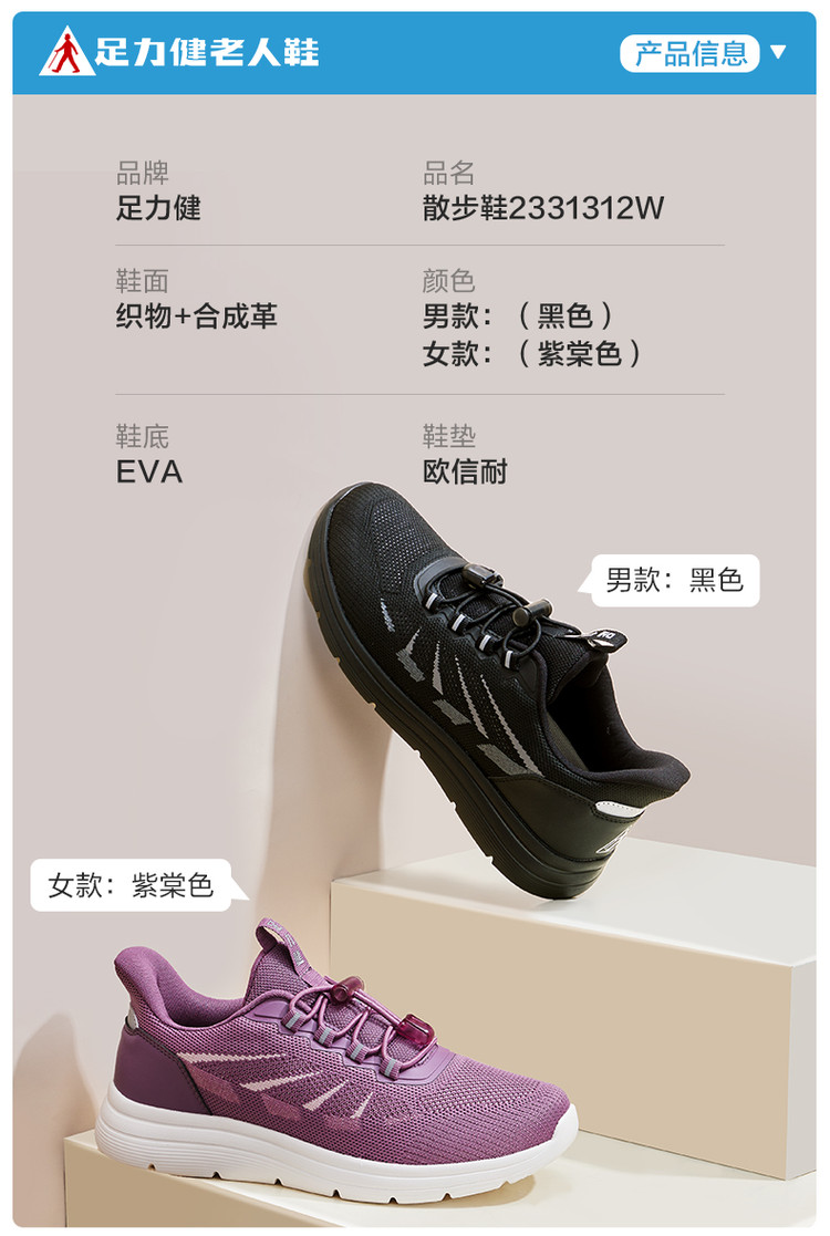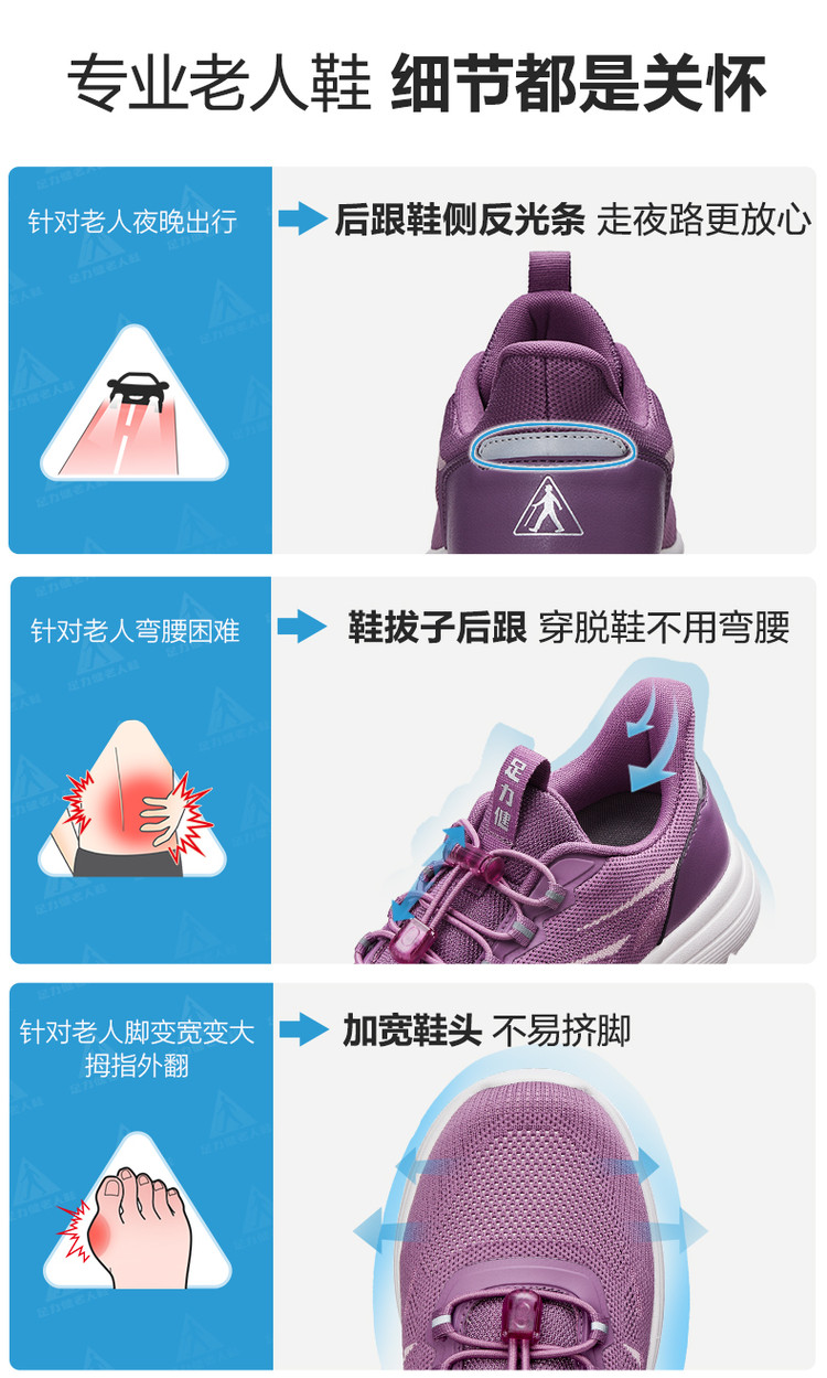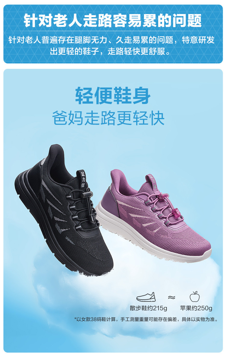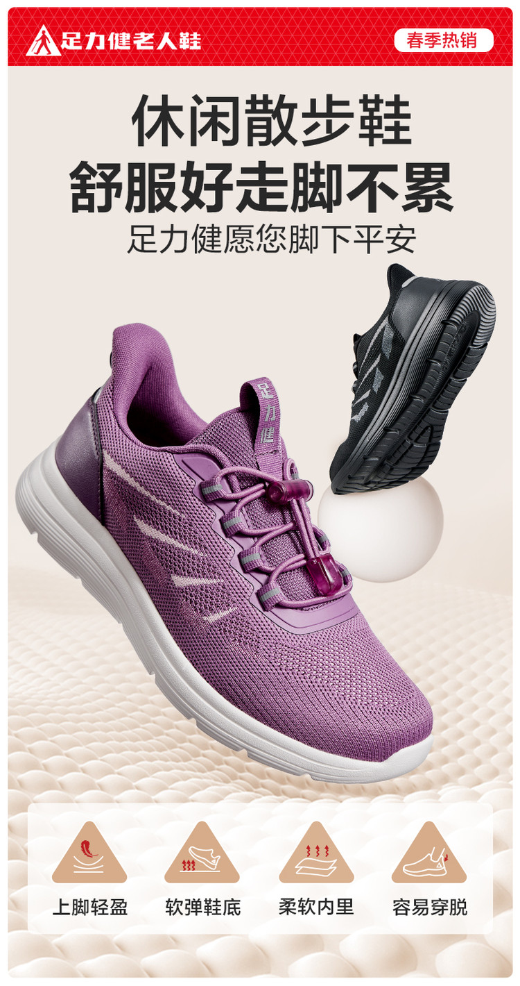 足力健 年货必抢【超软】春季爸妈中老年男女一脚蹬四季休闲运动健步鞋