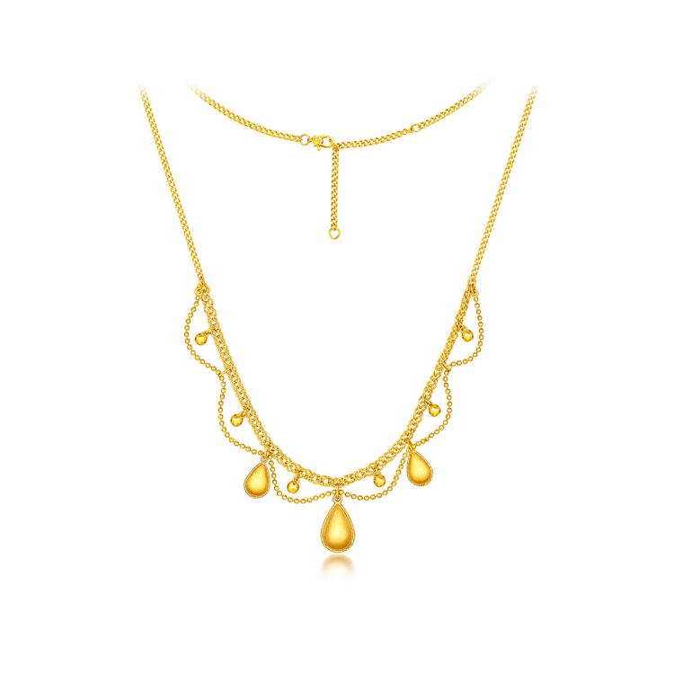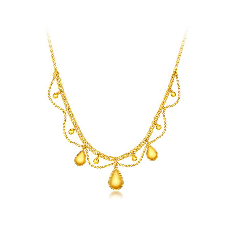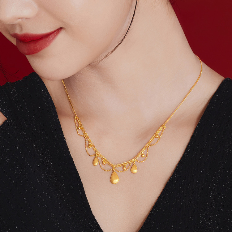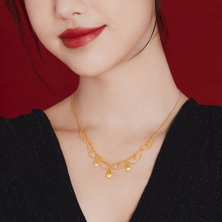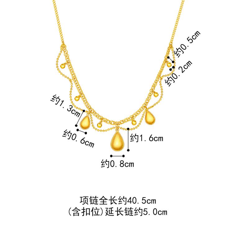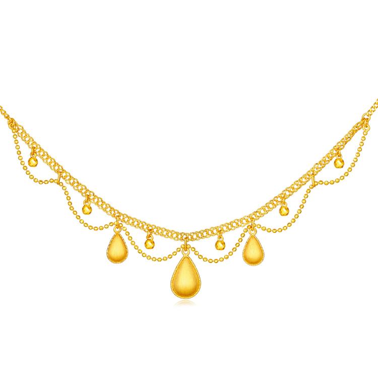 六福珠宝 【情人节礼物】黄金项链丝绸金蕾丝水滴女足金套链计价