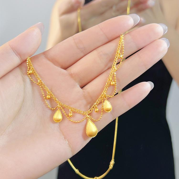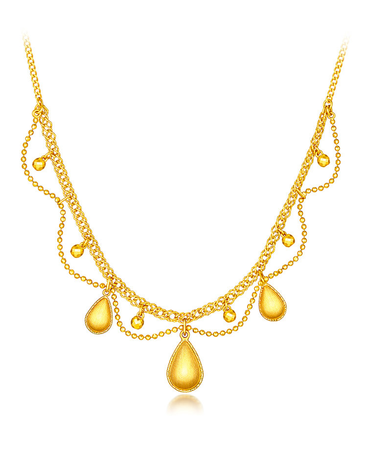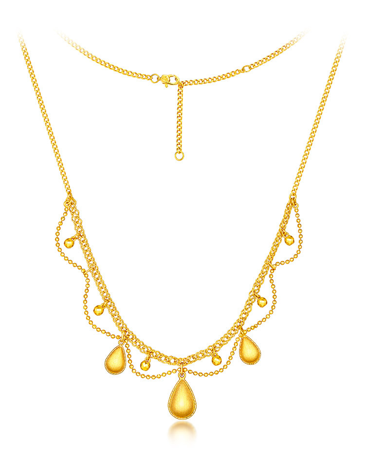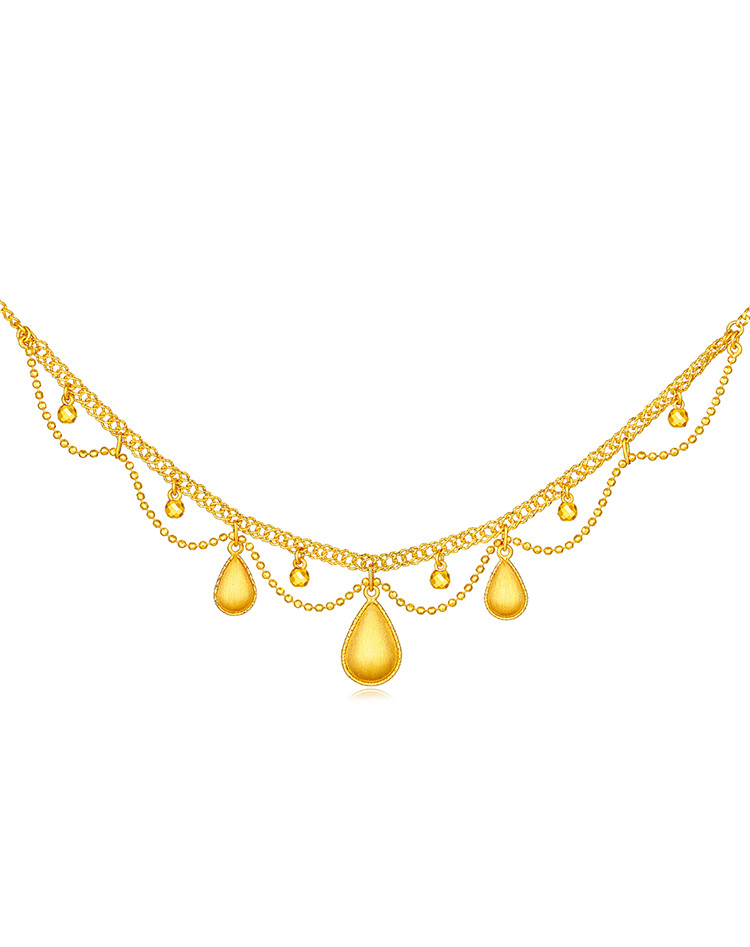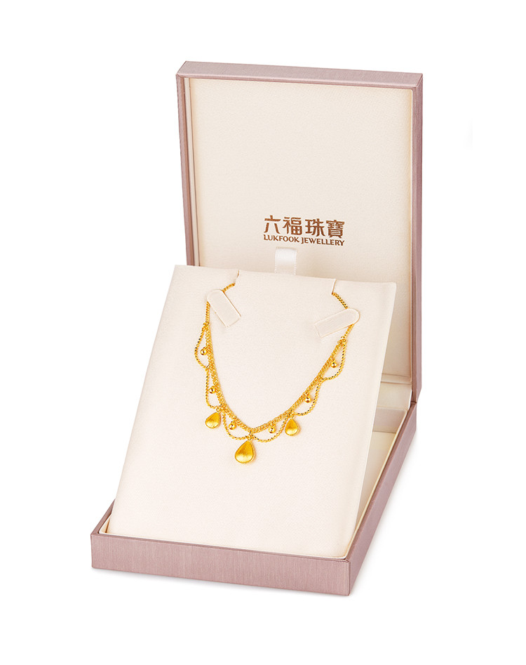 六福珠宝 【情人节礼物】黄金项链丝绸金蕾丝水滴女足金套链计价