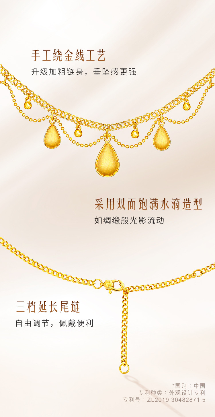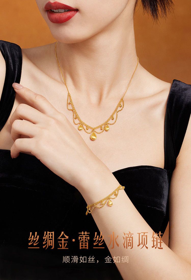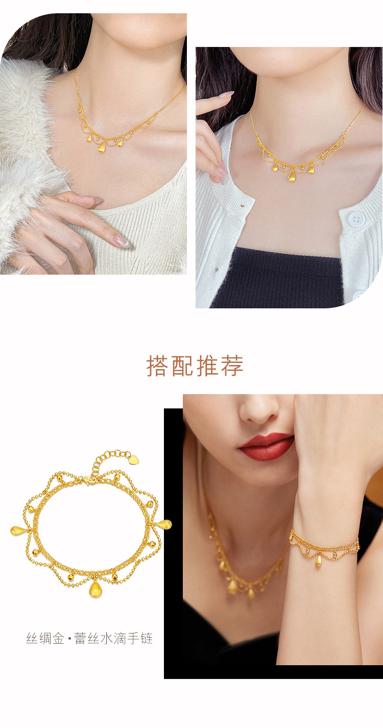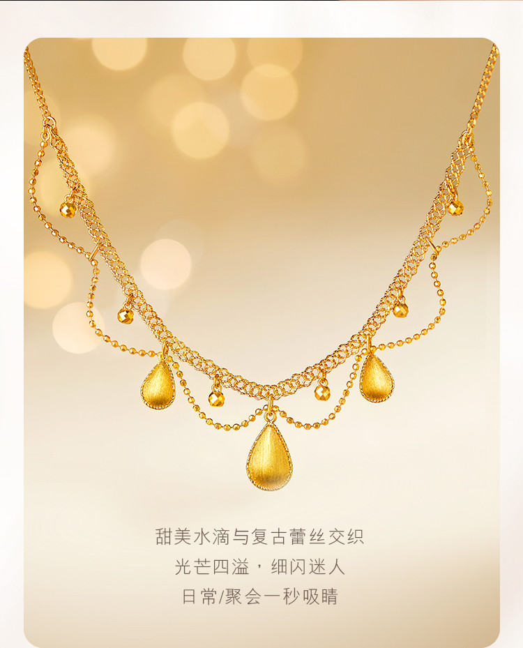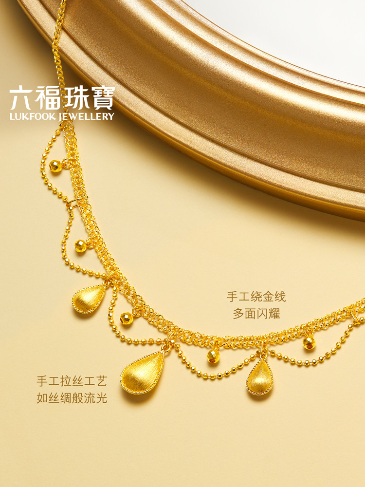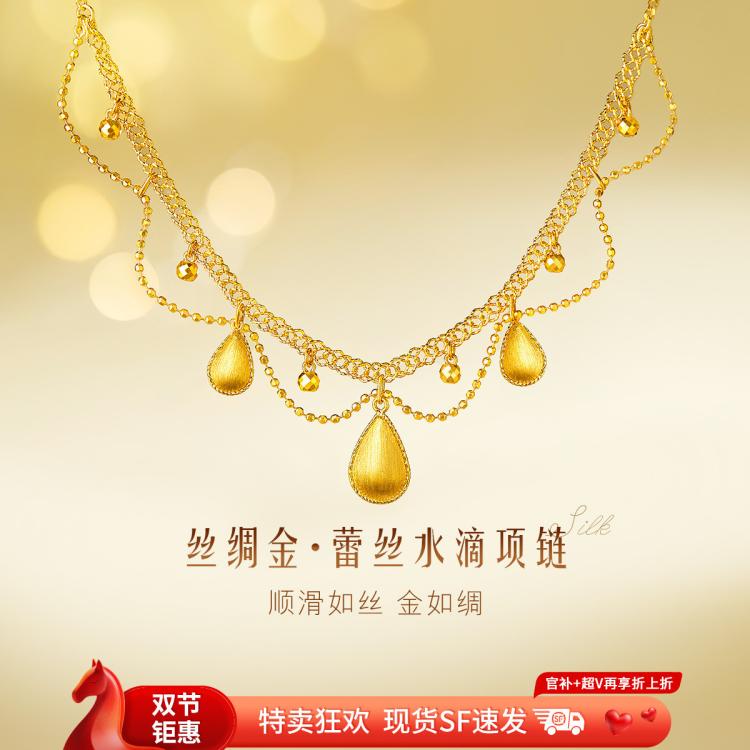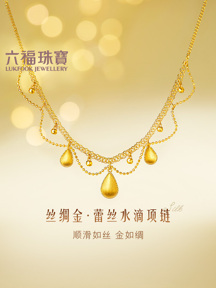 六福珠宝 【情人节礼物】黄金项链丝绸金蕾丝水滴女足金套链计价 【售价】:¥12747.14 下单链接: