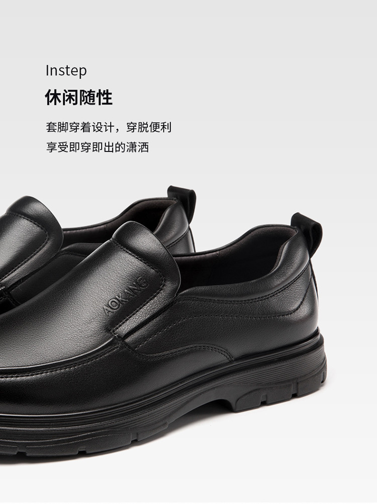 奥康 【真皮】男士商务休闲皮鞋秋季牛皮百搭一脚蹬透气舒适软底爸爸鞋