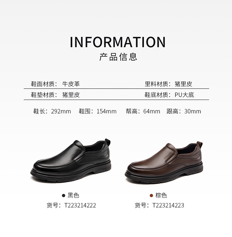 奥康 【真皮】男士商务休闲皮鞋秋季牛皮百搭一脚蹬透气舒适软底爸爸鞋 【售价】:¥207 下单链接: