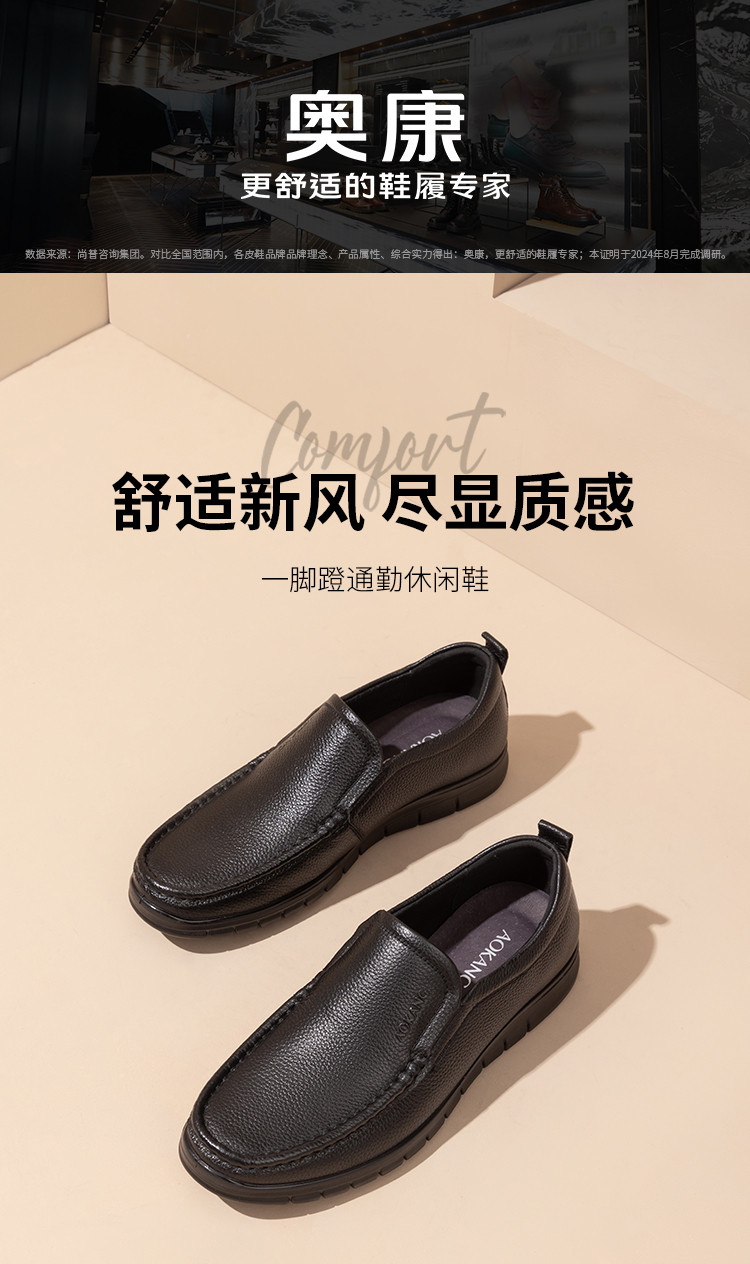 奥康 【牛皮】男士商务正装皮鞋春秋一脚蹬套脚鞋舒适爸爸鞋百搭男单鞋 【售价】:¥179 下单链接: