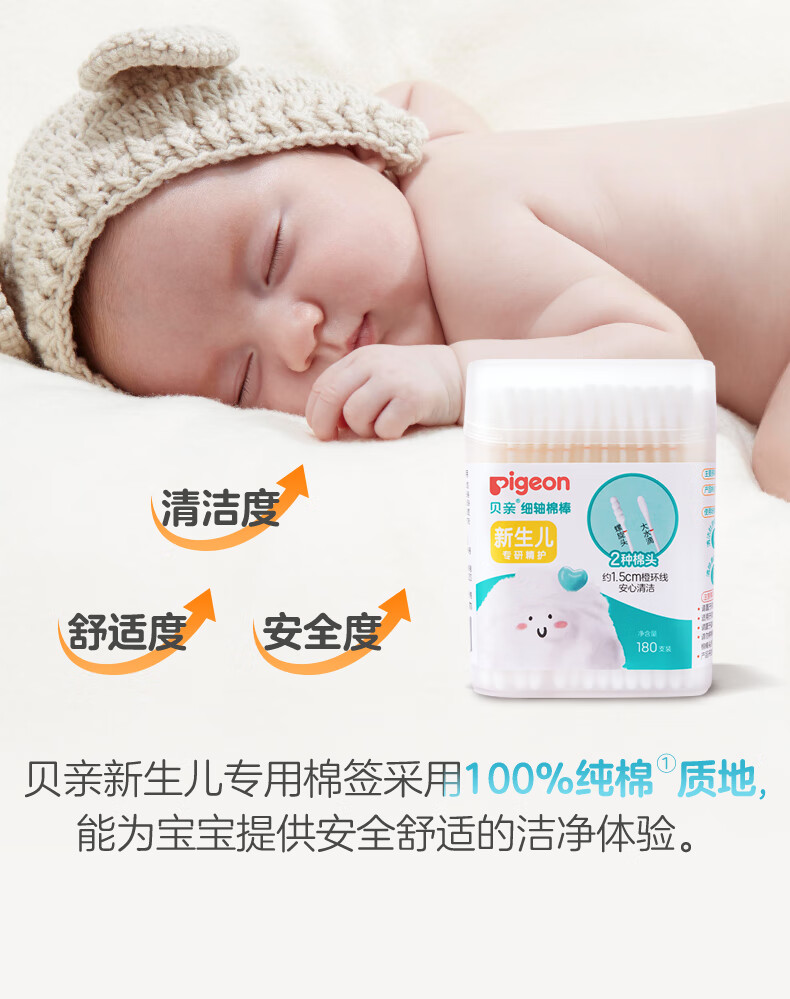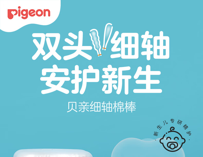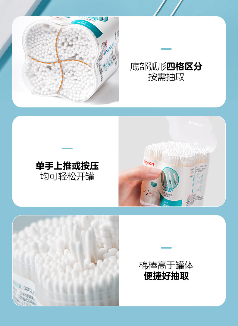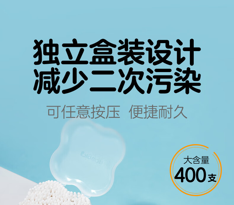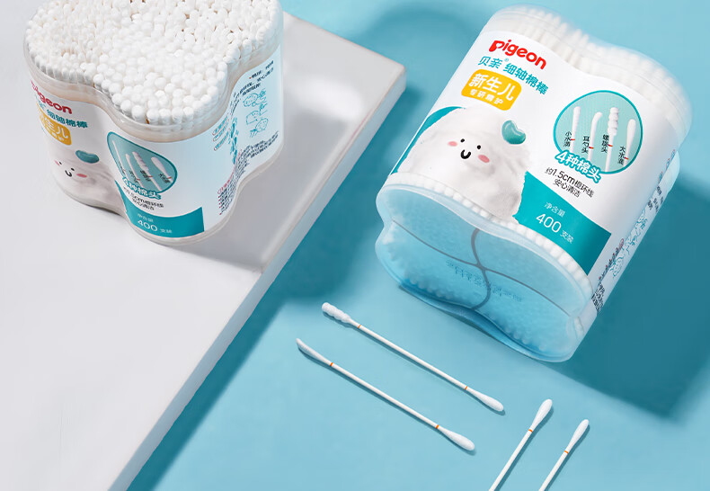 贝亲婴儿棉签棉棒 细轴棉棒 耳孔清洁棉签 肚脐清洁棉签 400支装 KA53