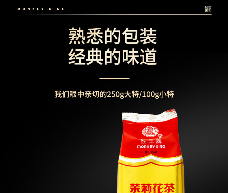 猴王牌茉莉花茶横县茉莉花茶浓香型特级特制共250g袋装特级茶
