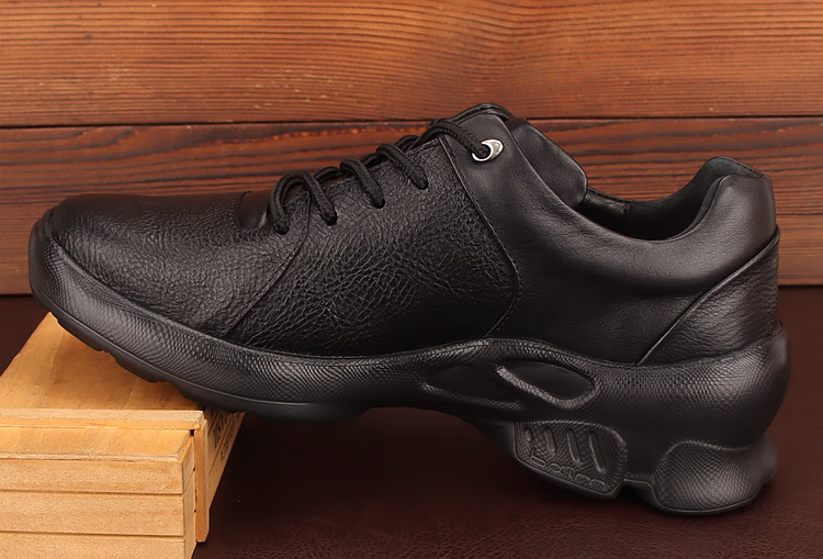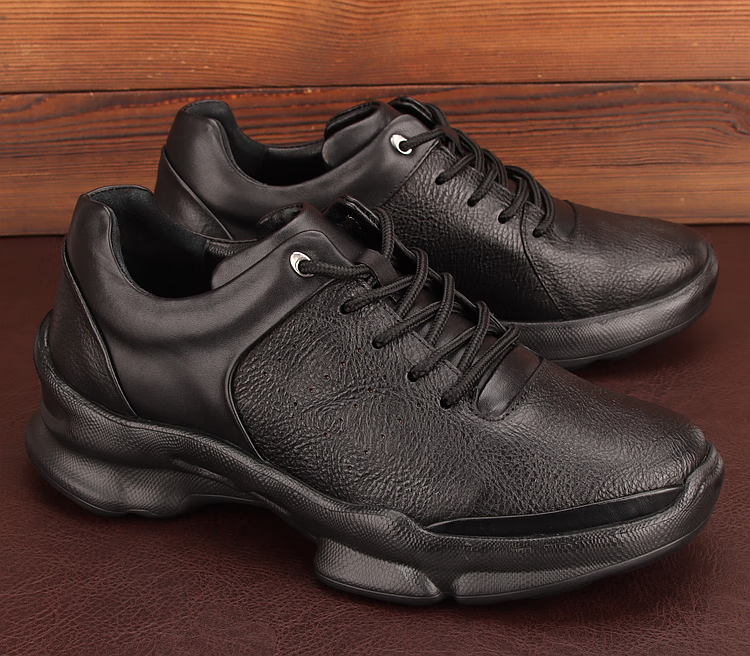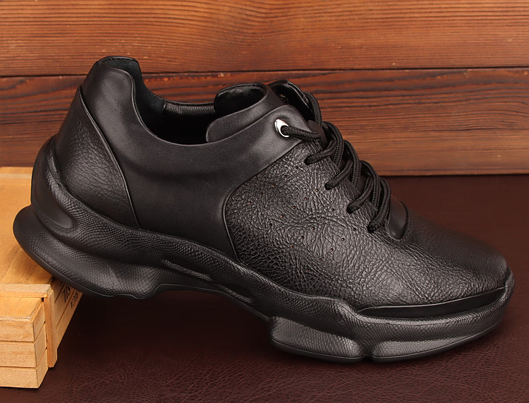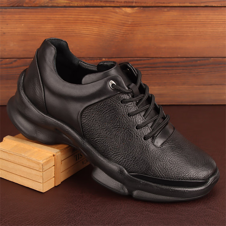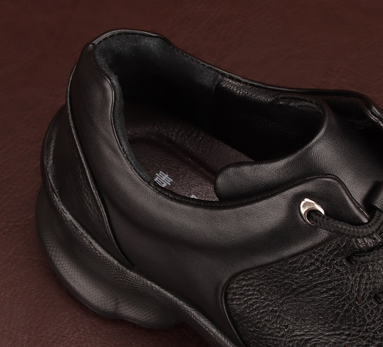 稻草人(MEXICAN)品牌真皮男鞋秋季新款头层牛皮运动休闲皮鞋男黑色厚底轻便老爹鞋 黑色 38
