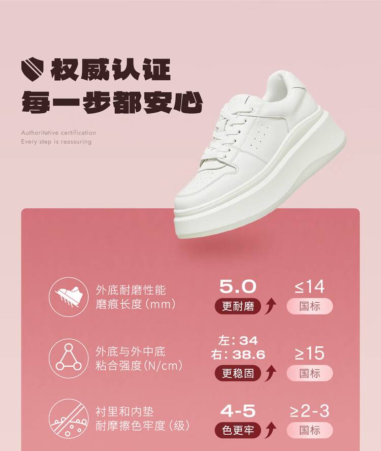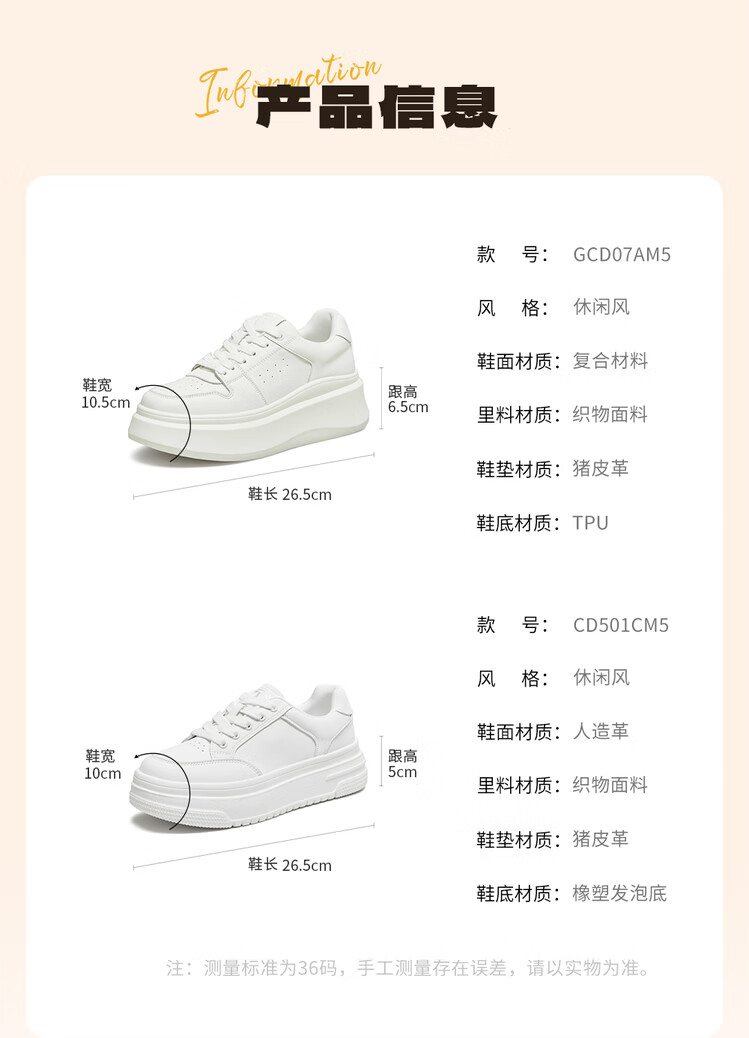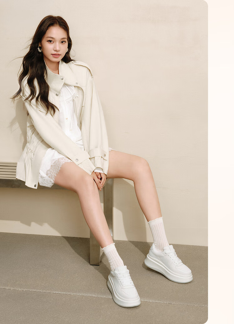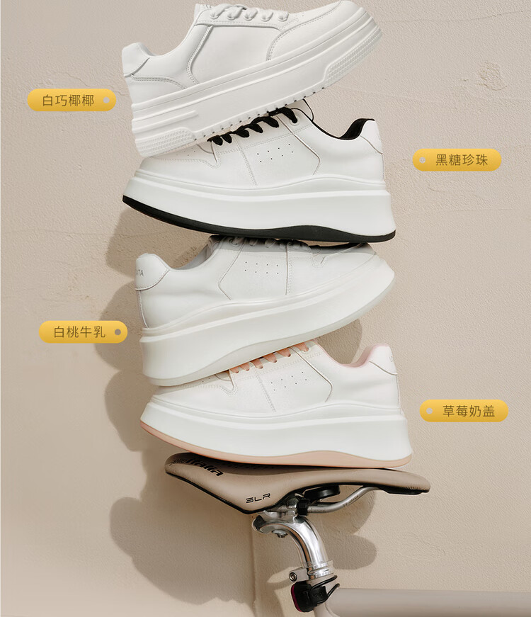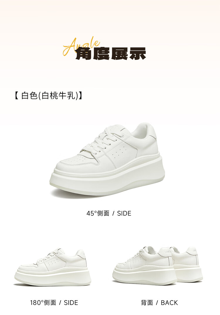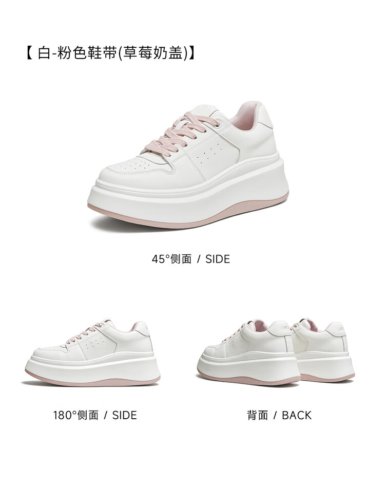 百思图25春户外运动小白鞋厚底圆头女休闲鞋V0121AM5 白色 37