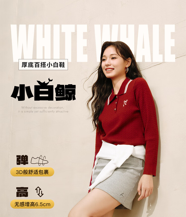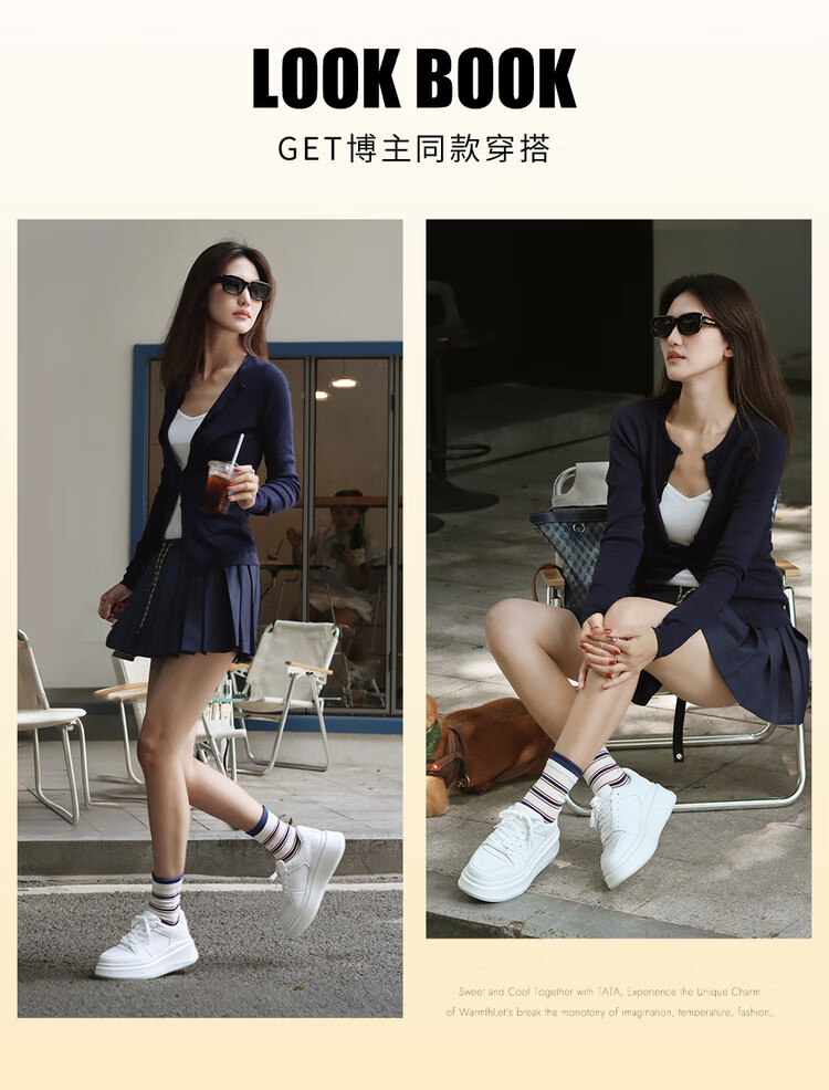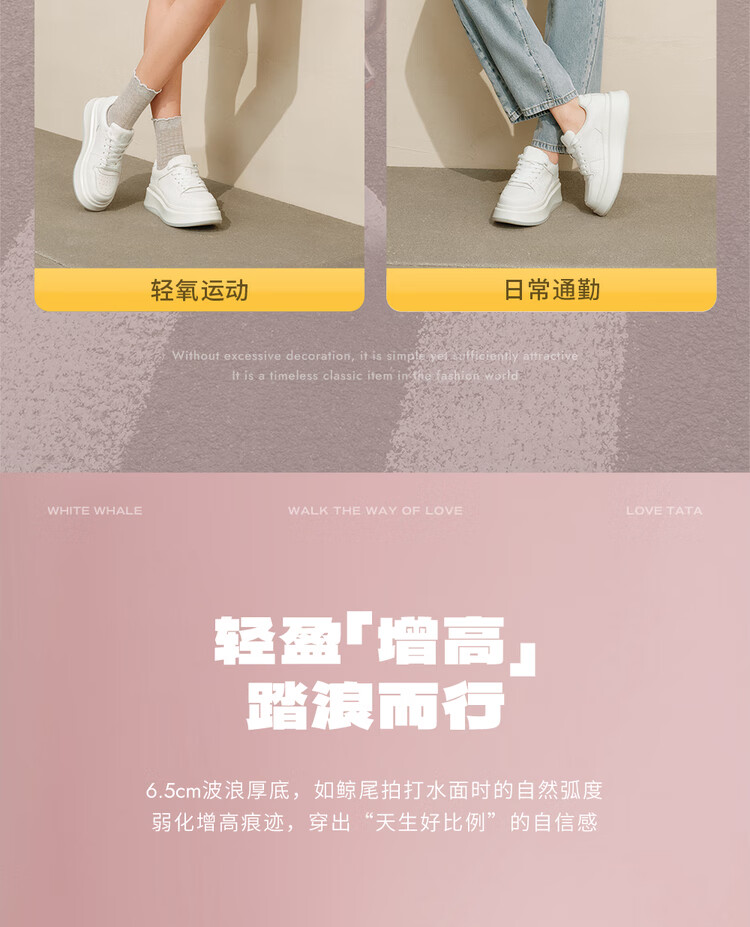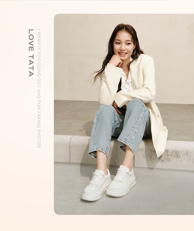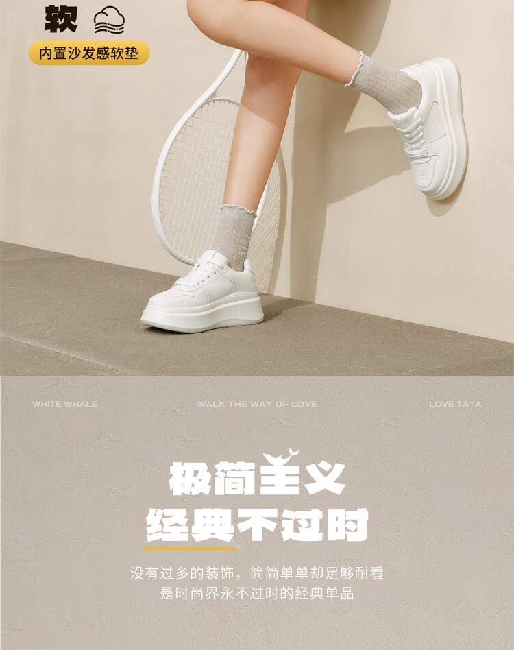 他她(TATA)TATA孙乐言同款小白鲸厚底休闲板鞋女加绒 白色AM6 36