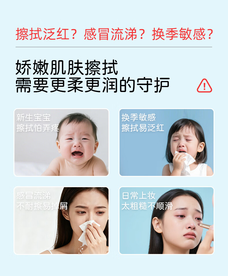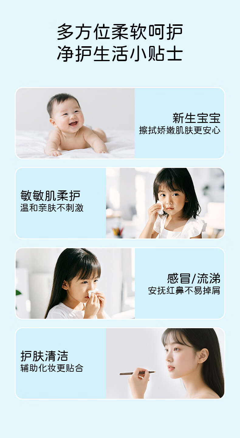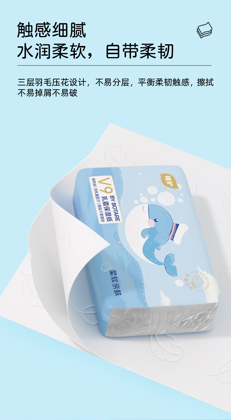 植护乳霜纸3层*100抽*3包体验装婴儿保湿绒柔纸护鼻云柔纸鼻炎擦鼻涕