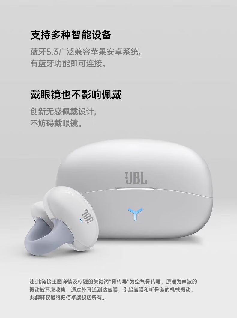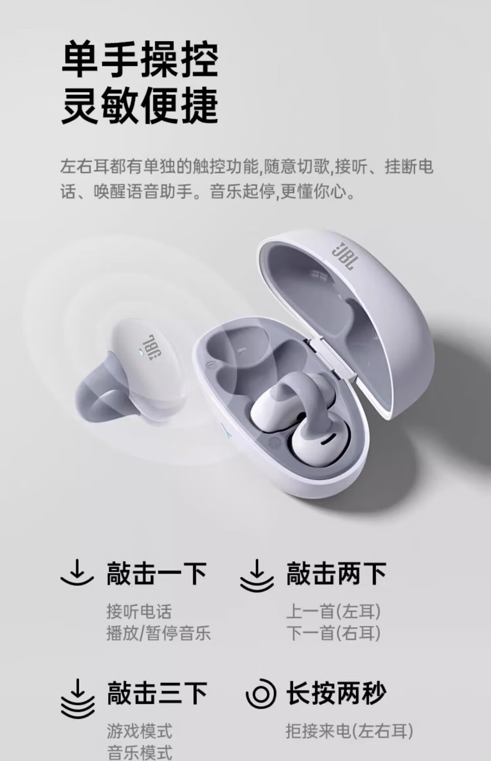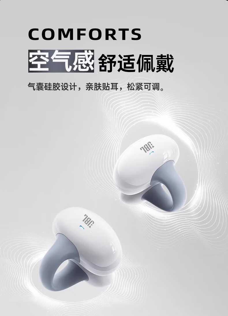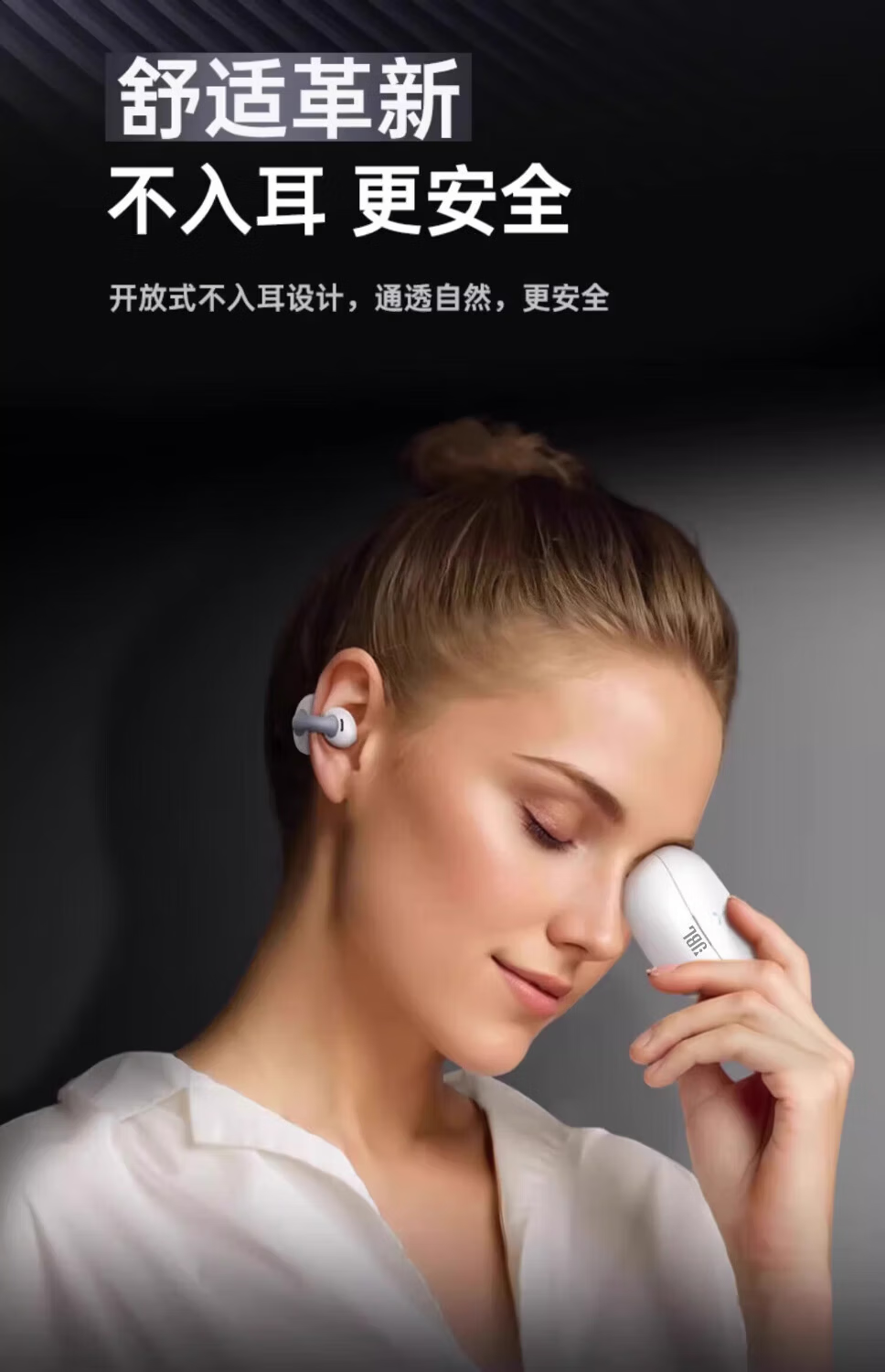 JBL蓝牙耳机真无线降噪骨传导夹耳式不入耳手机通用运动久戴不痛 云岩白款