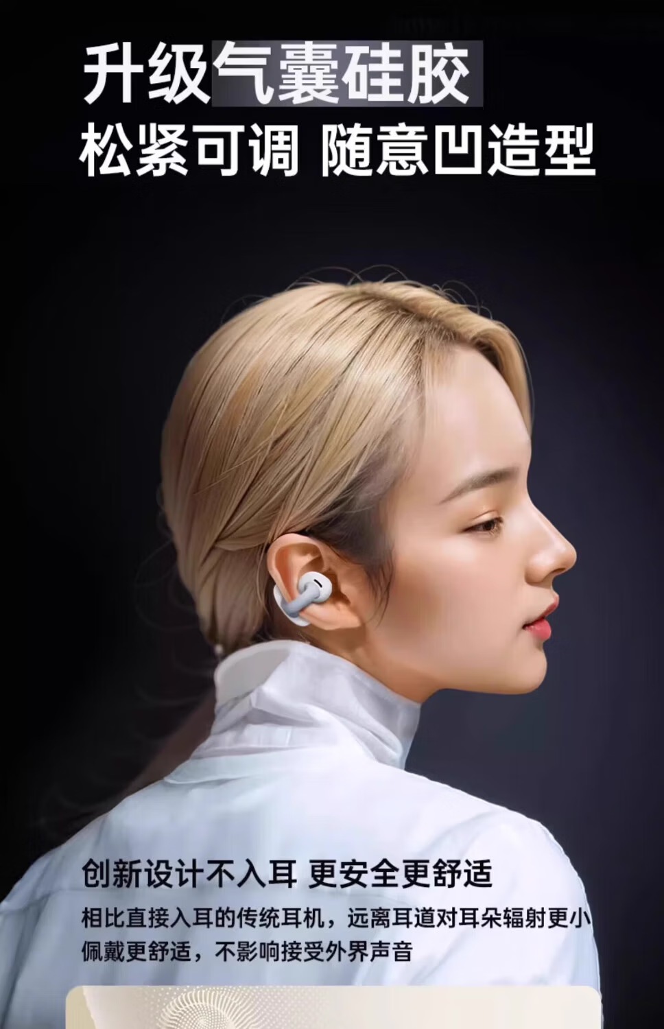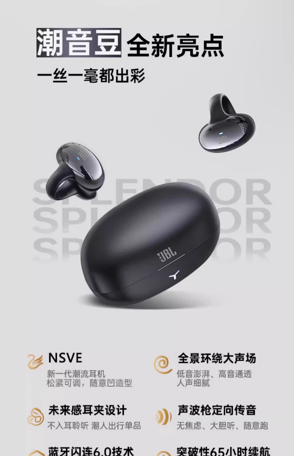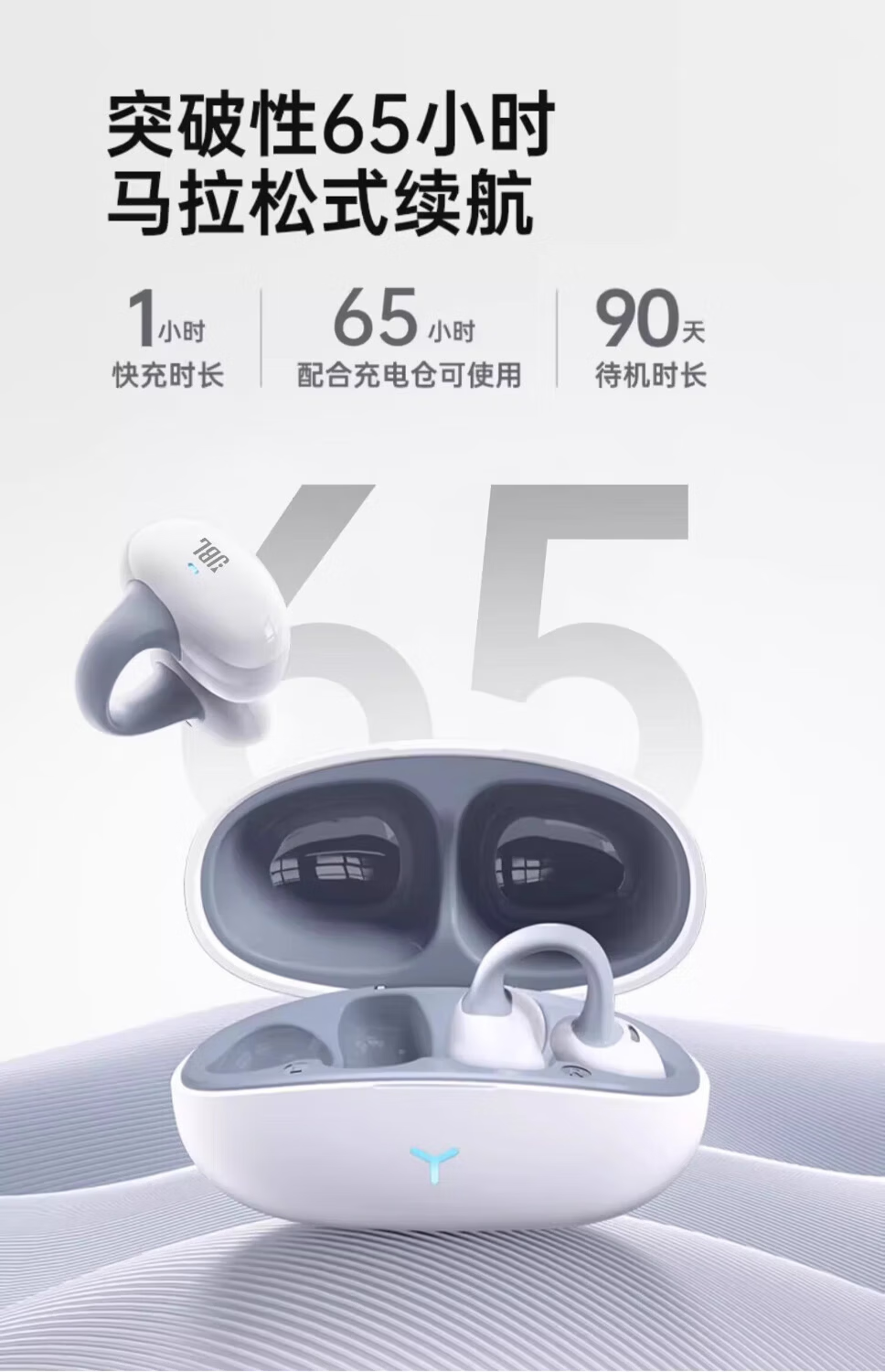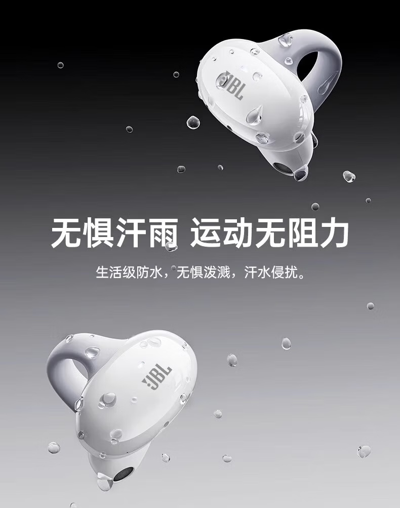 JBL蓝牙耳机真无线降噪骨传导夹耳式不入耳手机通用运动久戴不痛 云岩白款
