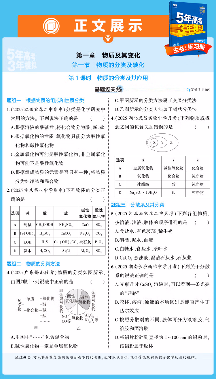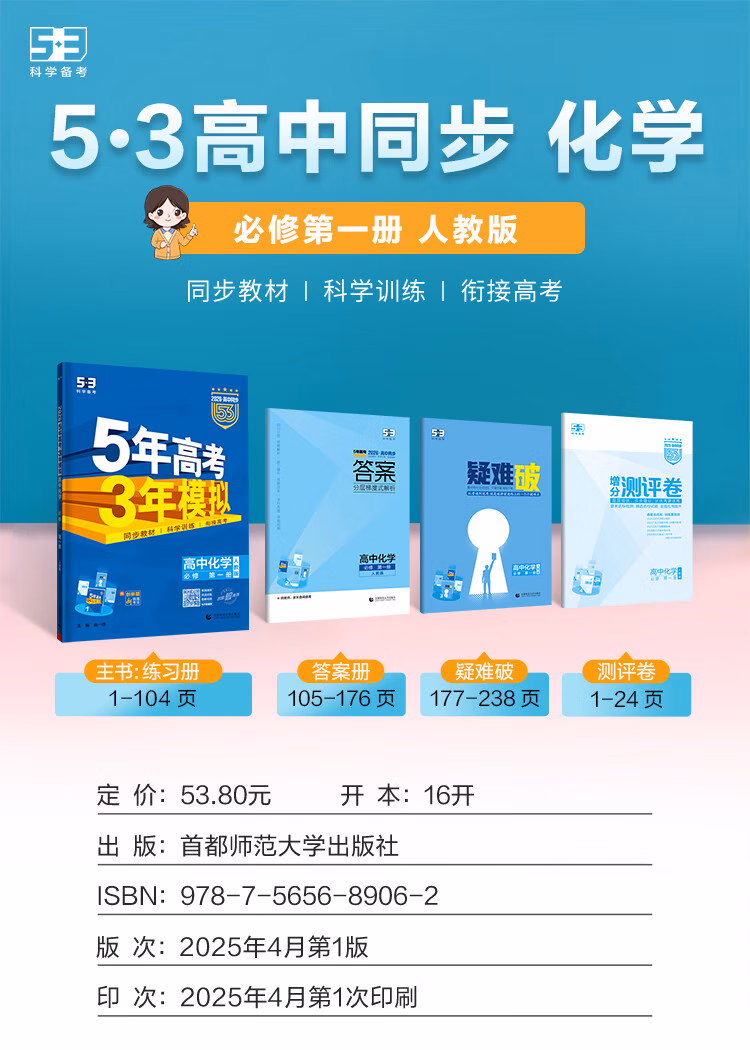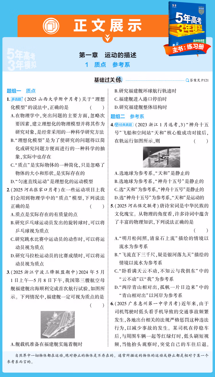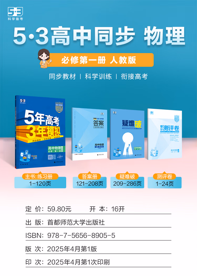 五三高一上册必修一2026版五年高考三年模拟必修第一册人教版53高中同步练习册5年高考3年模拟 【2本必修一】物理+化学