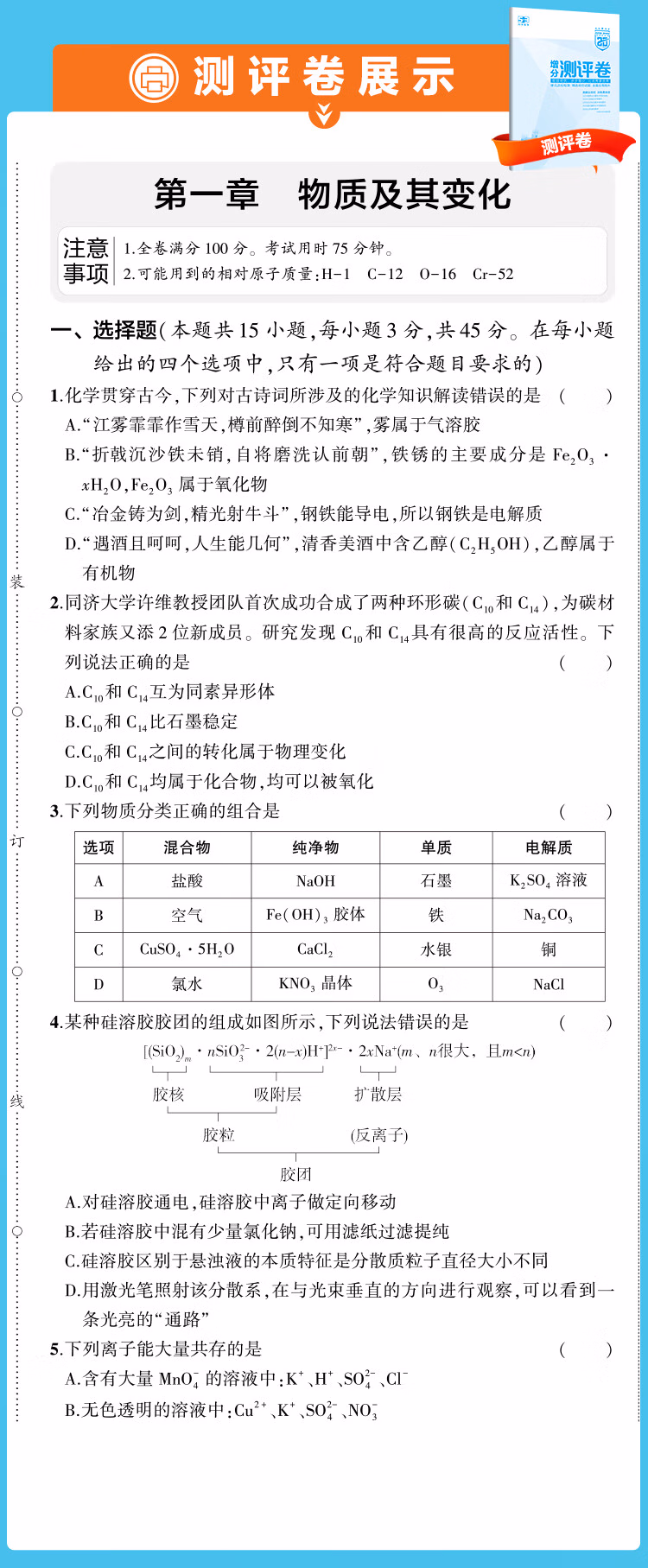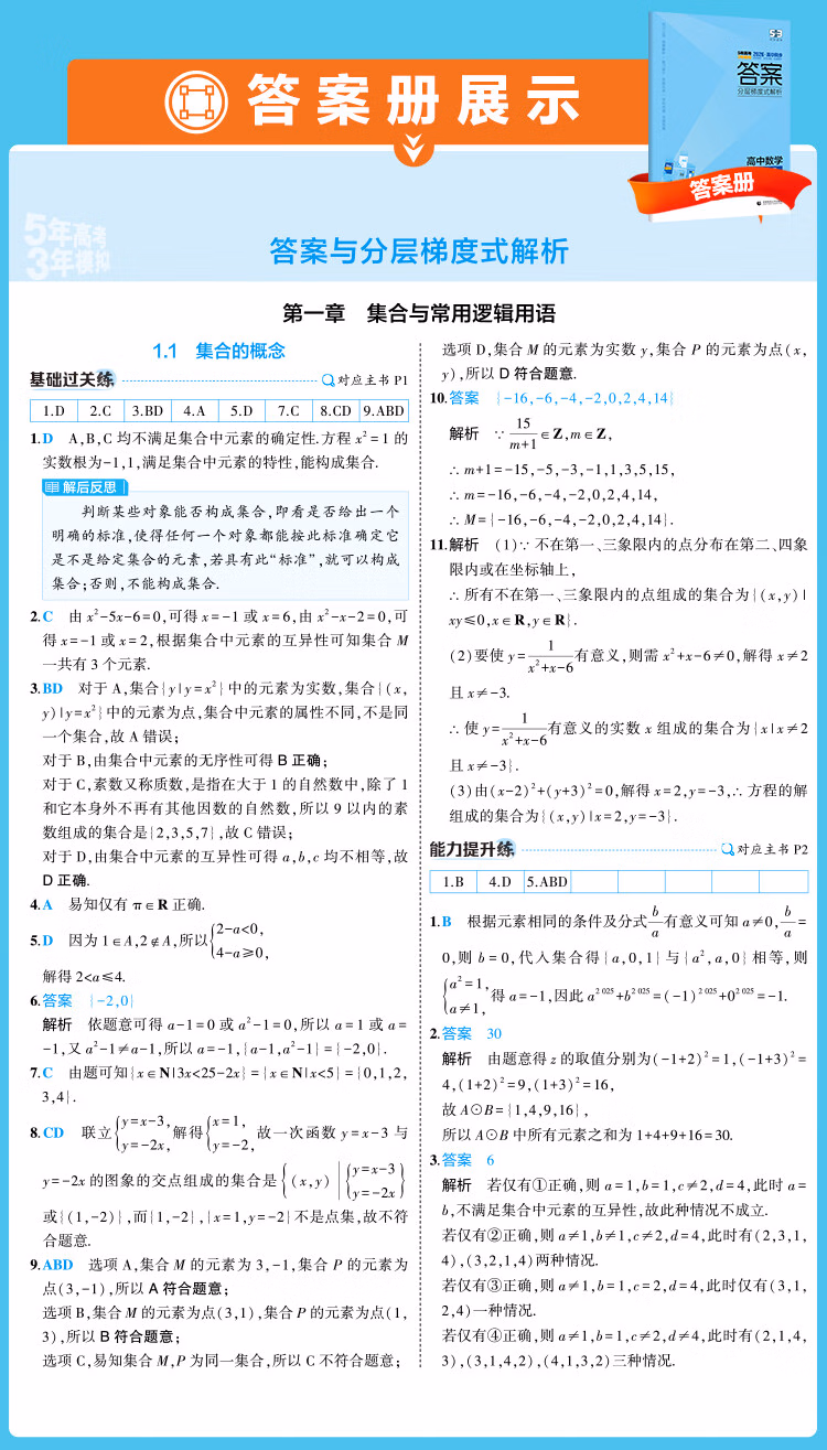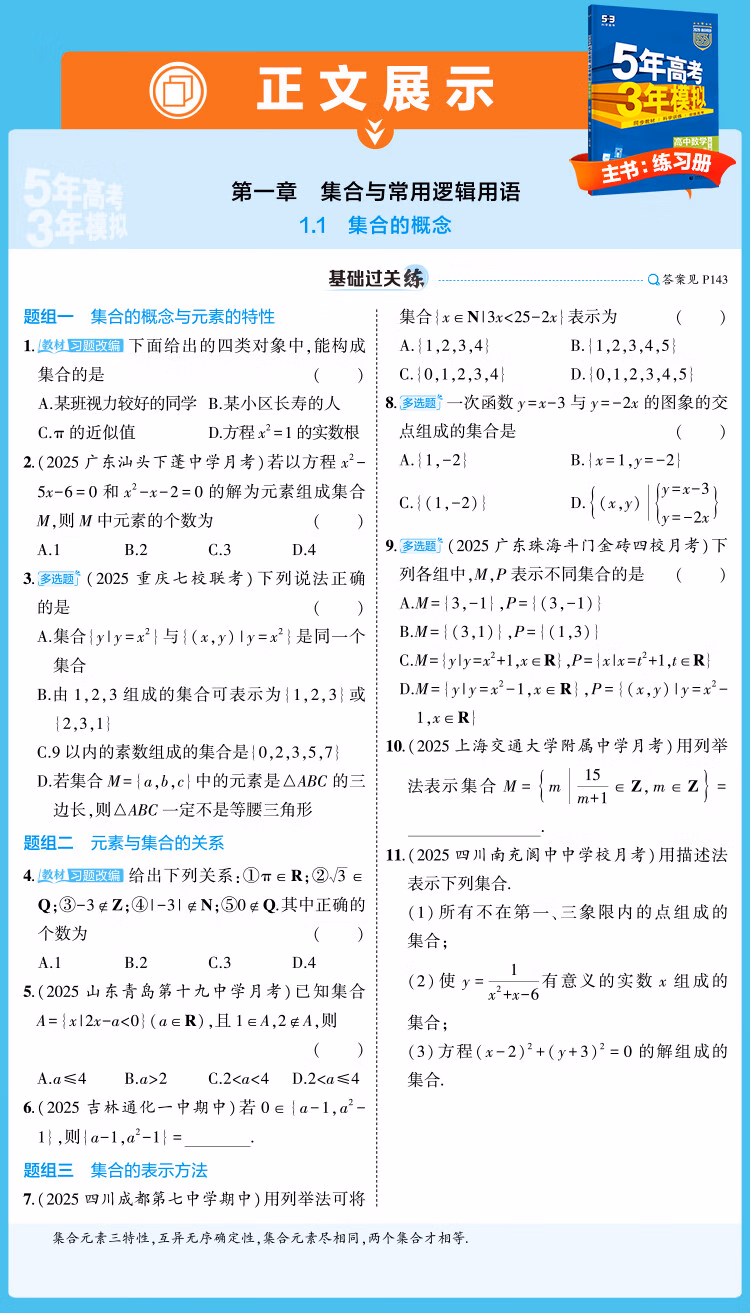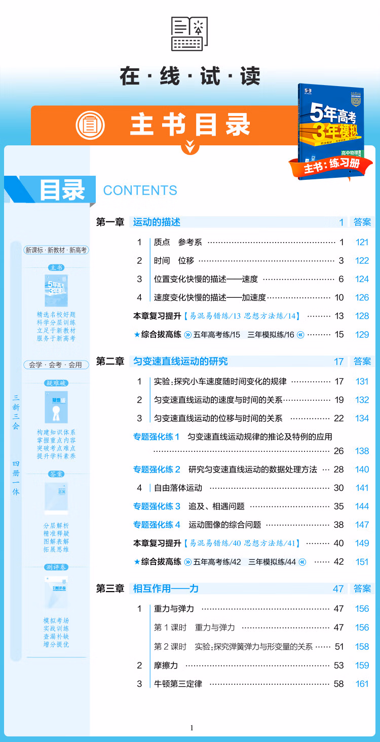 五三高一上册必修一2026版五年高考三年模拟必修第一册人教版53高中同步练习册5年高考3年模拟 【2本必修一】物理+化学