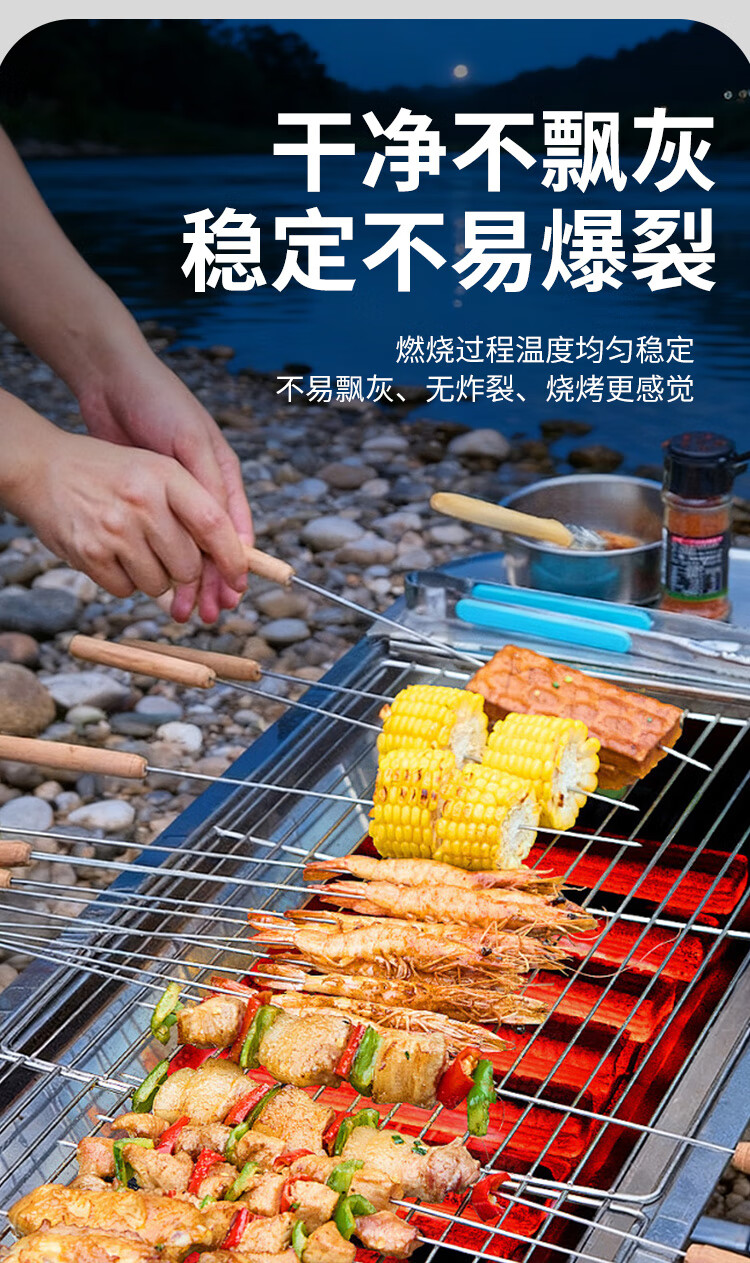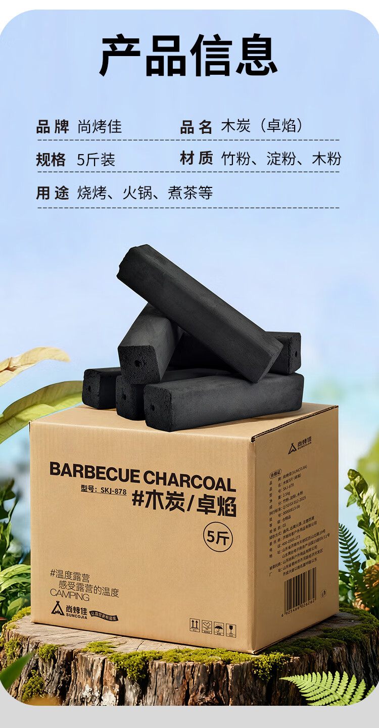 尚烤佳(Suncojia)烧烤竹木炭烧烤炉燃料条形空心木碳烧烤碳取暖火锅炭无烟炭5斤