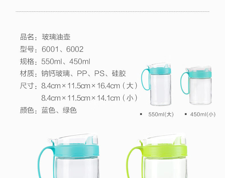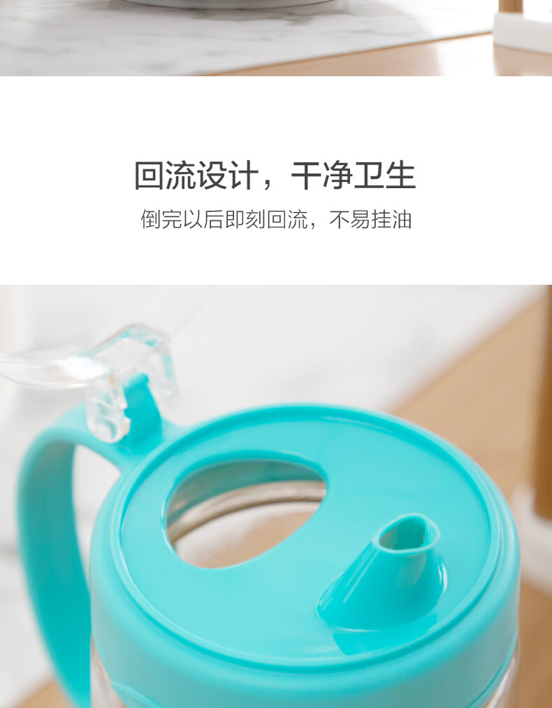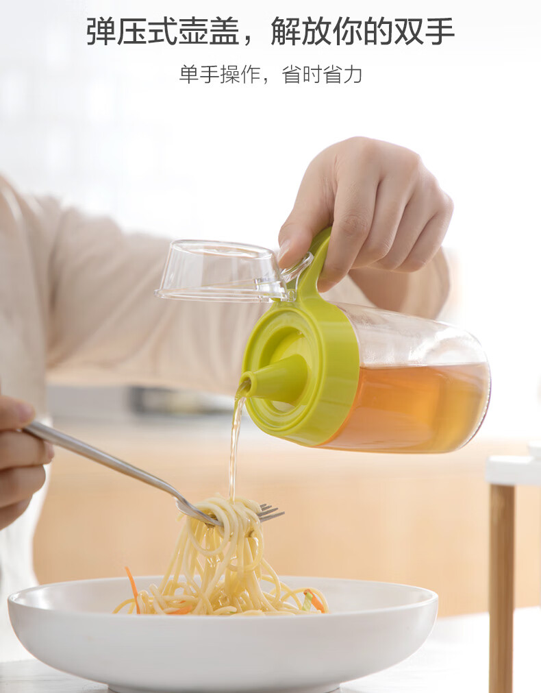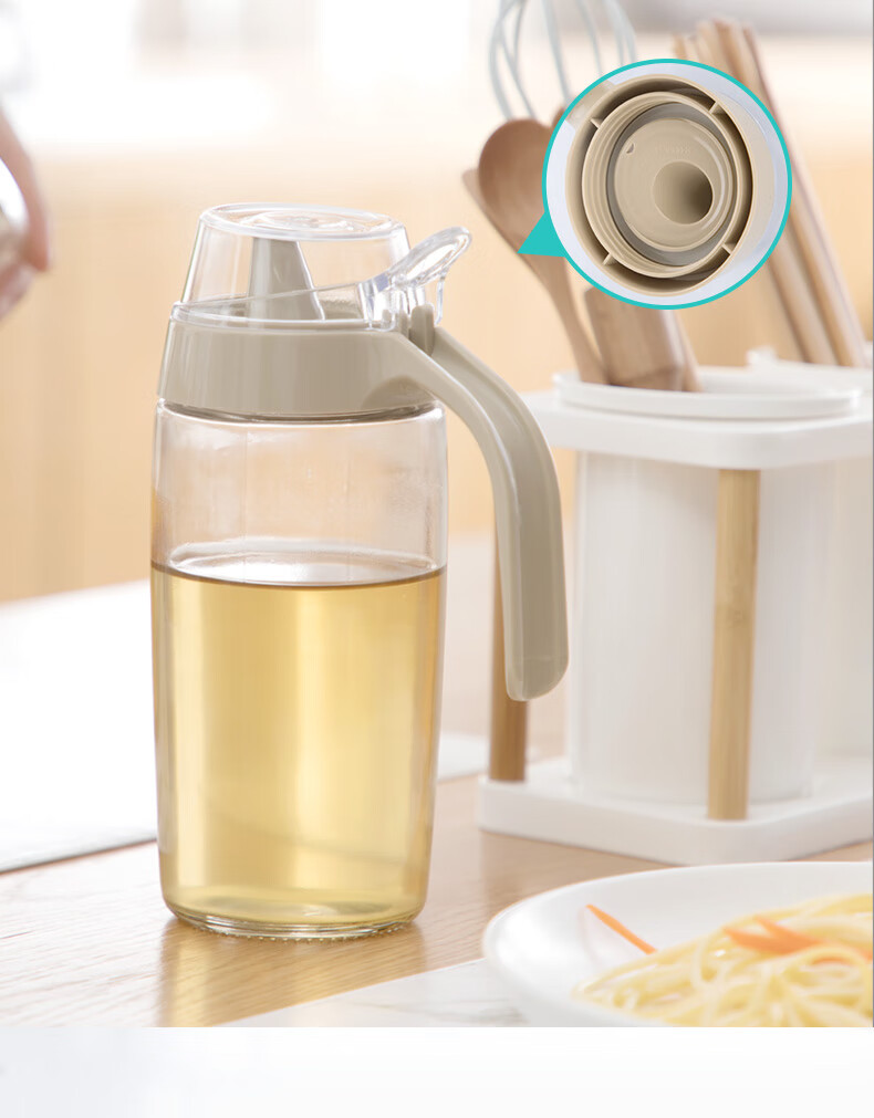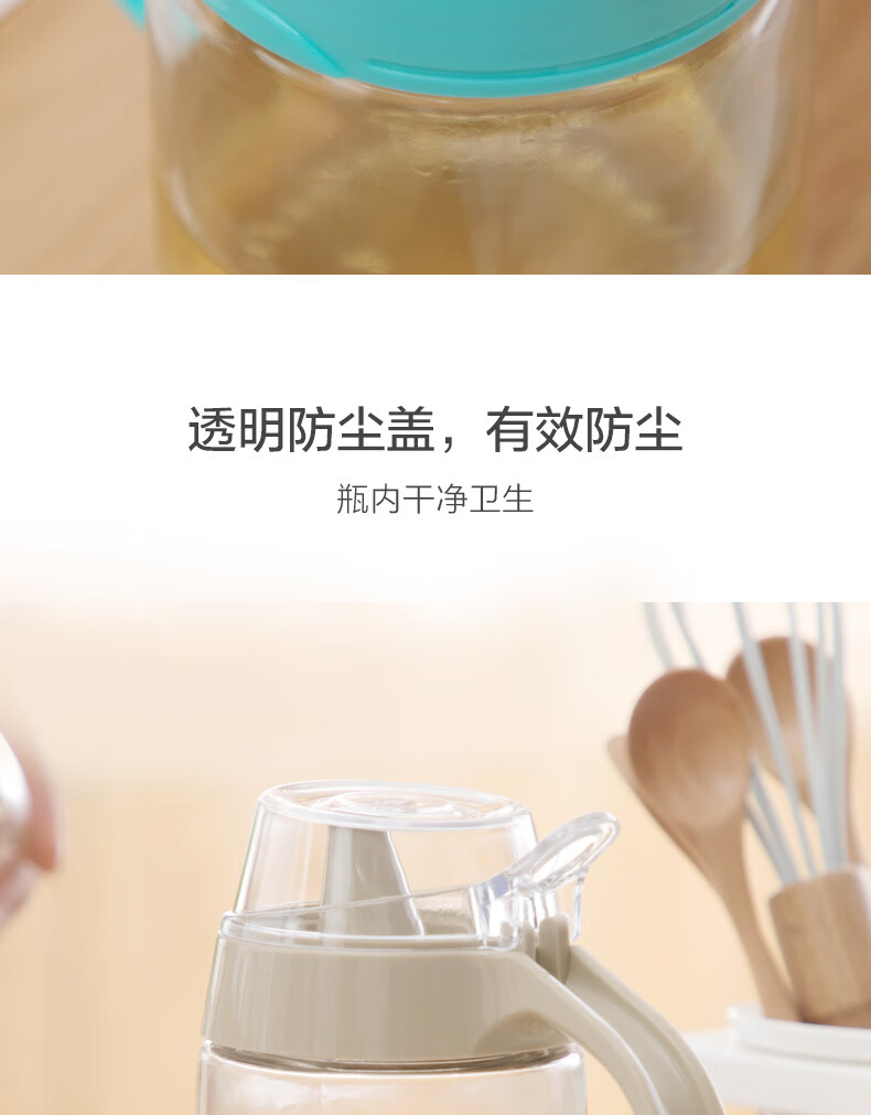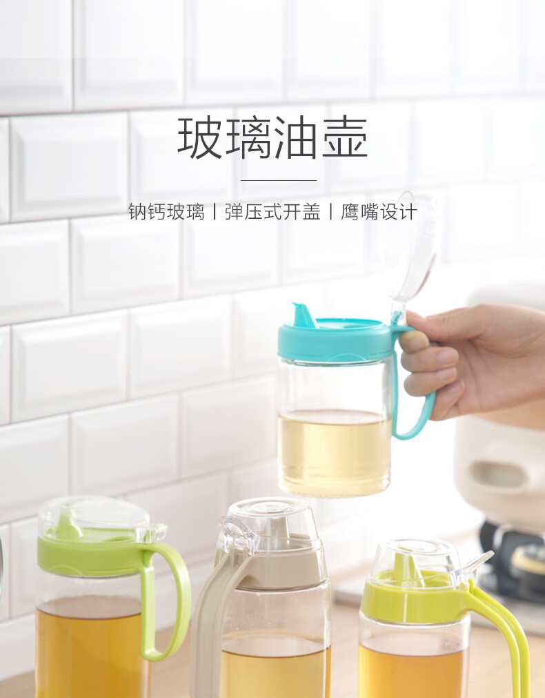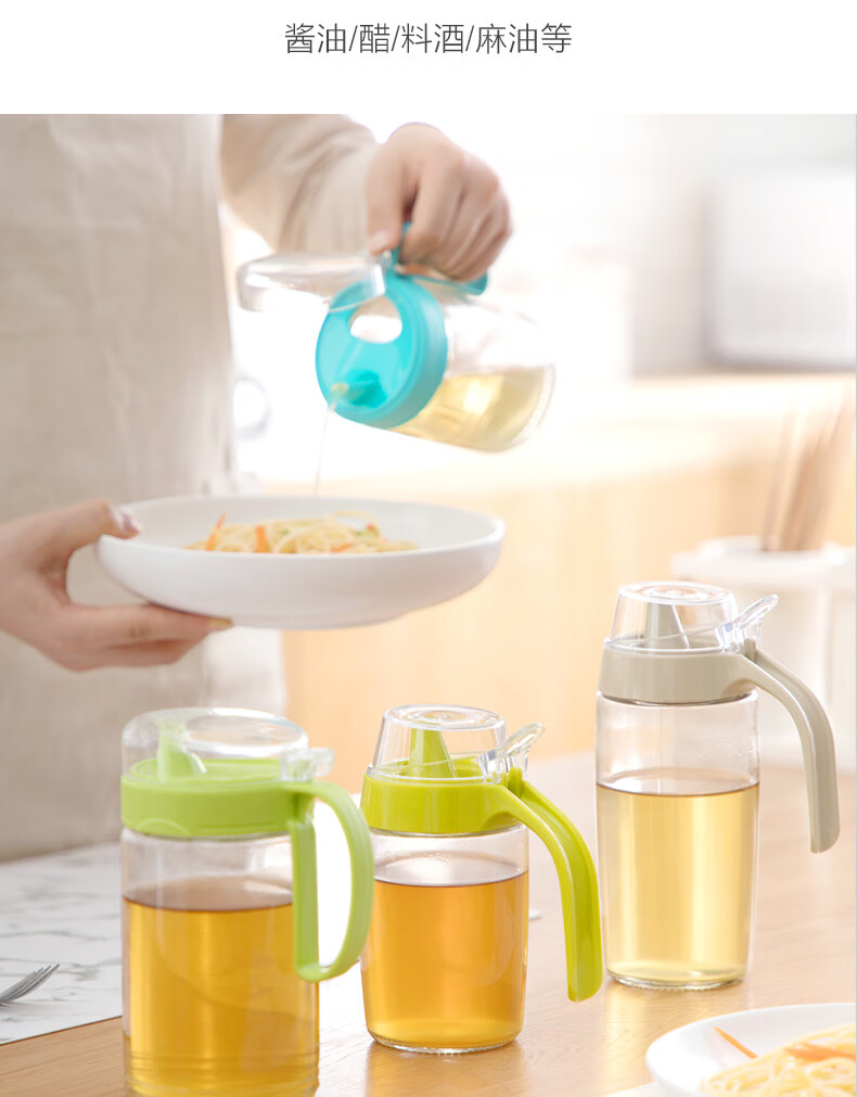 茶花油壶防漏油调料瓶玻璃油瓶酱油醋壶调料壶厨房防尘带盖家用储油瓶 【550ml 绿色】一个装