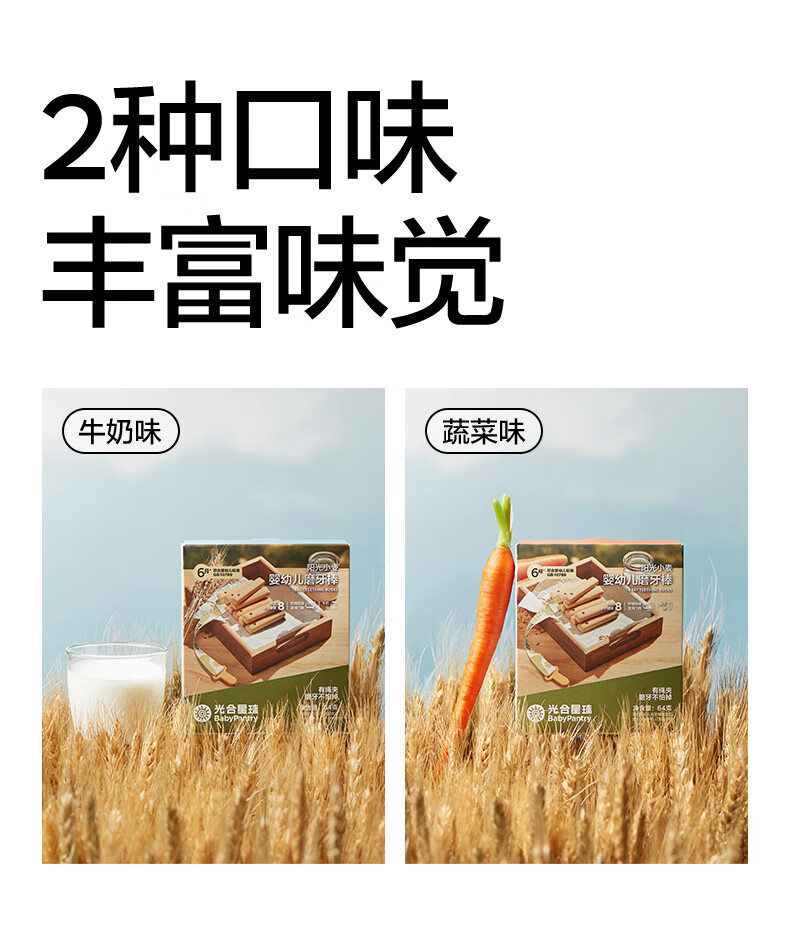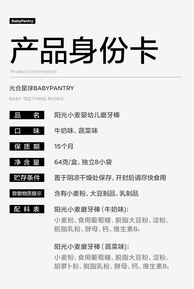 光合星球(THE BABYPANTRY)babycare阳光小麦婴幼儿磨牙棒宝宝零食无添加儿童饼干牛奶味64g
