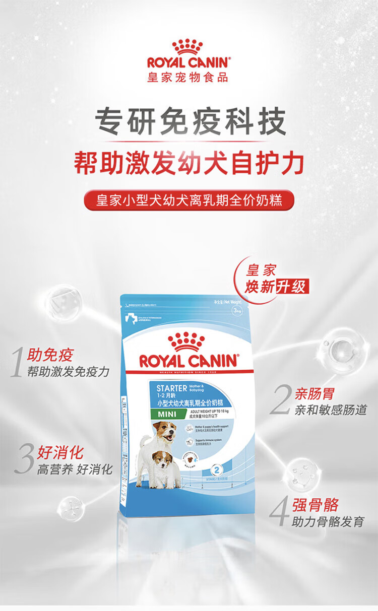 皇家狗粮幼犬奶糕幼犬狗粮宠物小型犬MIS30全价犬粮 ≤2月3KG