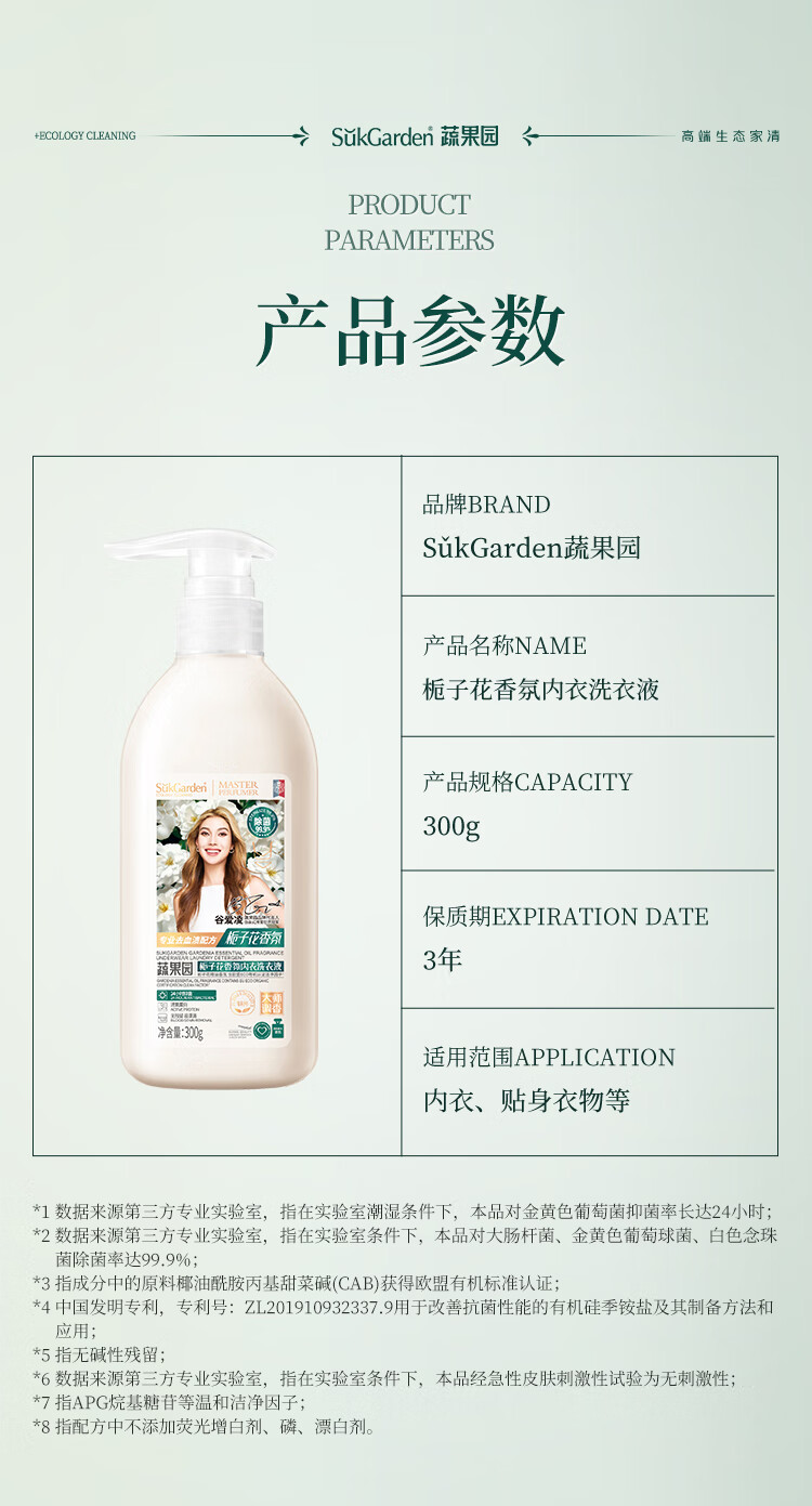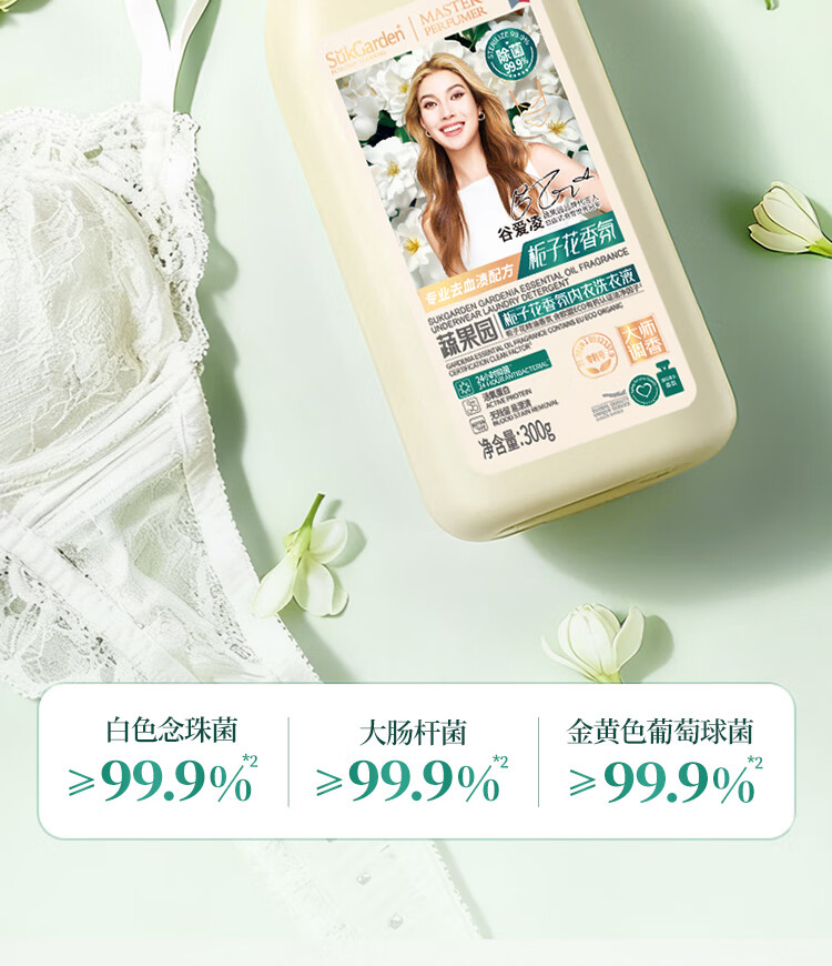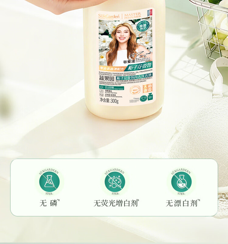 蔬果园内衣洗衣液内裤清洗液栀子花香氛洗衣液300g去除黄渍血渍专用液