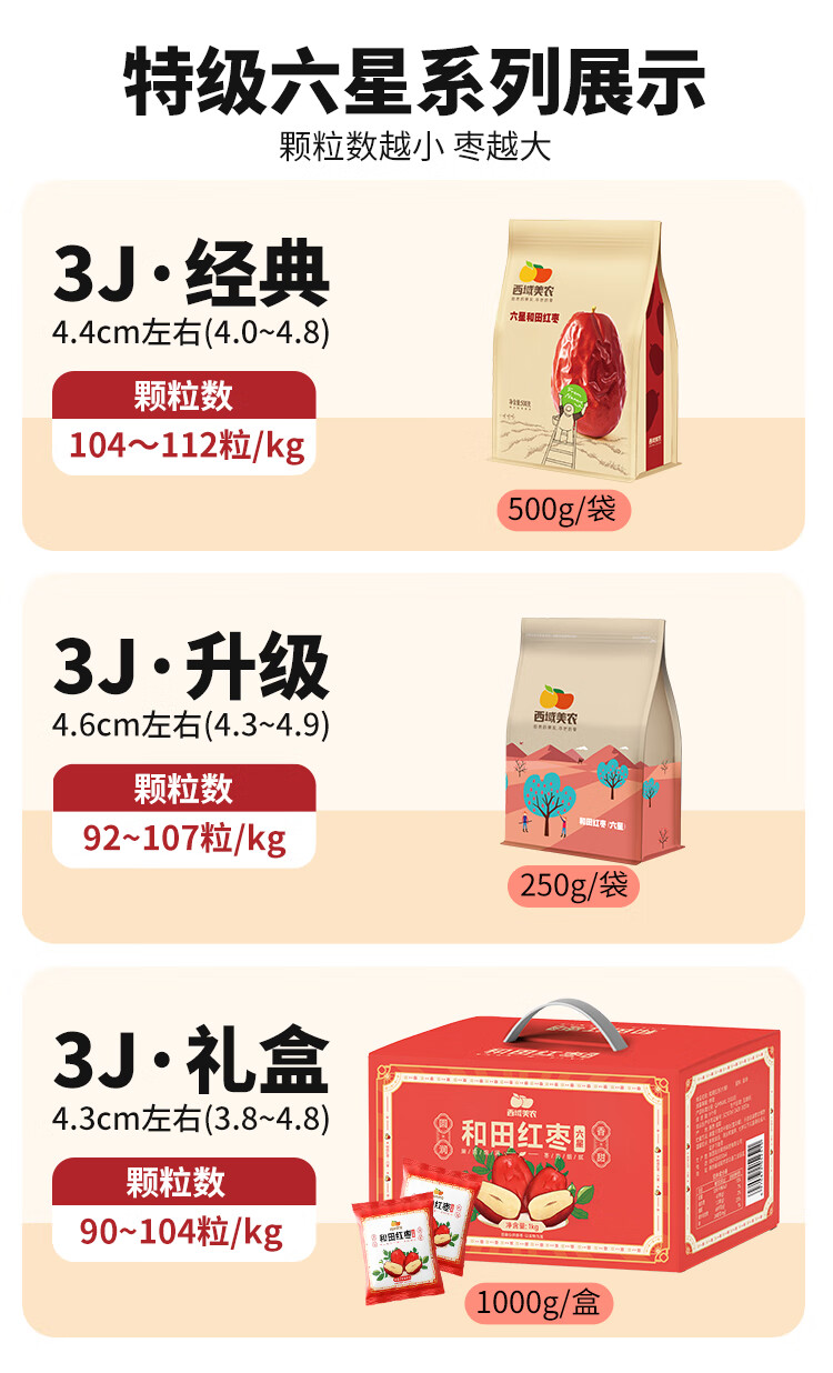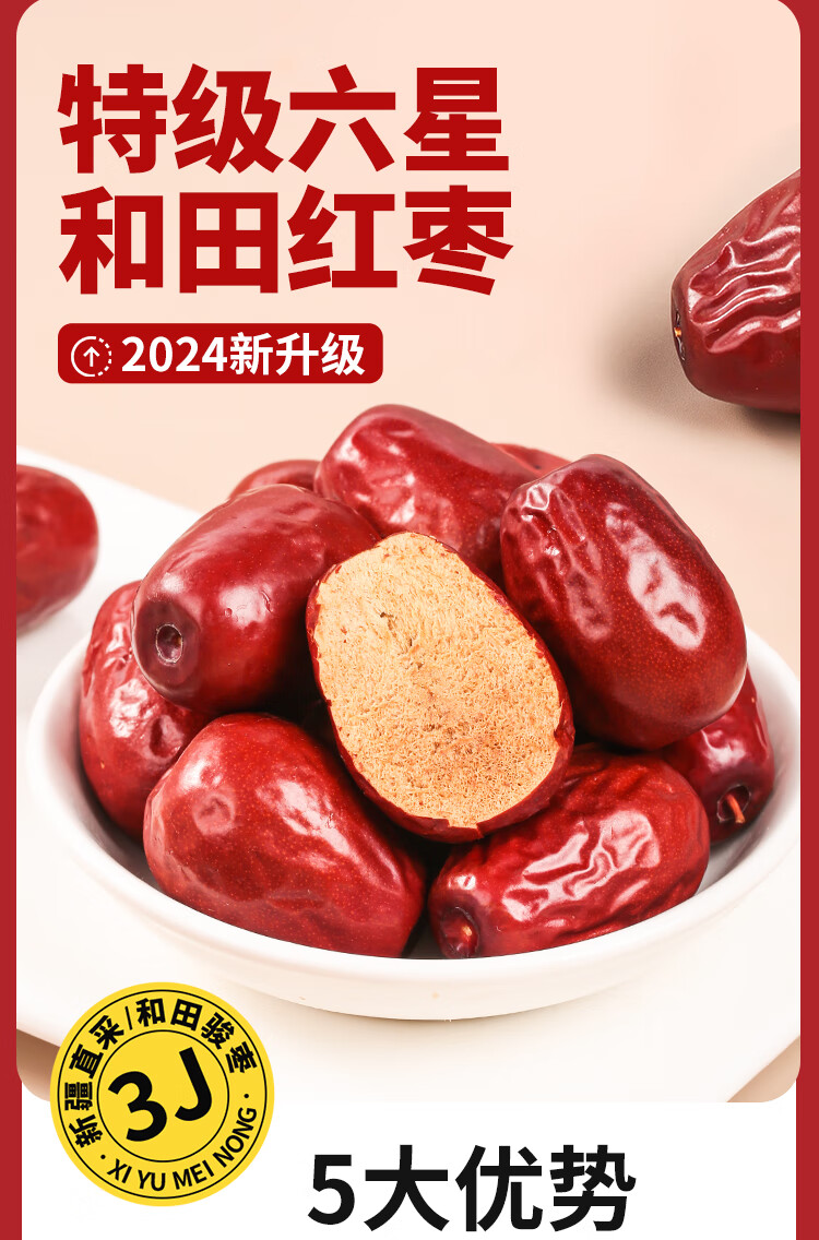 西域美农特级红枣250g 六星特等和田大枣 免洗新疆特产 零食干货骏枣