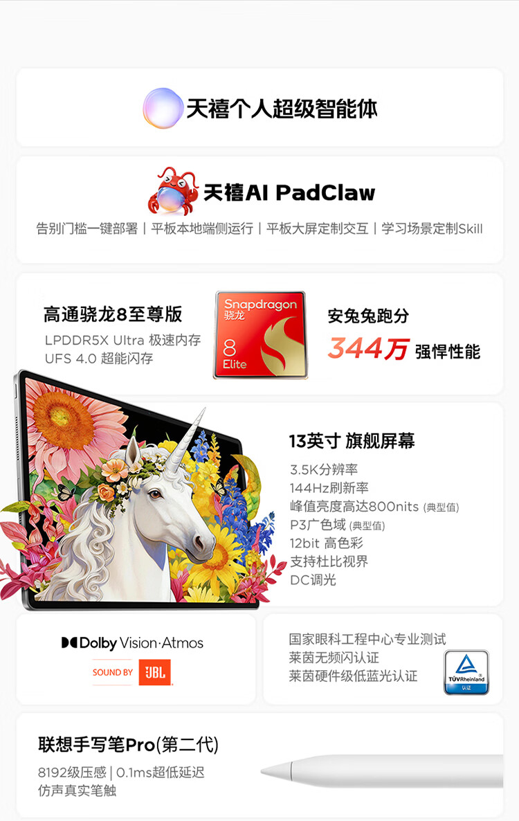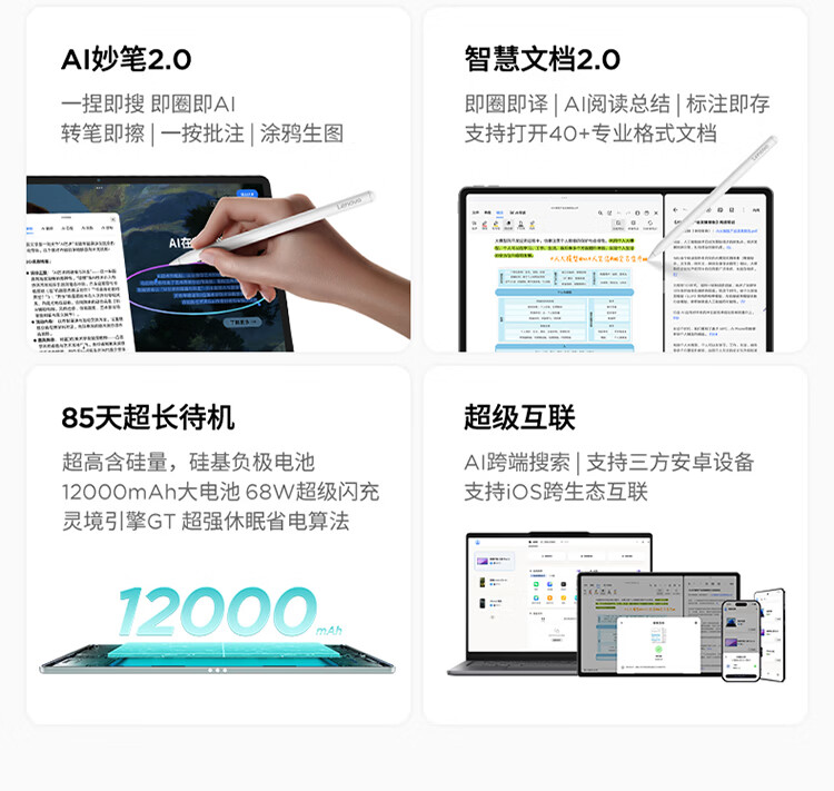 联想小新ProGT13 超清3.5K大屏 IOS超级互联 高通骁龙8Elite旗舰芯片 AI学习平板电脑12+512GB凝雾灰