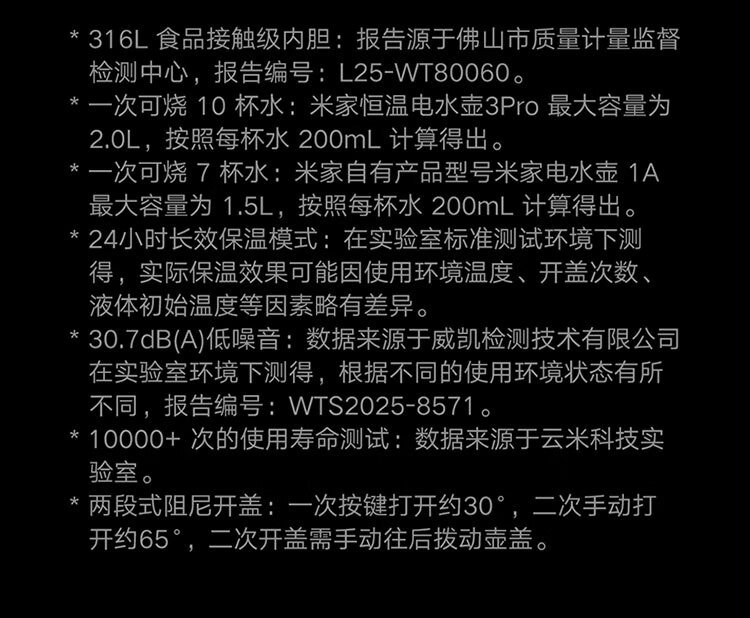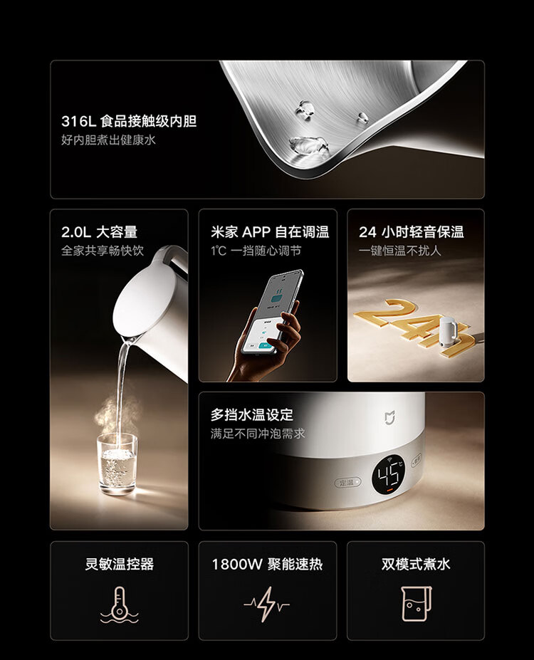 米家【316L零涂层内胆】小米恒温电热水壶3pro 316L母婴级不锈钢家用烧水壶 自动断电保温一体2L大容量