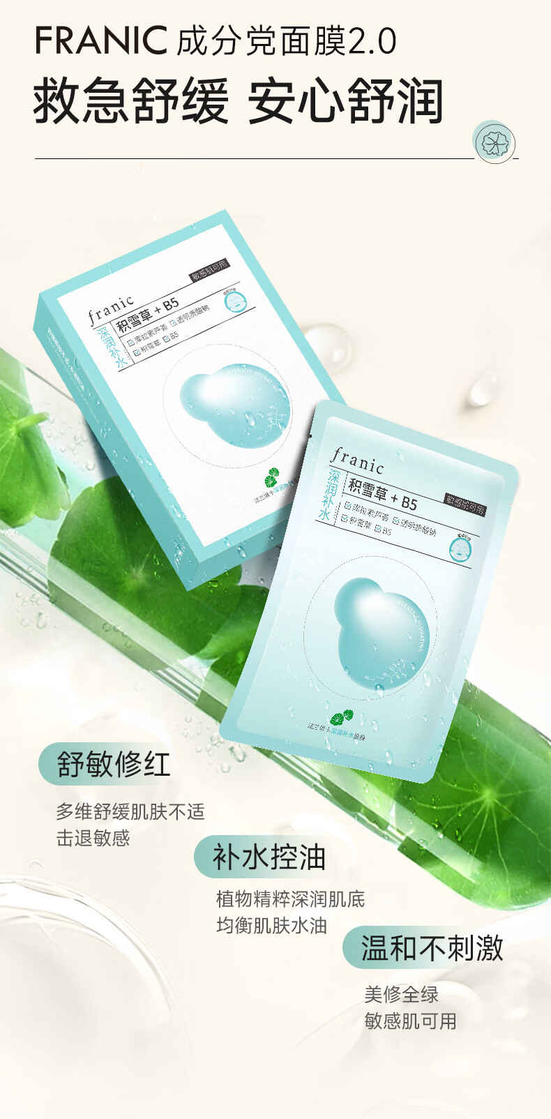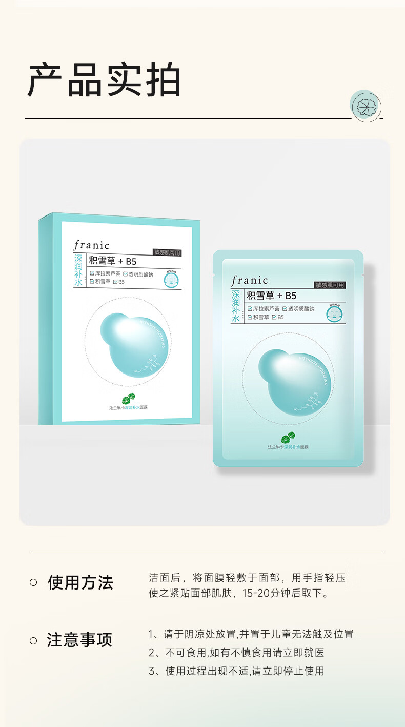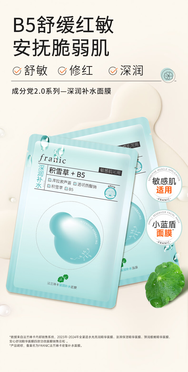 法兰琳卡深润补水面膜补水控油保湿舒缓紧致敏肌可用 深润补水面膜50片
