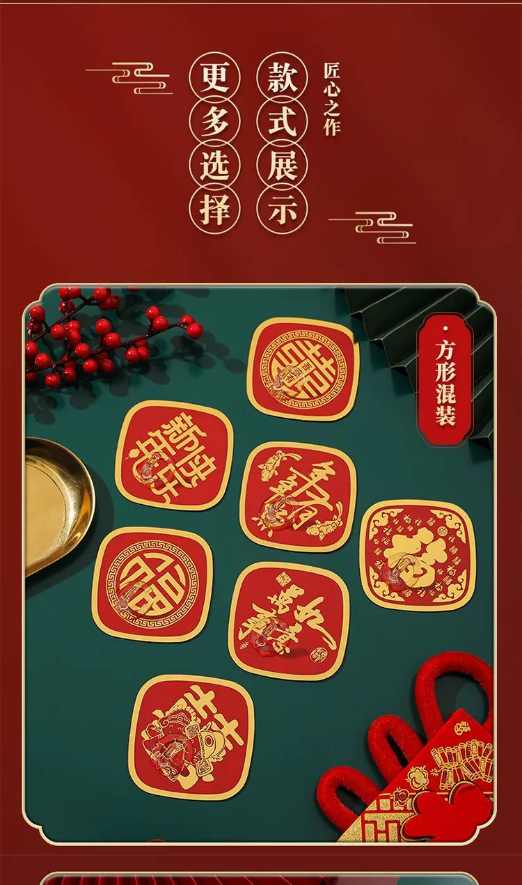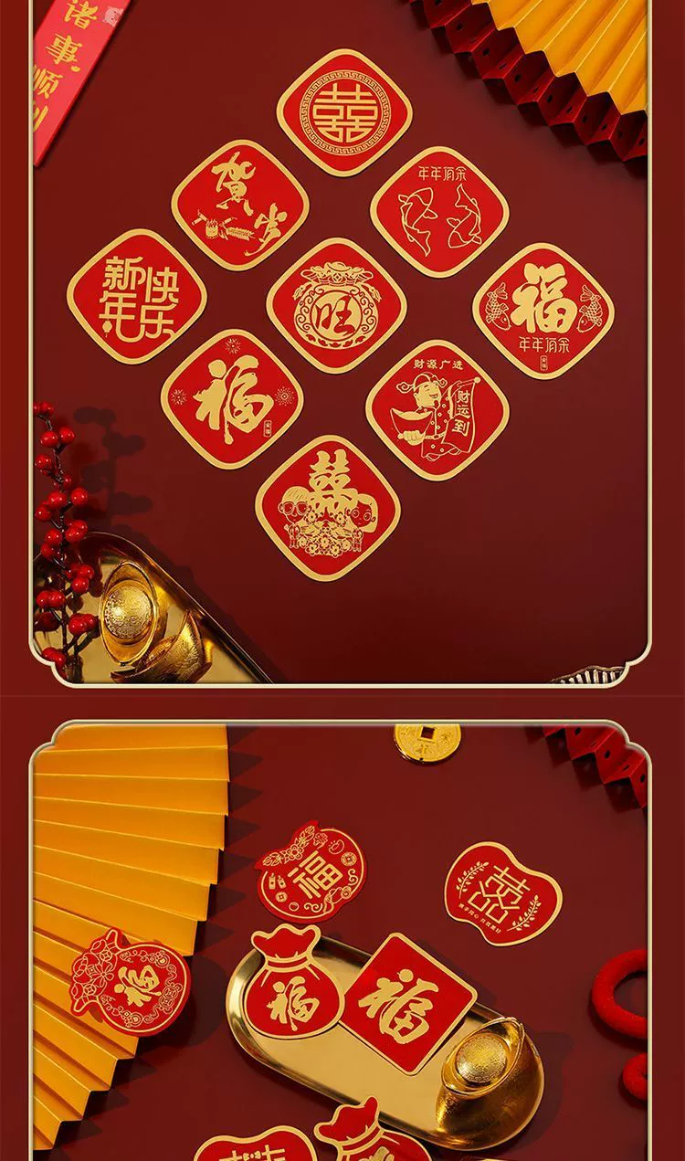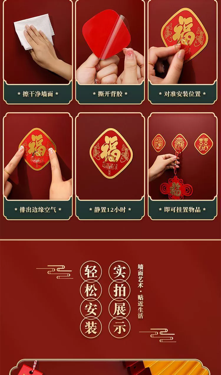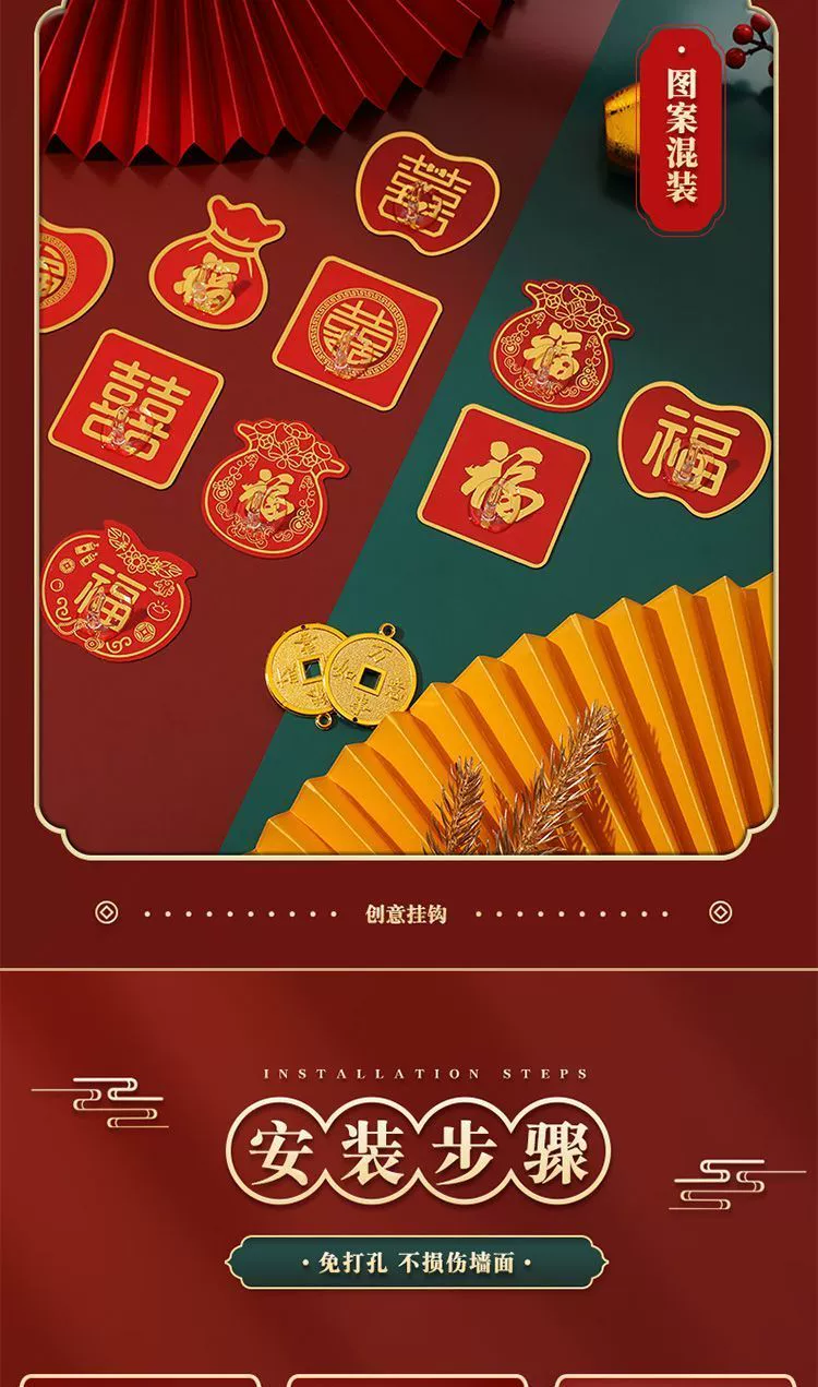 福字挂钩红色喜庆小挂钩强力粘胶免打孔挂中国结灯笼承重粘钩 【福气到家】福字-混搭10个 无规格