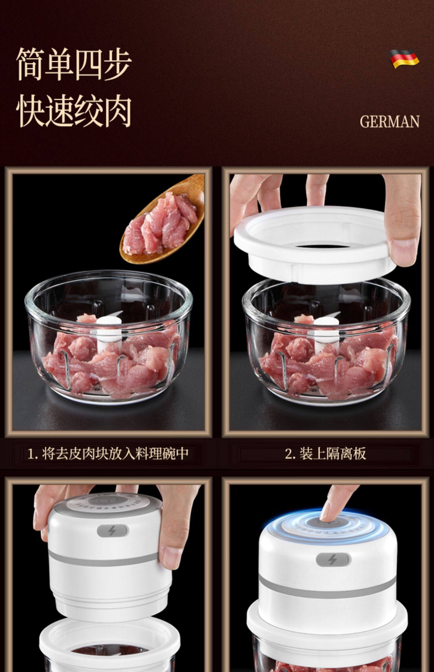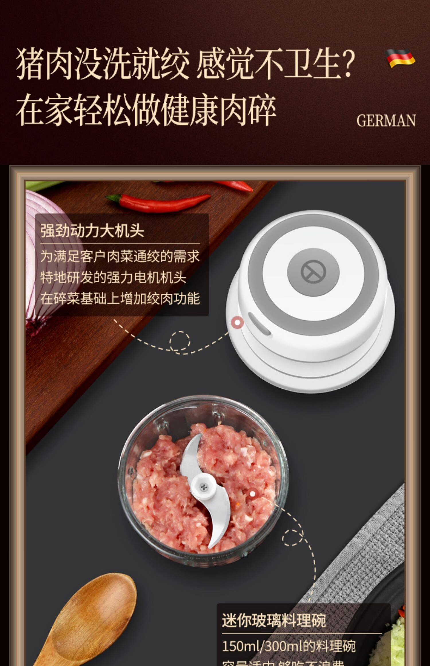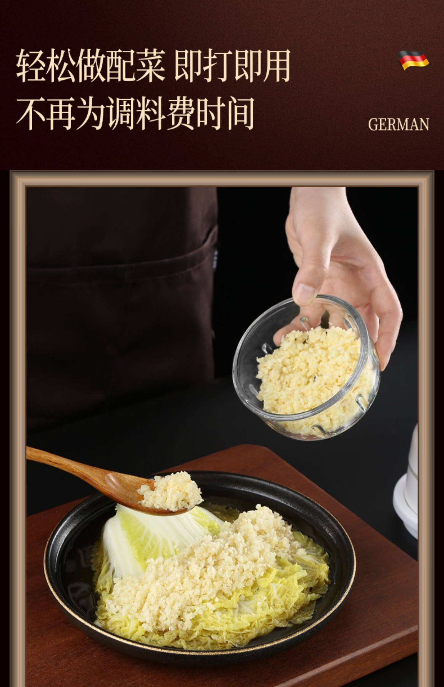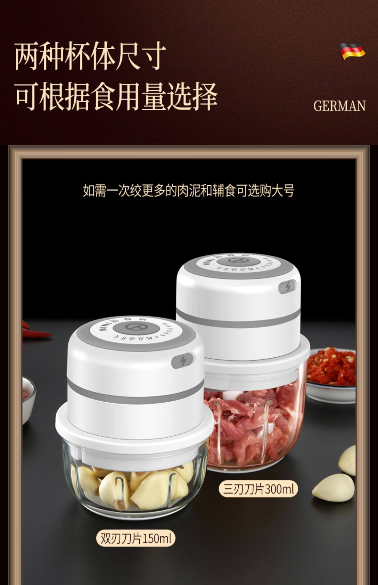 GERTHRON德国绞肉机捣蒜器电动蒜泥神器小型全自动多功能手动打蒜蓉捣碎迷你搅碎机拉大蒜蓉机打肉馅辅食机 【白色】小型多功能机 高硼硅玻璃容器 0.3L
