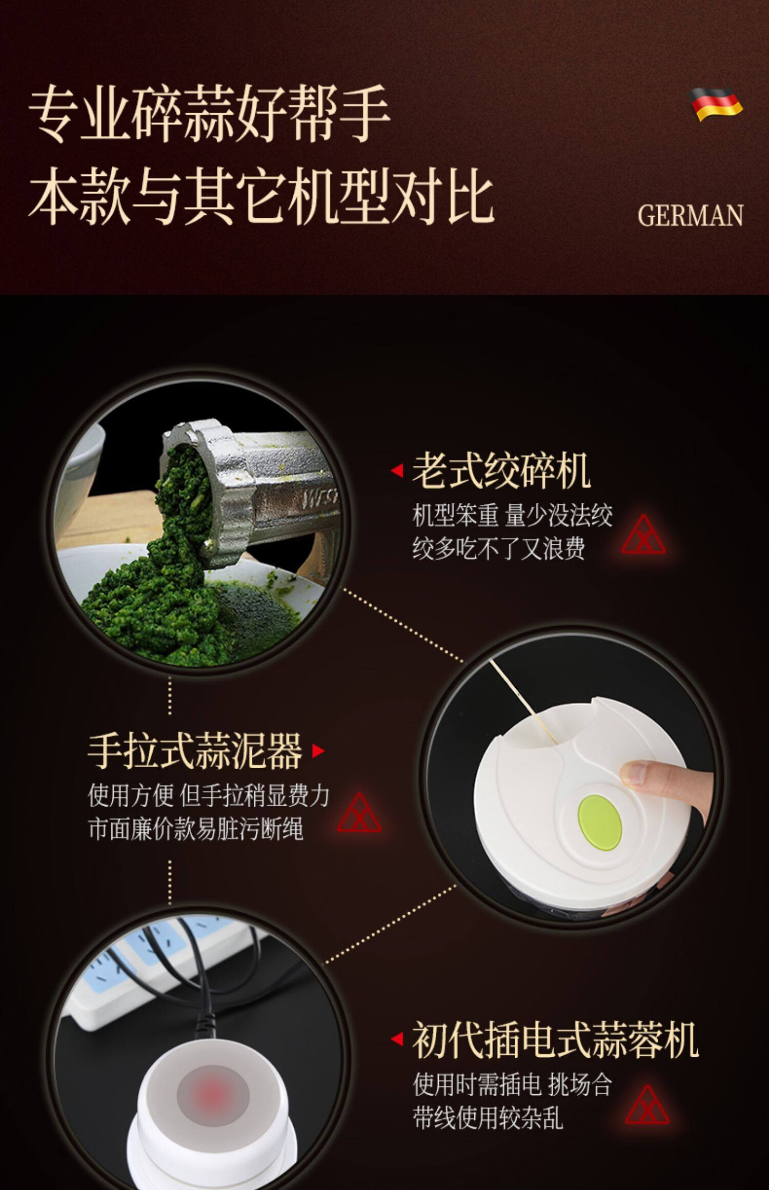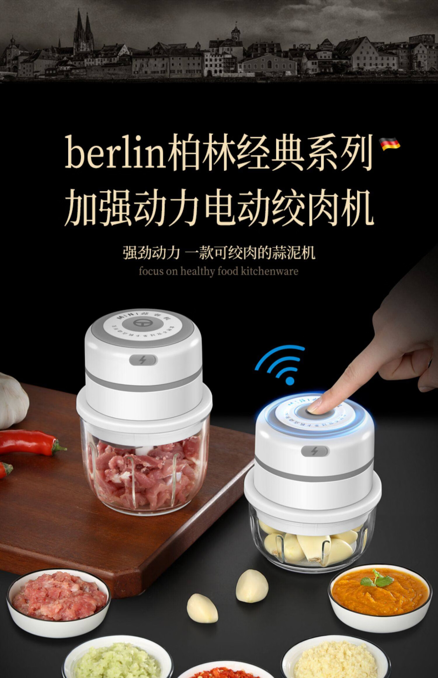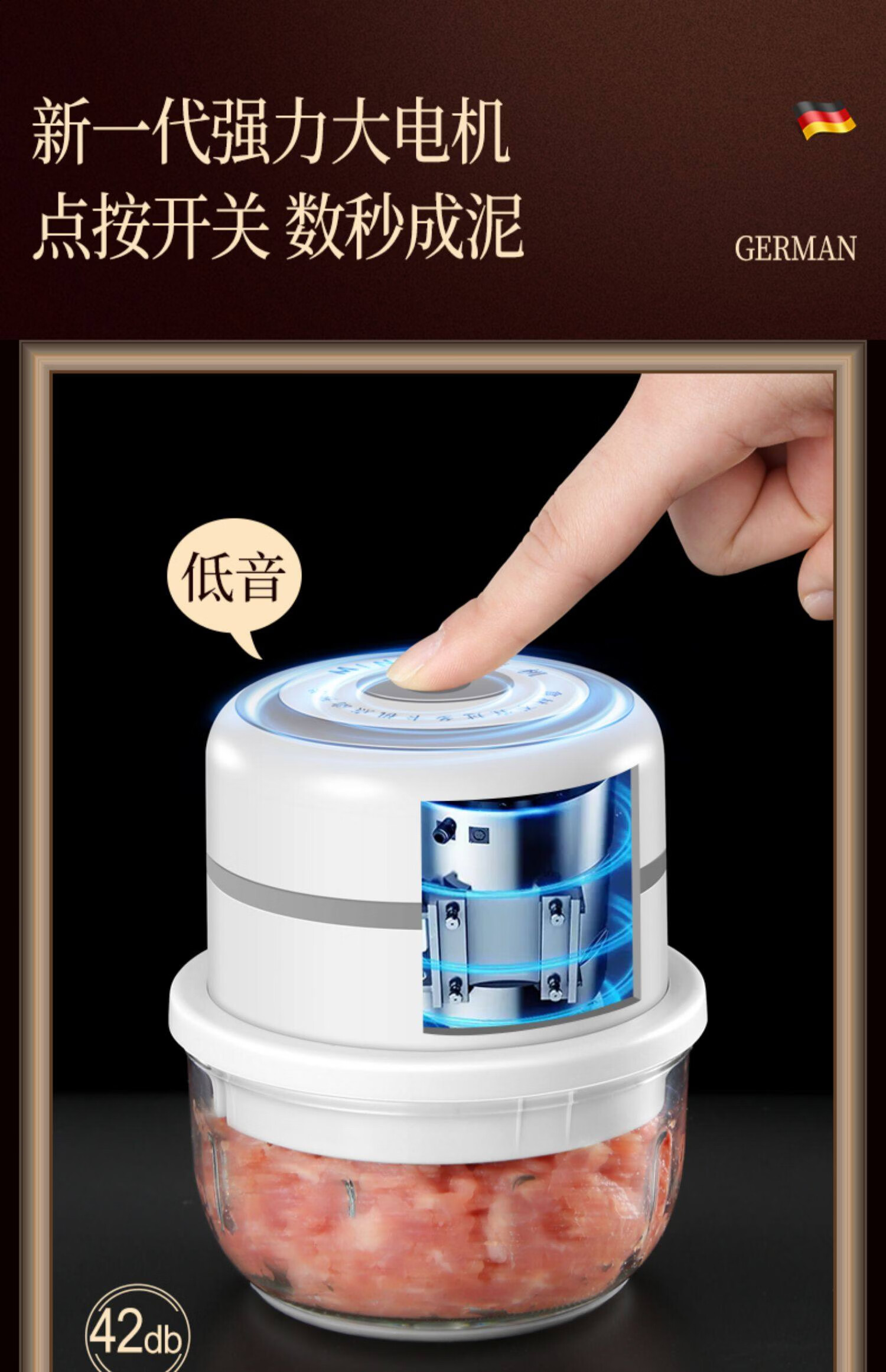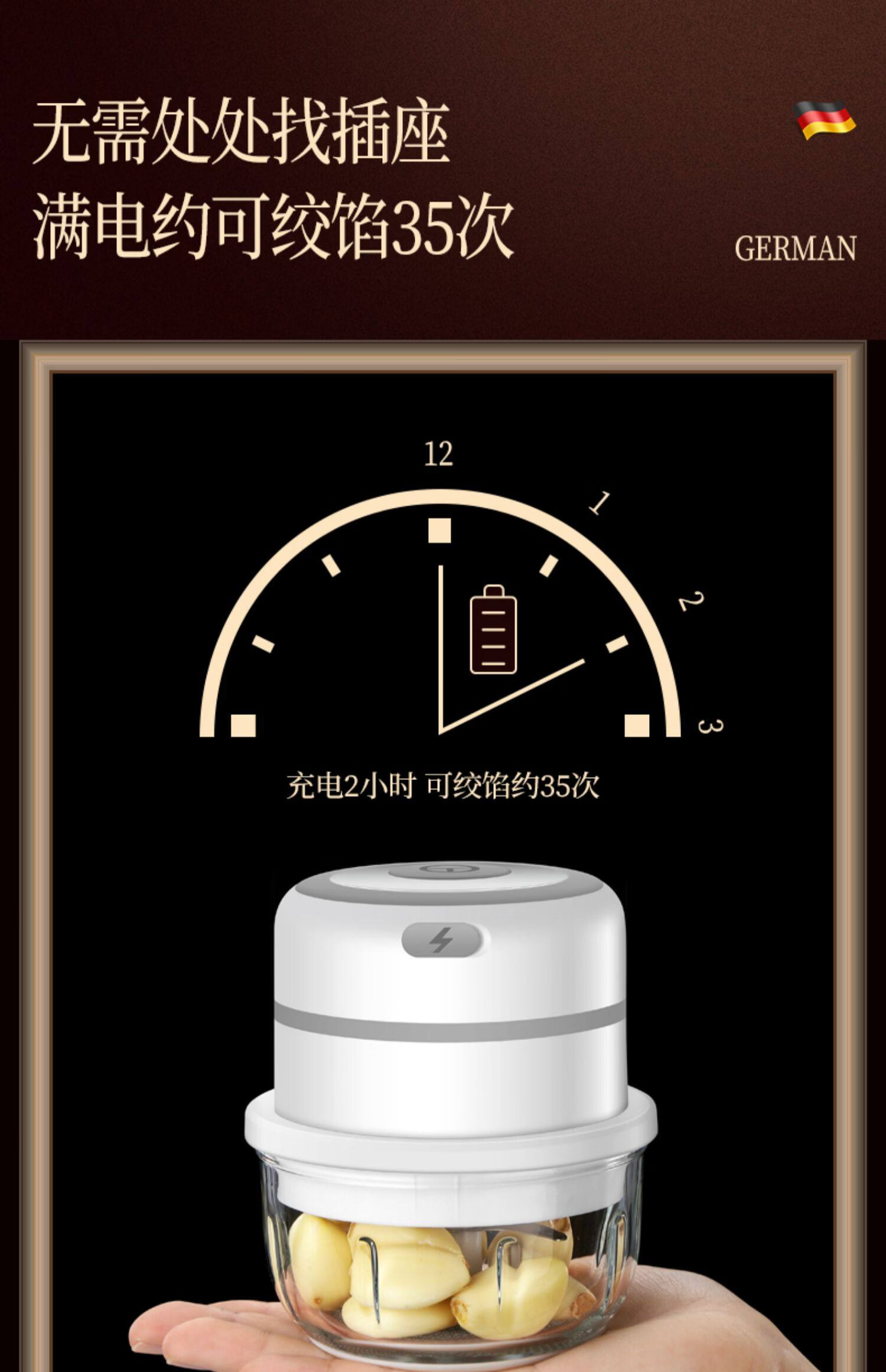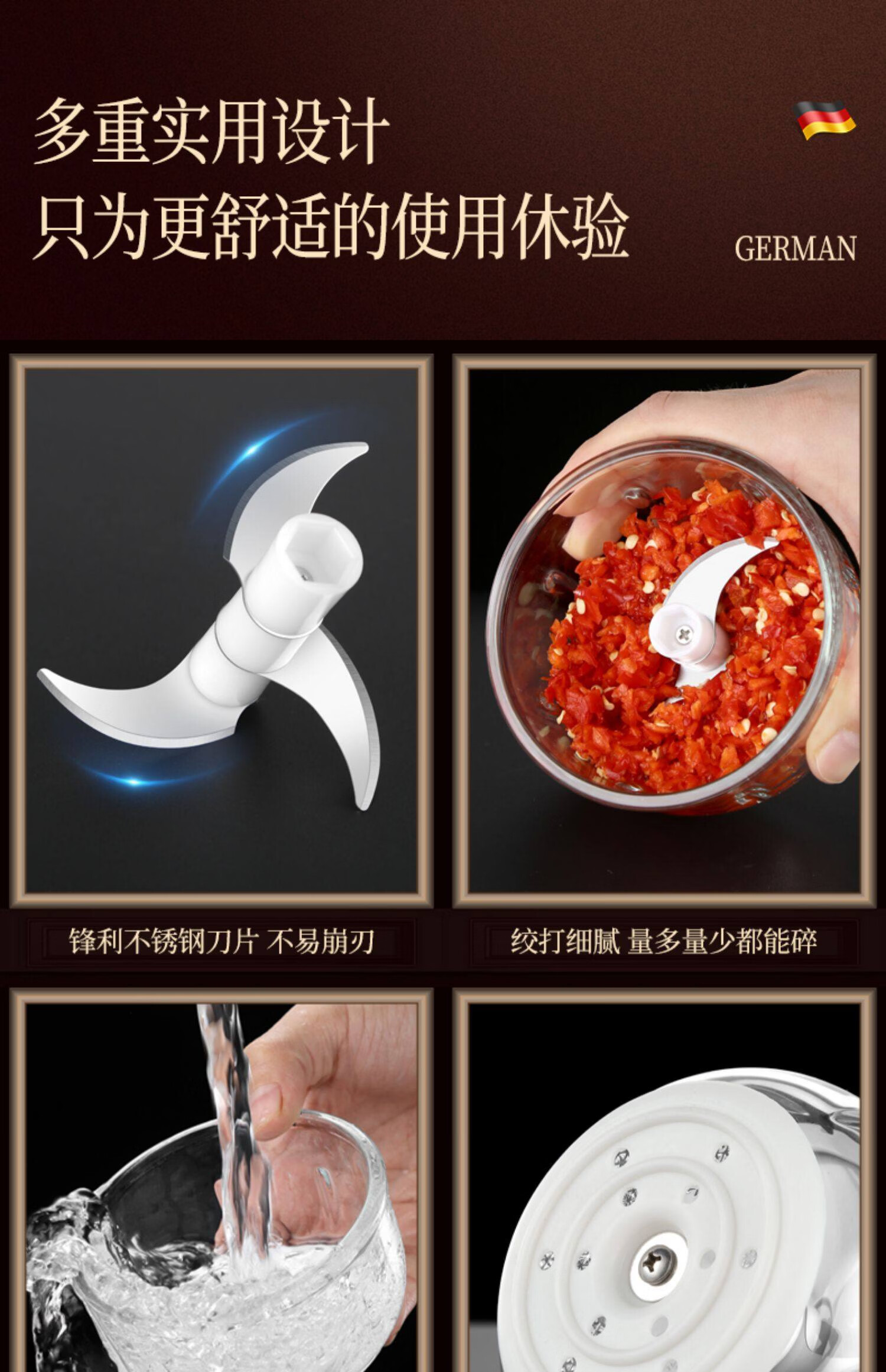 GERTHRON德国绞肉机捣蒜器电动蒜泥神器小型全自动多功能手动打蒜蓉捣碎迷你搅碎机拉大蒜蓉机打肉馅辅食机 【白色】小型多功能机 高硼硅玻璃容器 0.3L