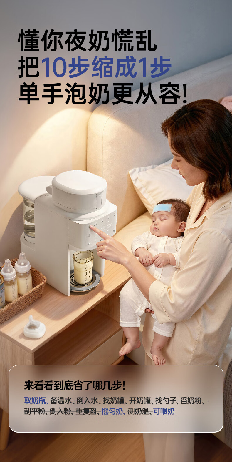 小白熊全自动泡奶机婴儿5071+自动夹紧摇奶器5109组套