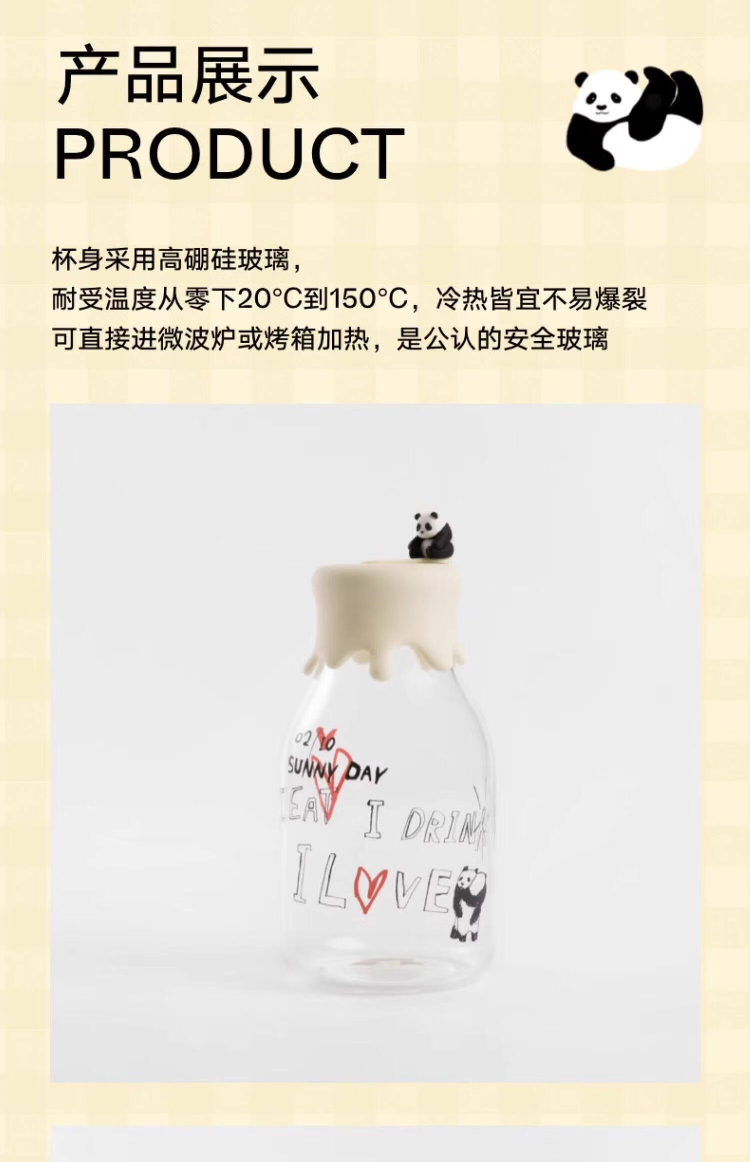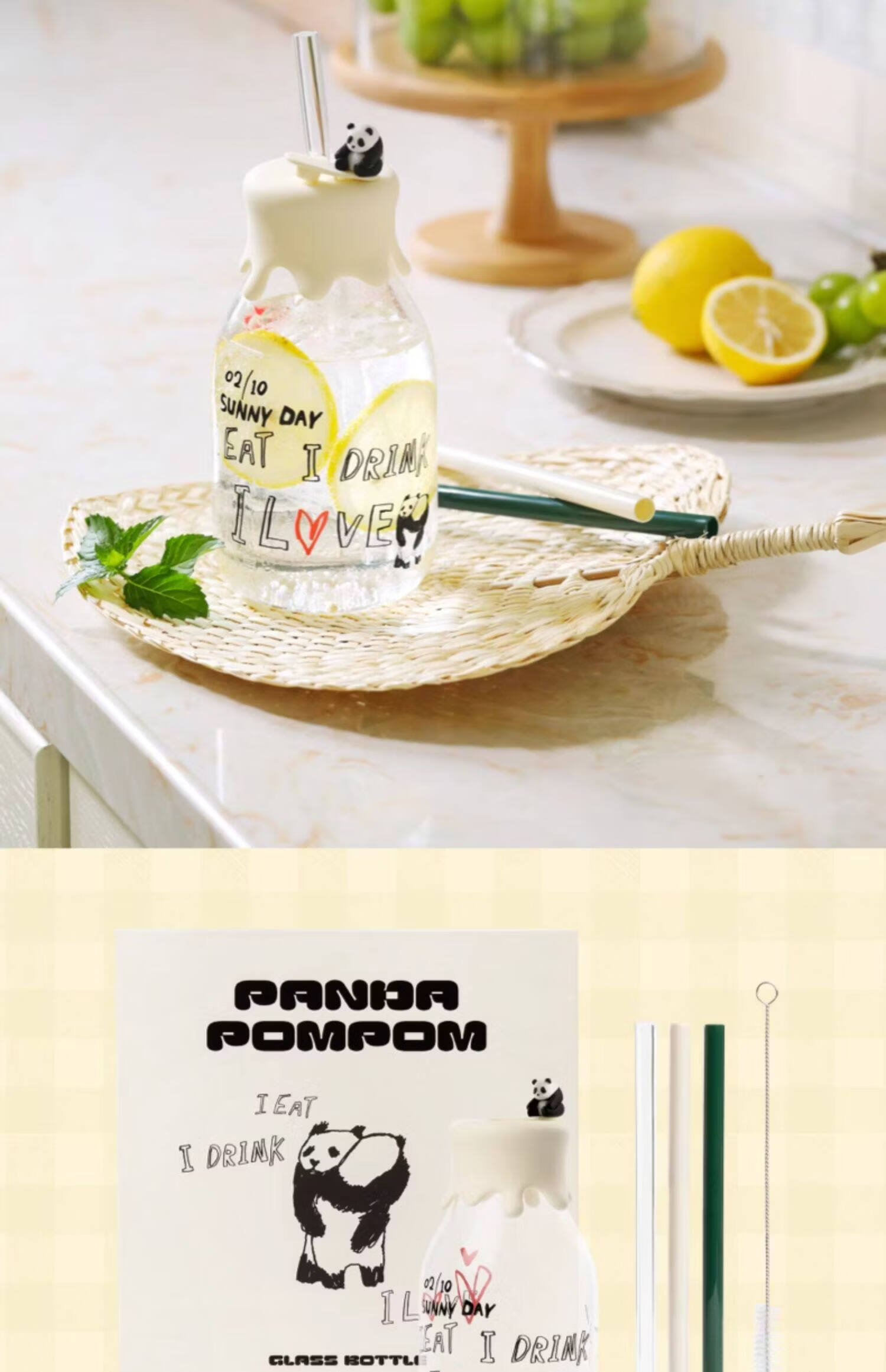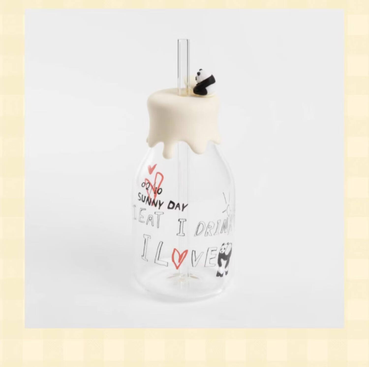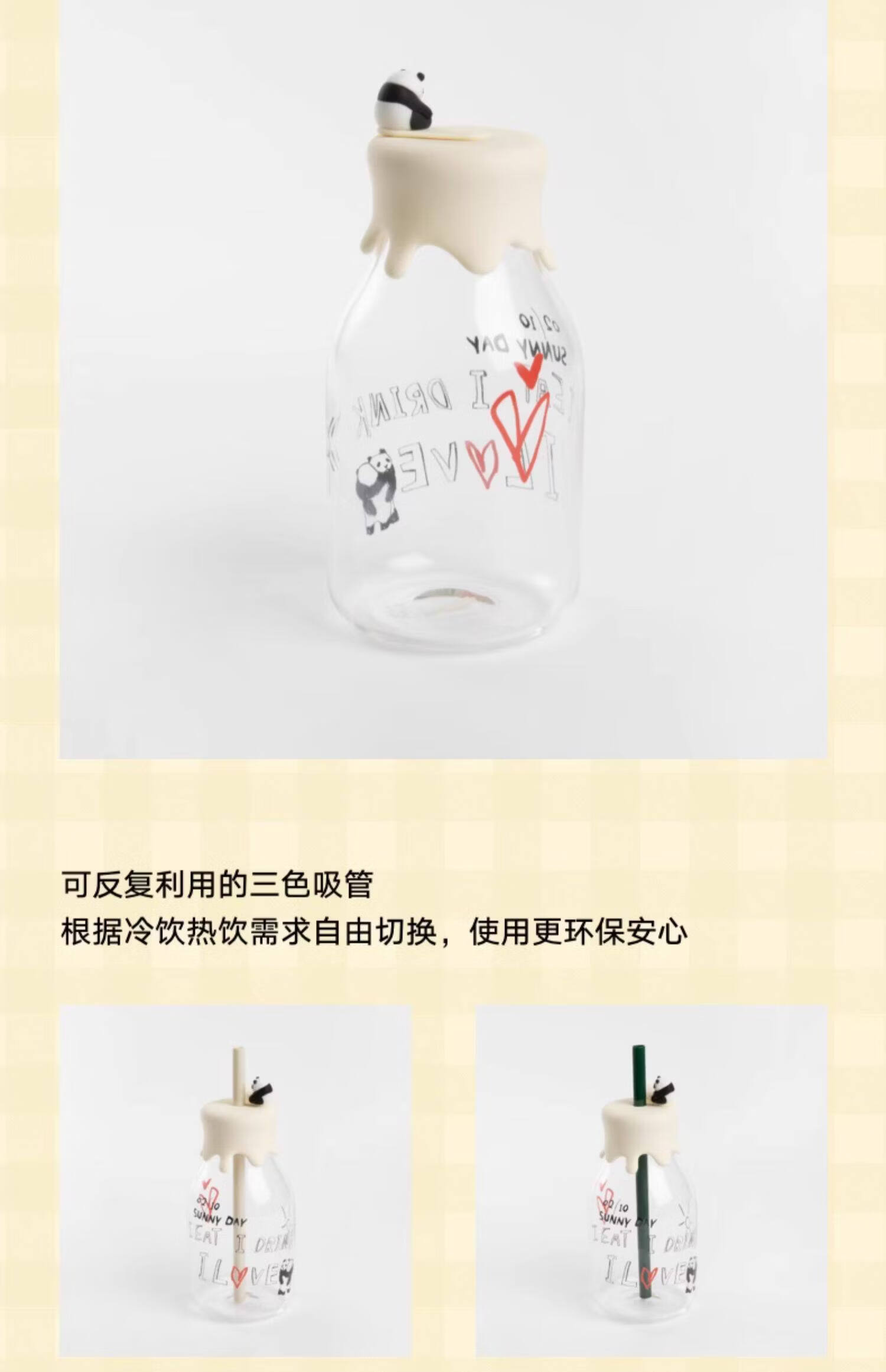 野兽派家居熊猫嘭嘭玻璃奶瓶吸管杯办公室喝水杯礼盒装送人 熊猫嘭嘭 玻璃奶瓶吸管杯 690ml 1只