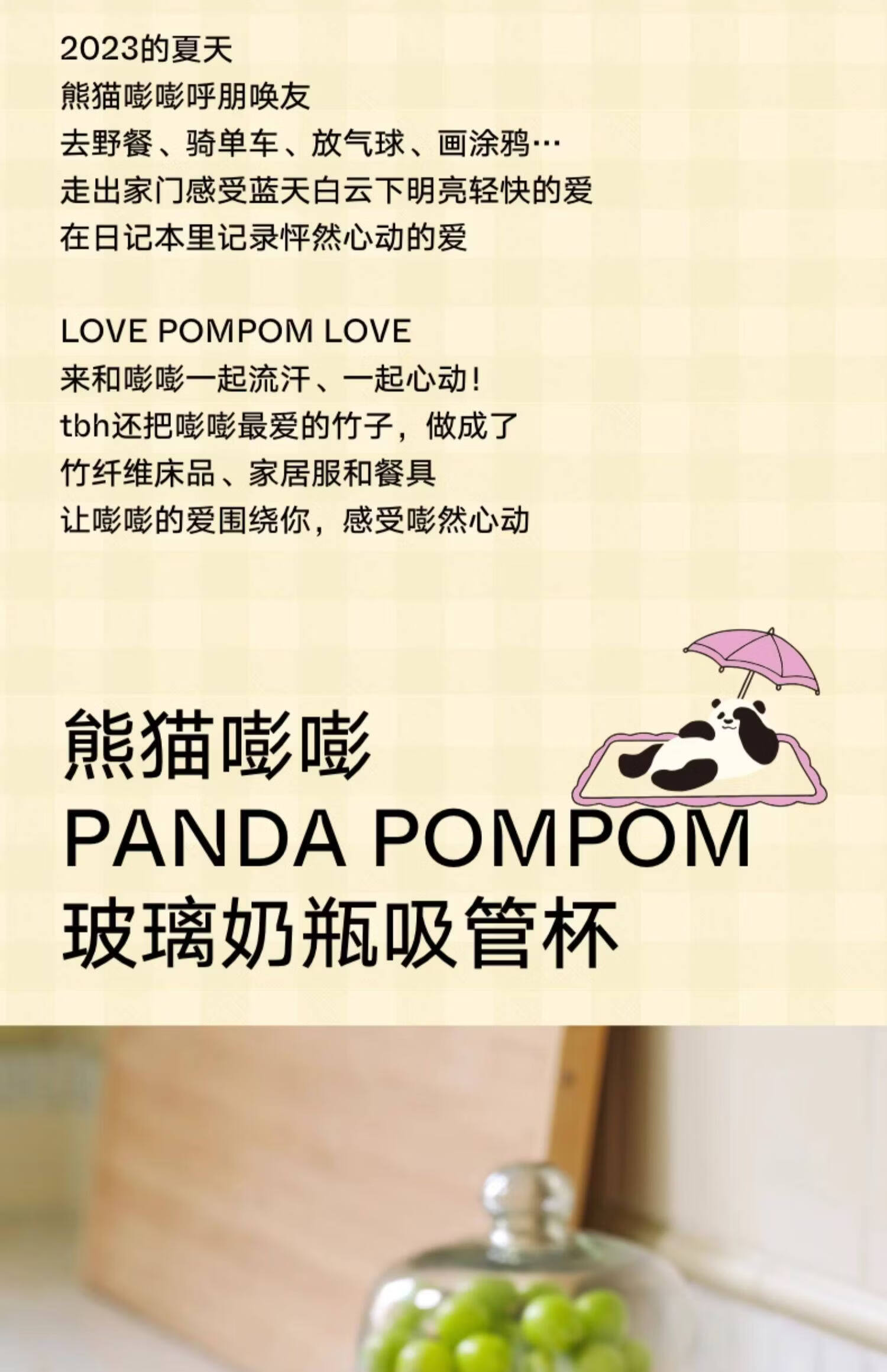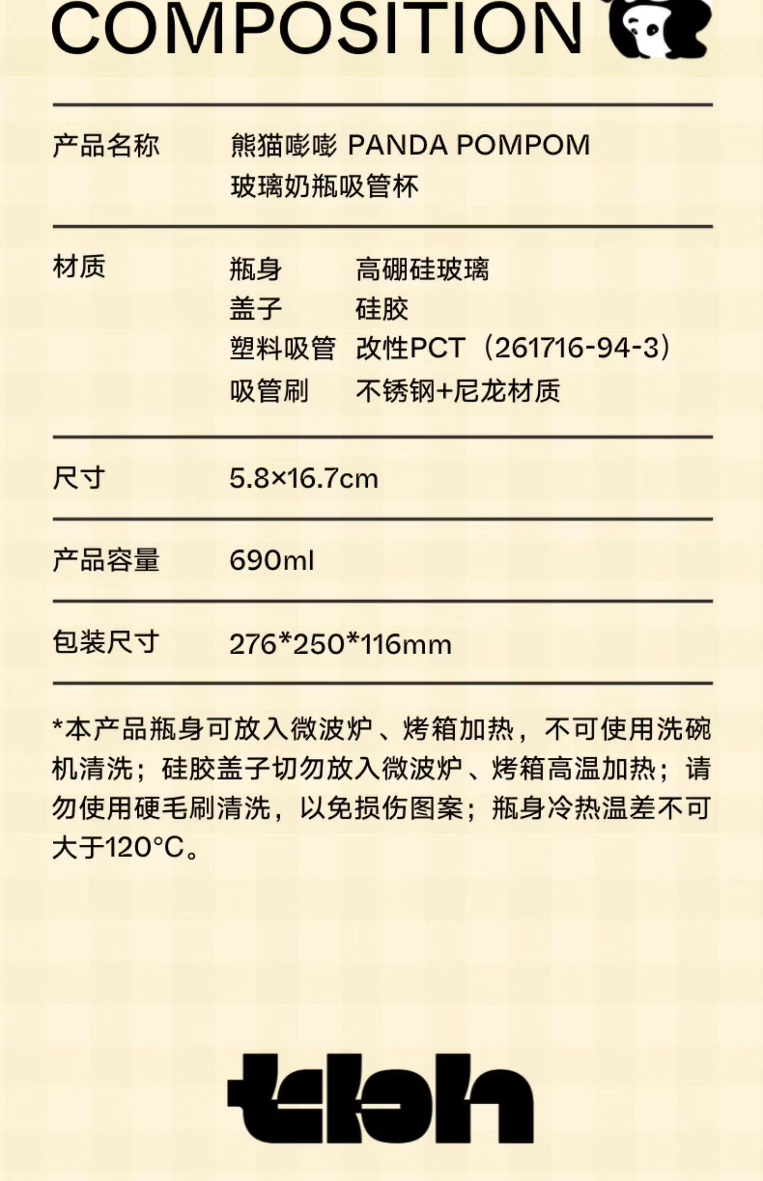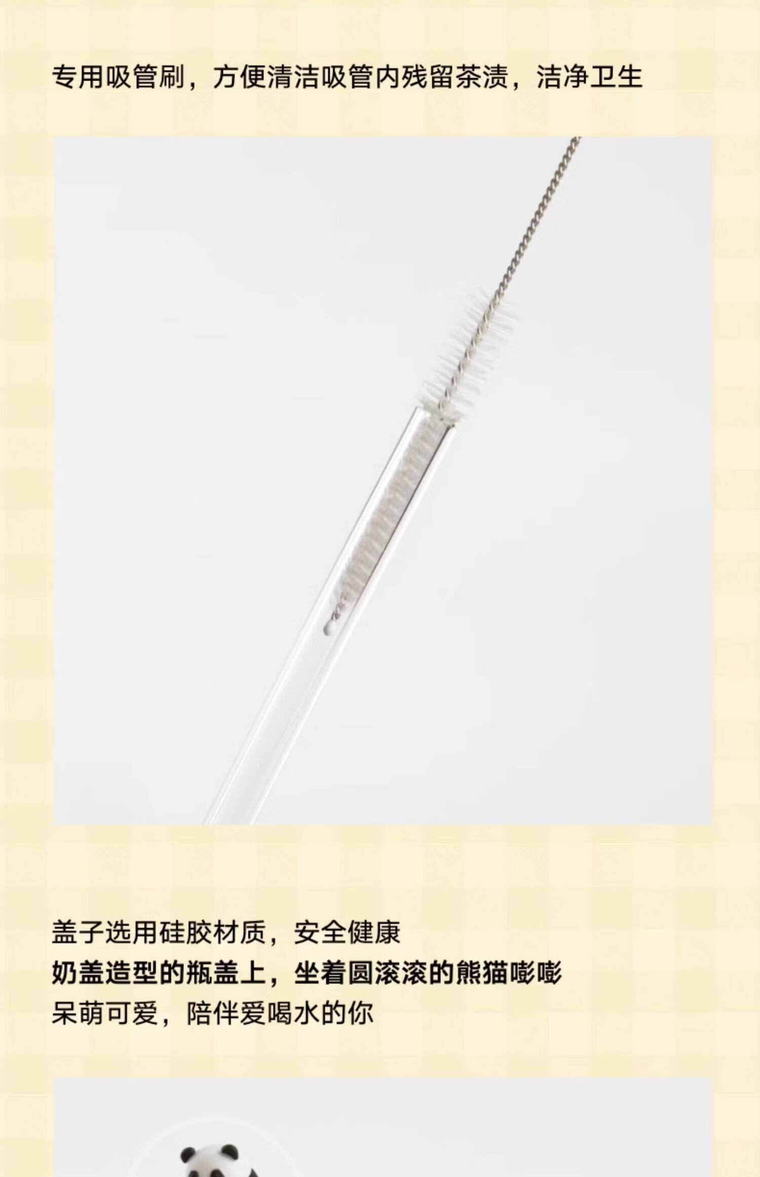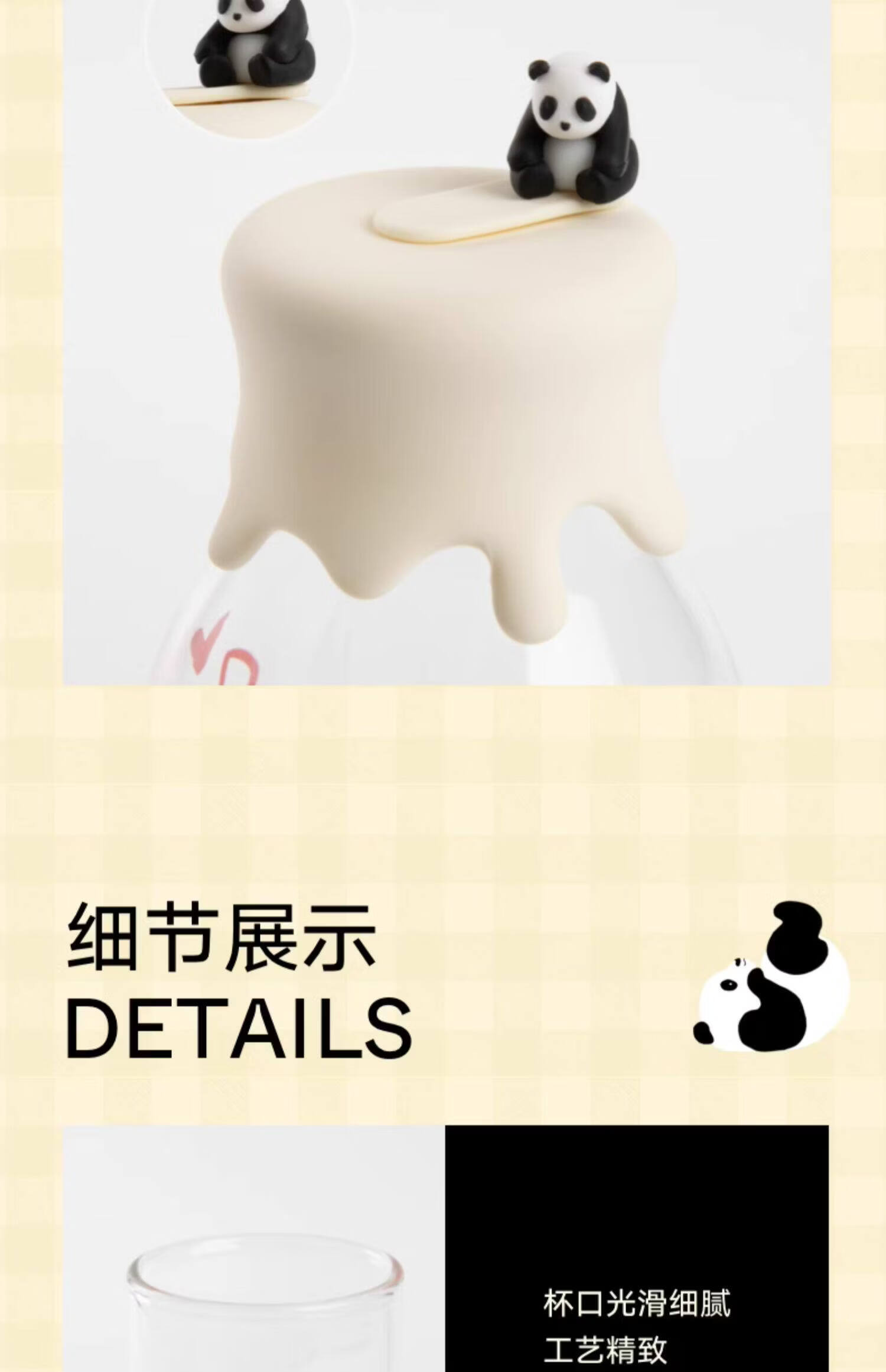 野兽派家居熊猫嘭嘭玻璃奶瓶吸管杯办公室喝水杯礼盒装送人 熊猫嘭嘭 玻璃奶瓶吸管杯 690ml 1只