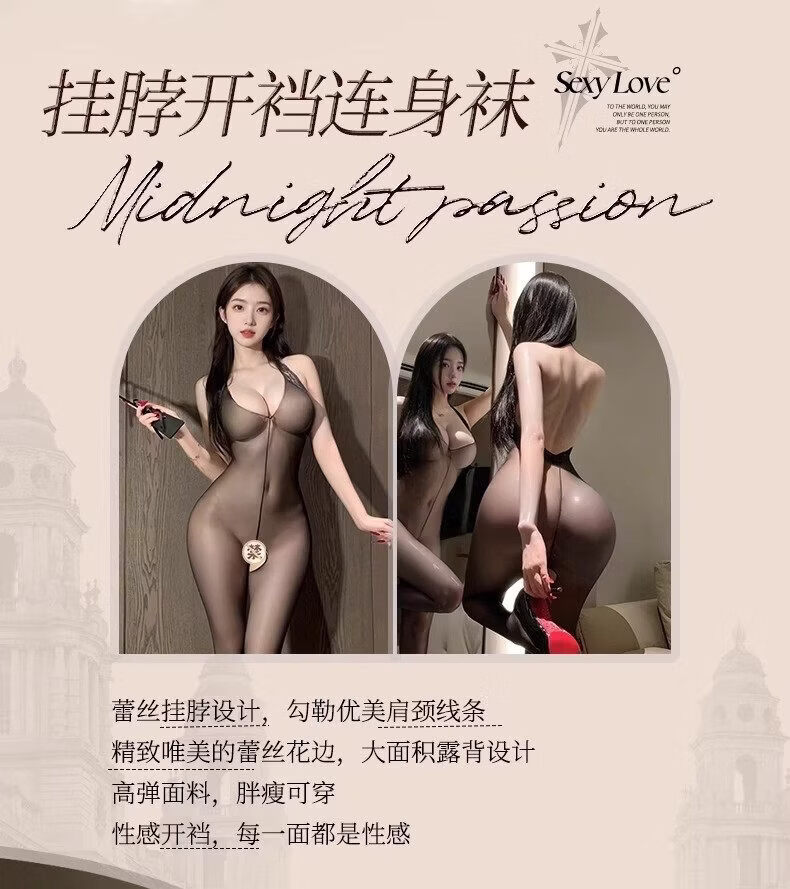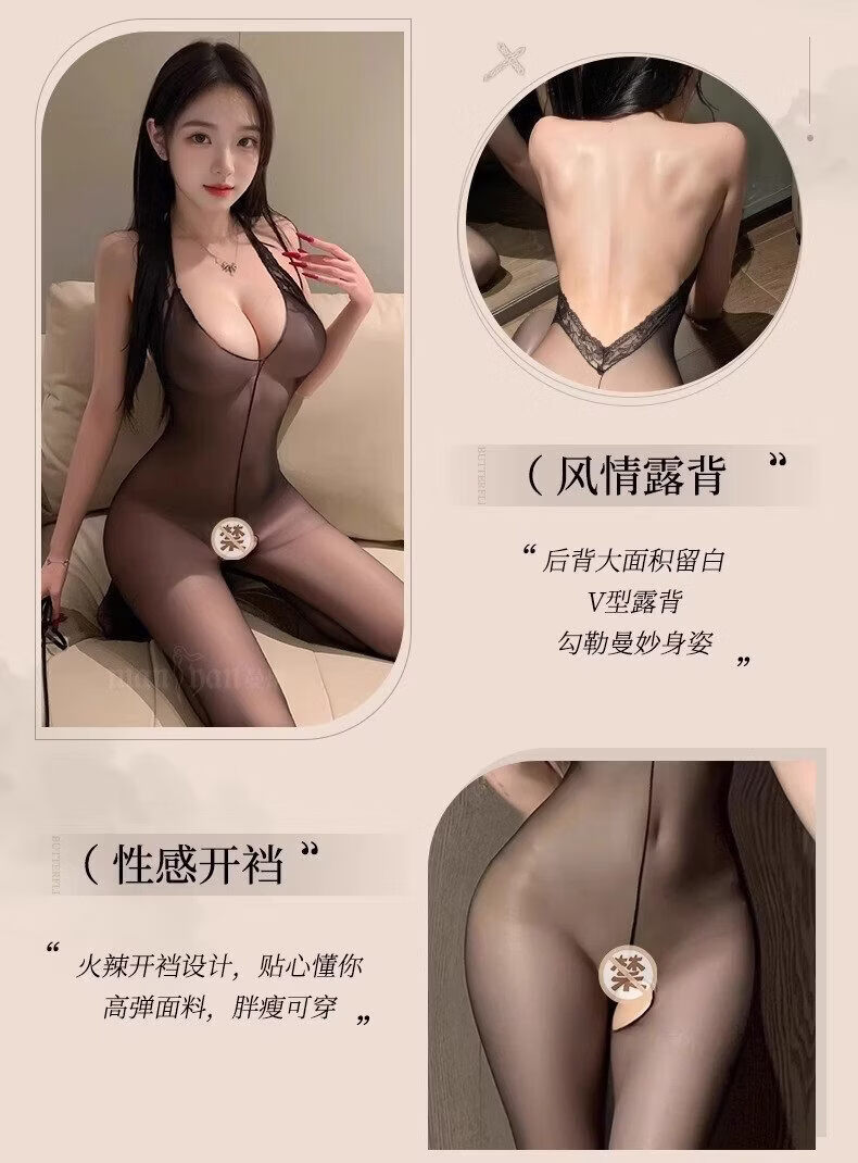 通用情趣丝袜诱惑性感开裆连身袜激情免脱大码内衣床上挑逗调情黑丝女 挂脖开裆连身袜 80 -130斤】保密發货