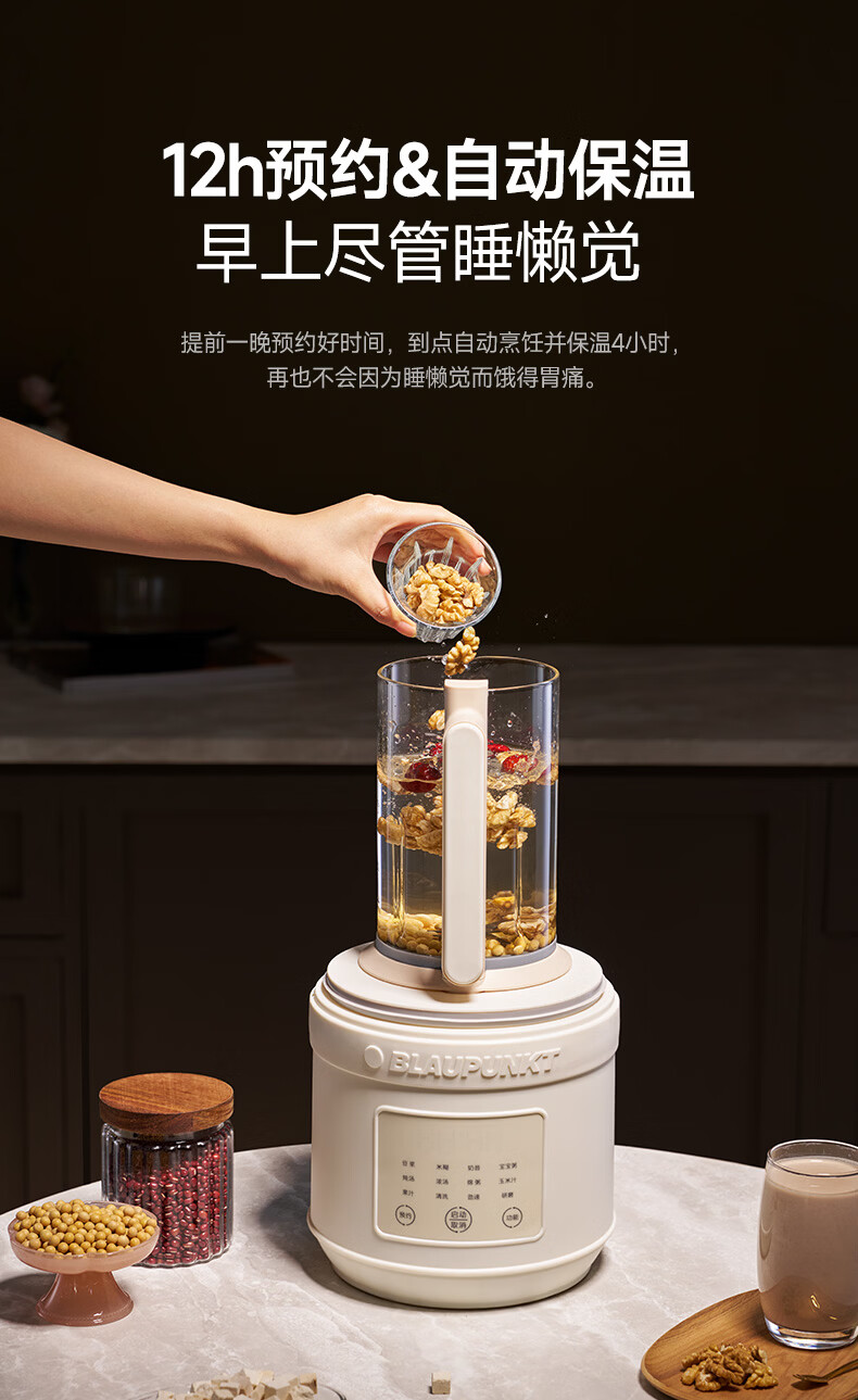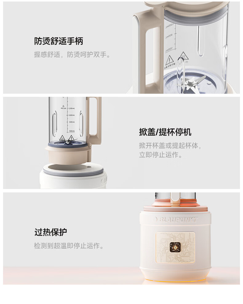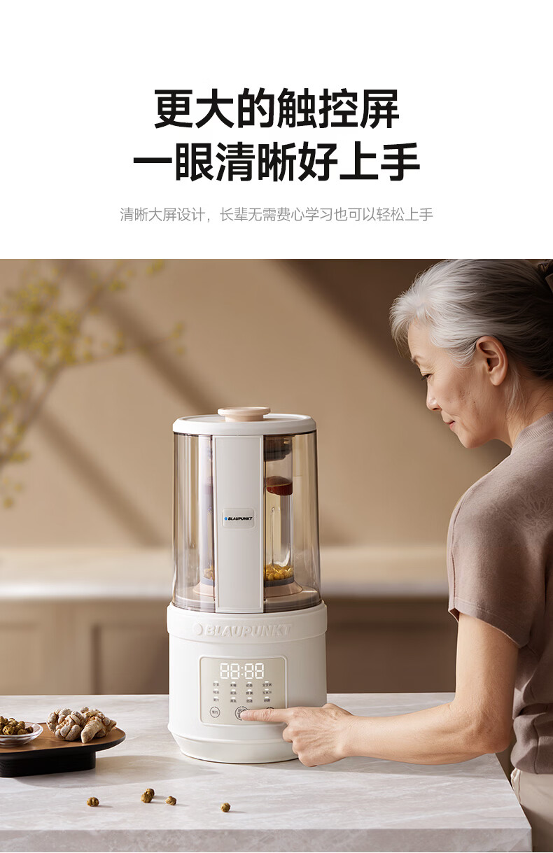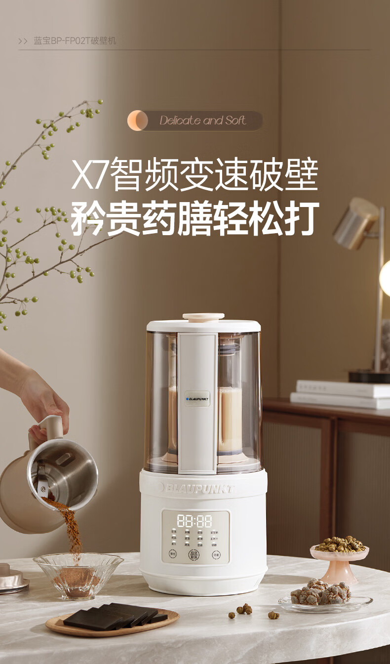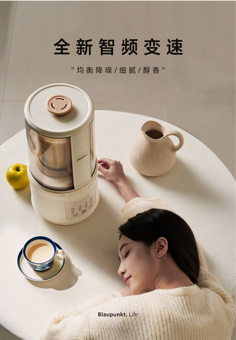 蓝宝(BLAUPUNKT)智频变速破壁机家用豆浆机全自动免煮静低音破壁机米糊机磨粉机钛盾底盘02T 不锈钢盖
