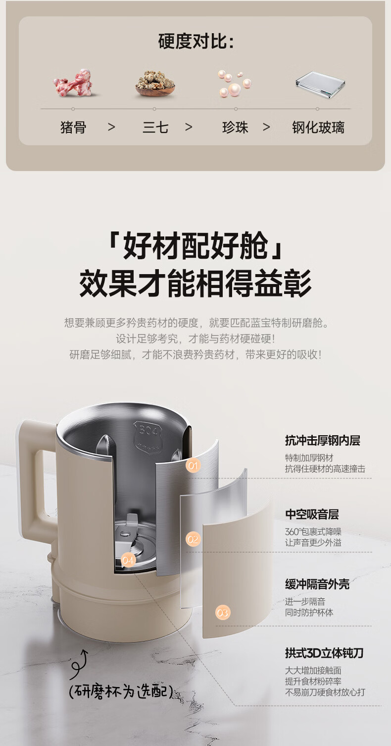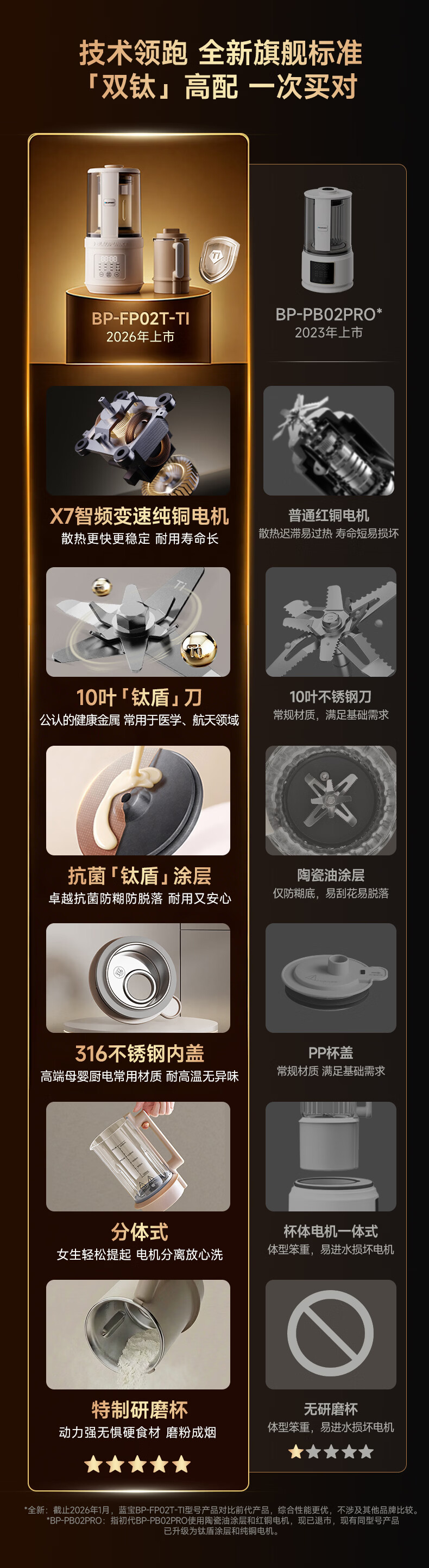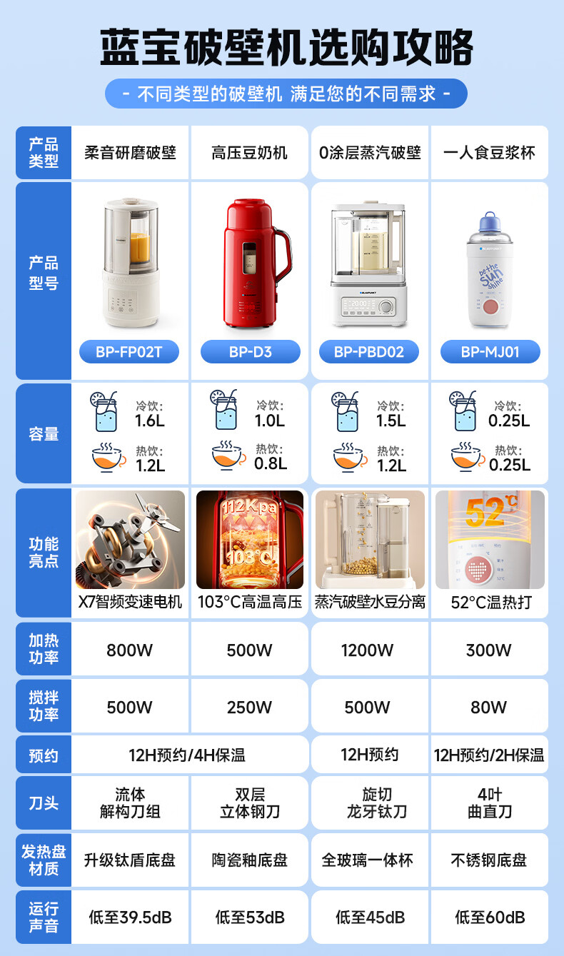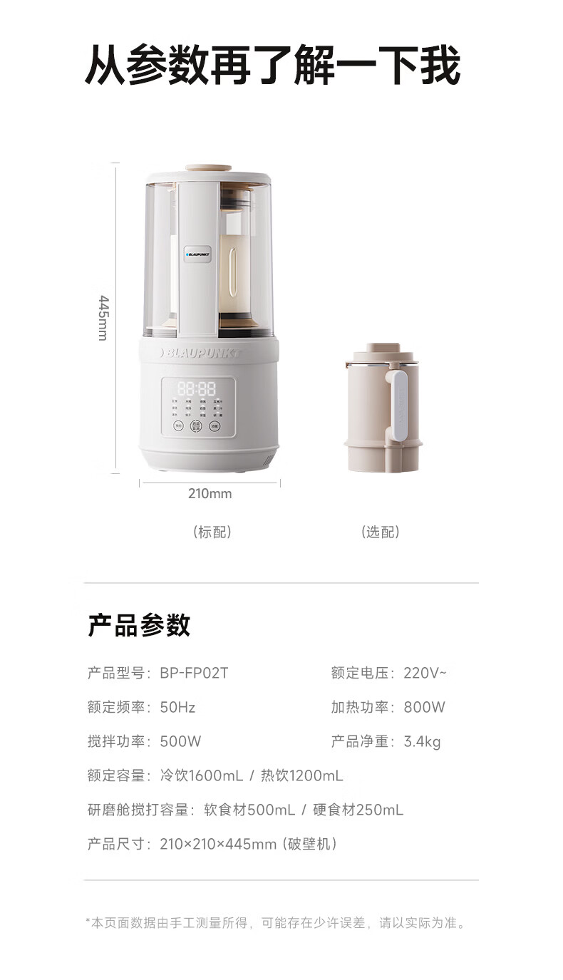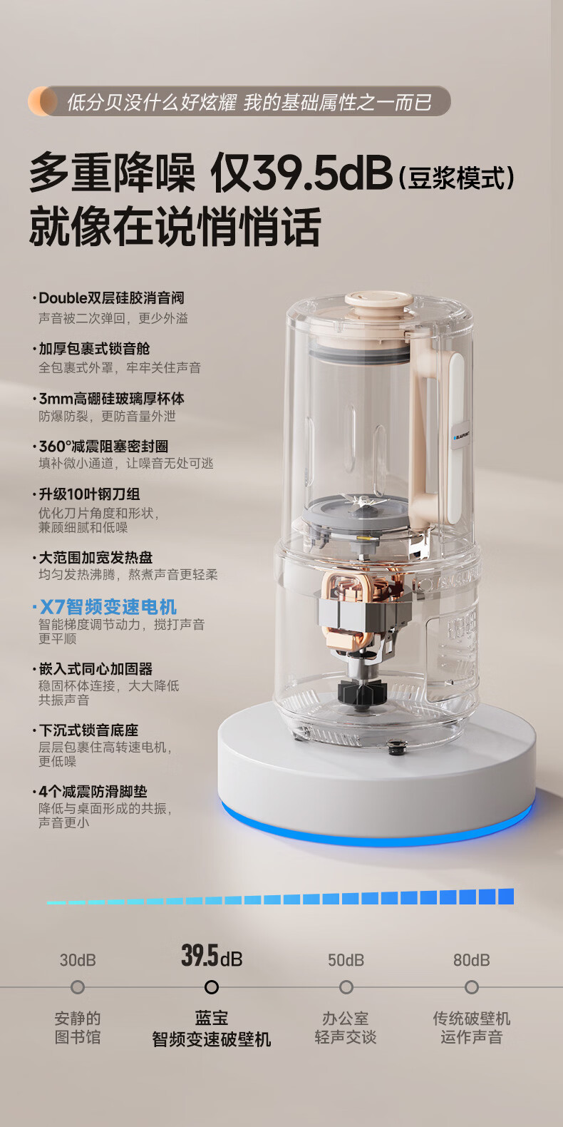 蓝宝(BLAUPUNKT)智频变速破壁机家用豆浆机全自动免煮静低音破壁机米糊机磨粉机钛盾底盘02T 不锈钢盖