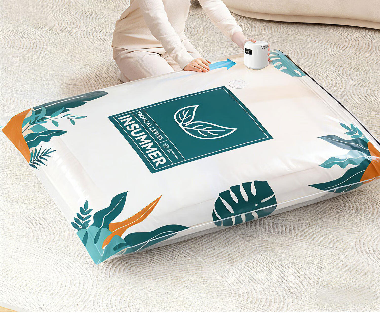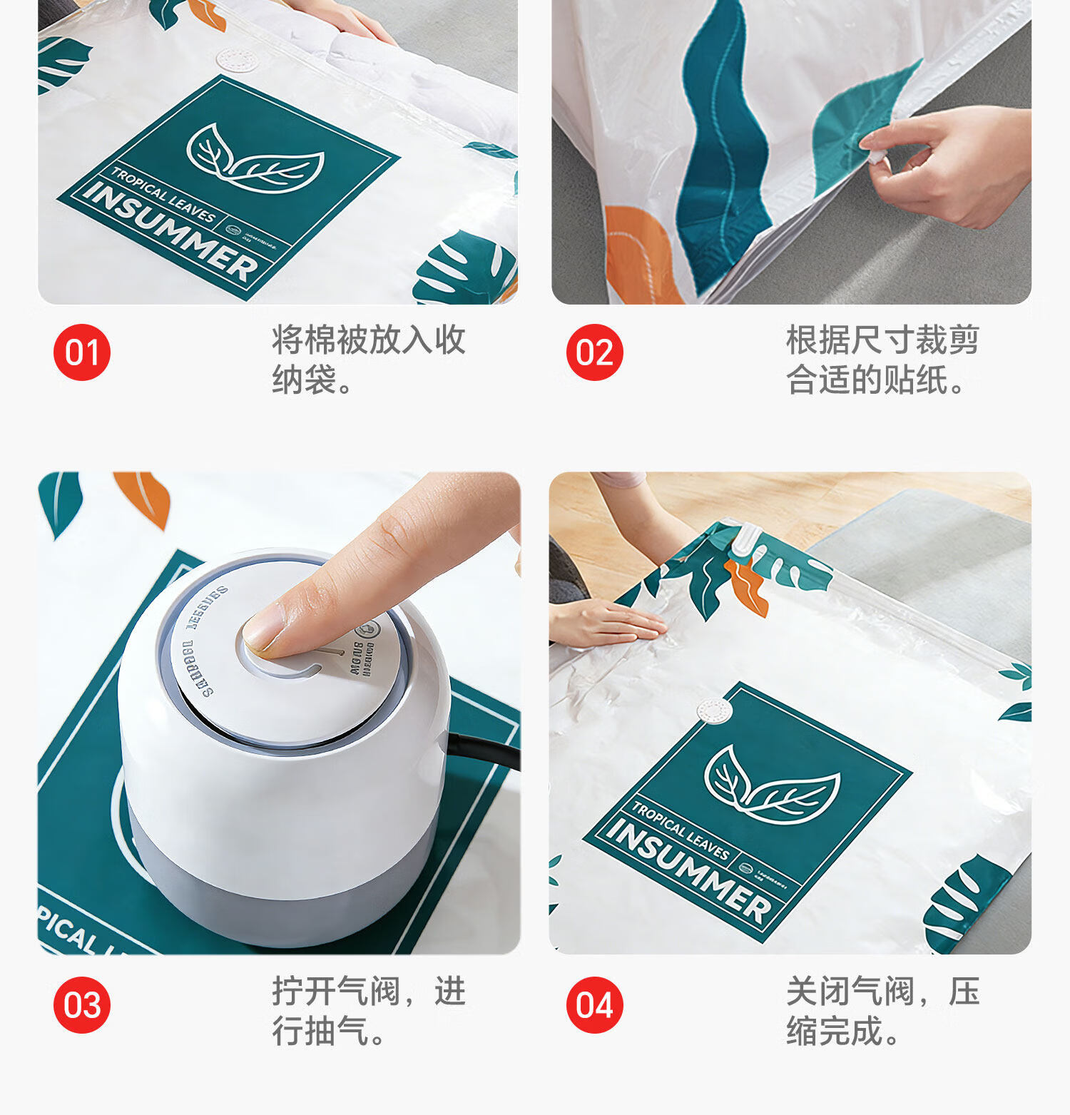 吱凡日本真空压缩袋收纳袋装被子羽绒服衣物衣服专用神器免抽气电抽气 四口之家推荐【3超大2特大3中2小】+电泵1个