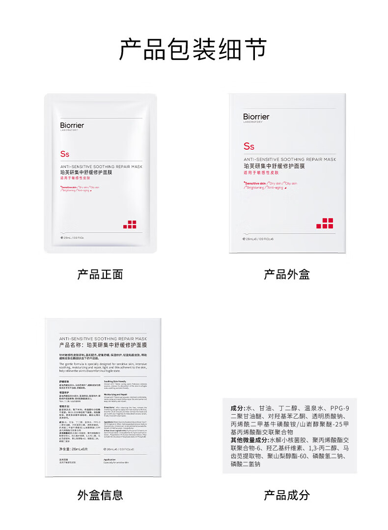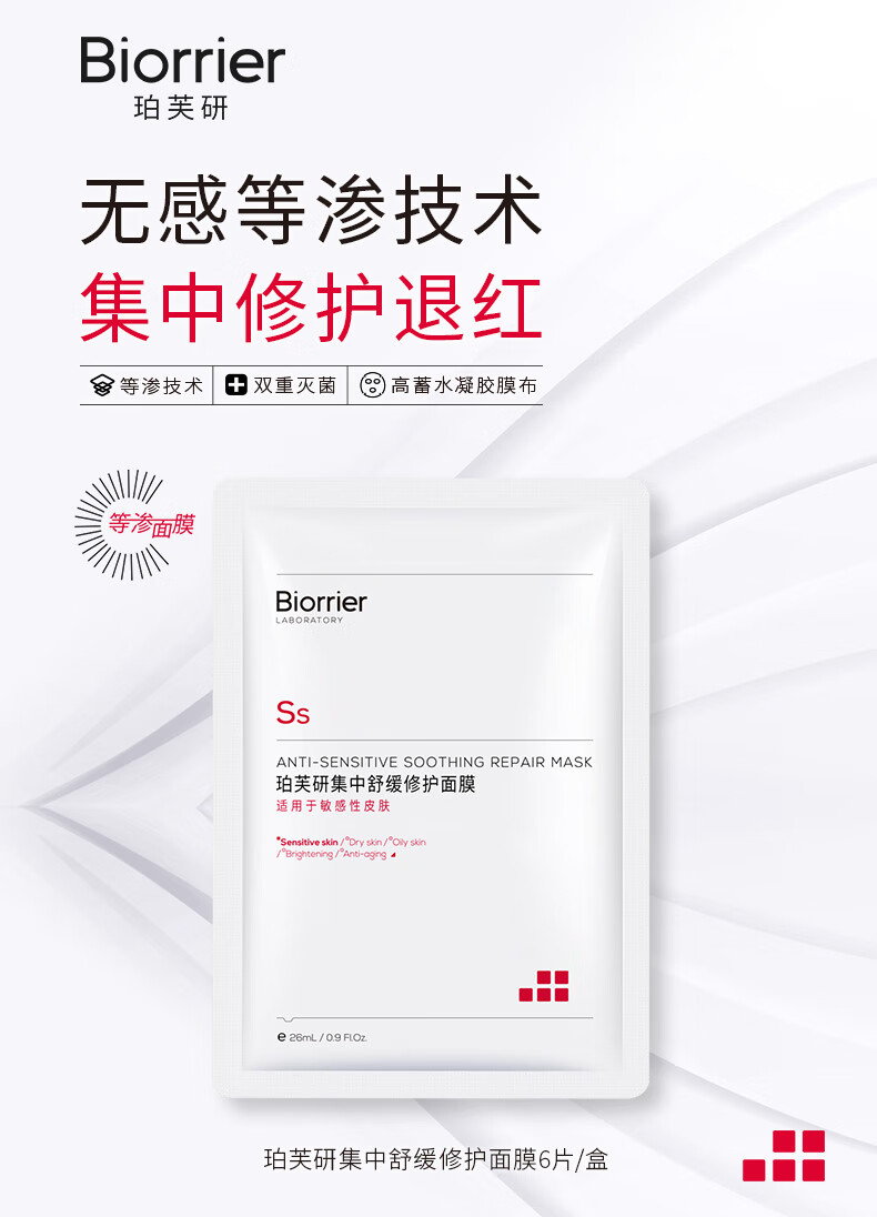 珀芙研舒缓修护补水保湿等渗 敏感肌改善泛红干痒皮肤屏障维稳镇定男女 【限时抢】补水修护等渗面膜26ml*20片