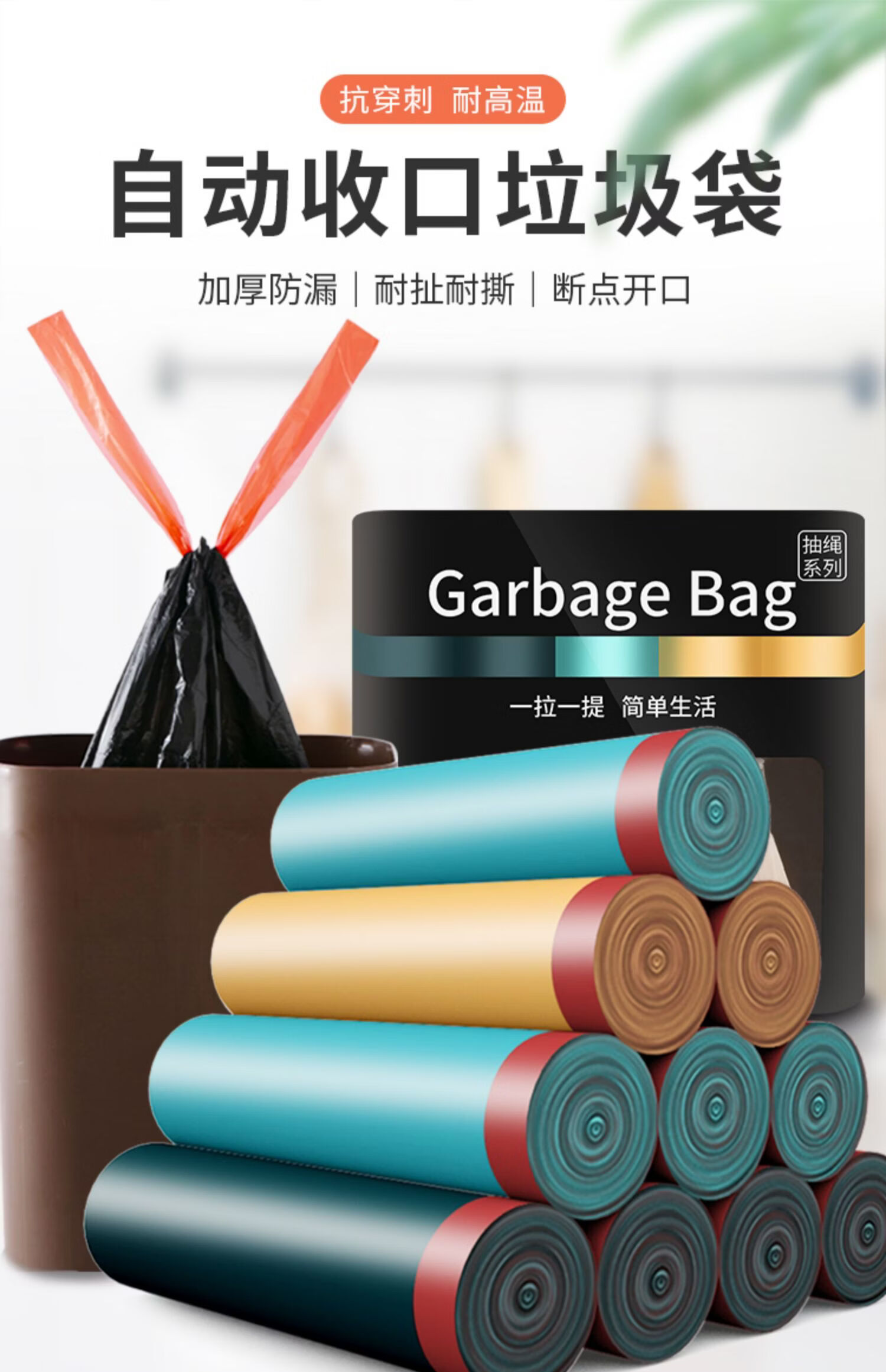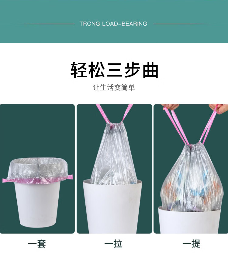 Kaooseen洗漱一次性用品垃圾袋加厚抽绳垃圾袋自动收口 1卷15只【体验装】