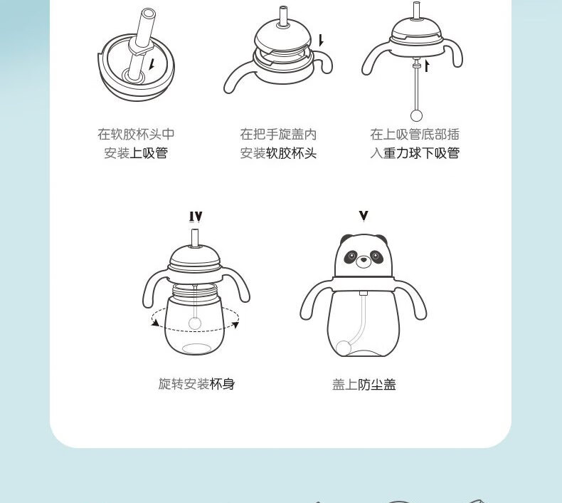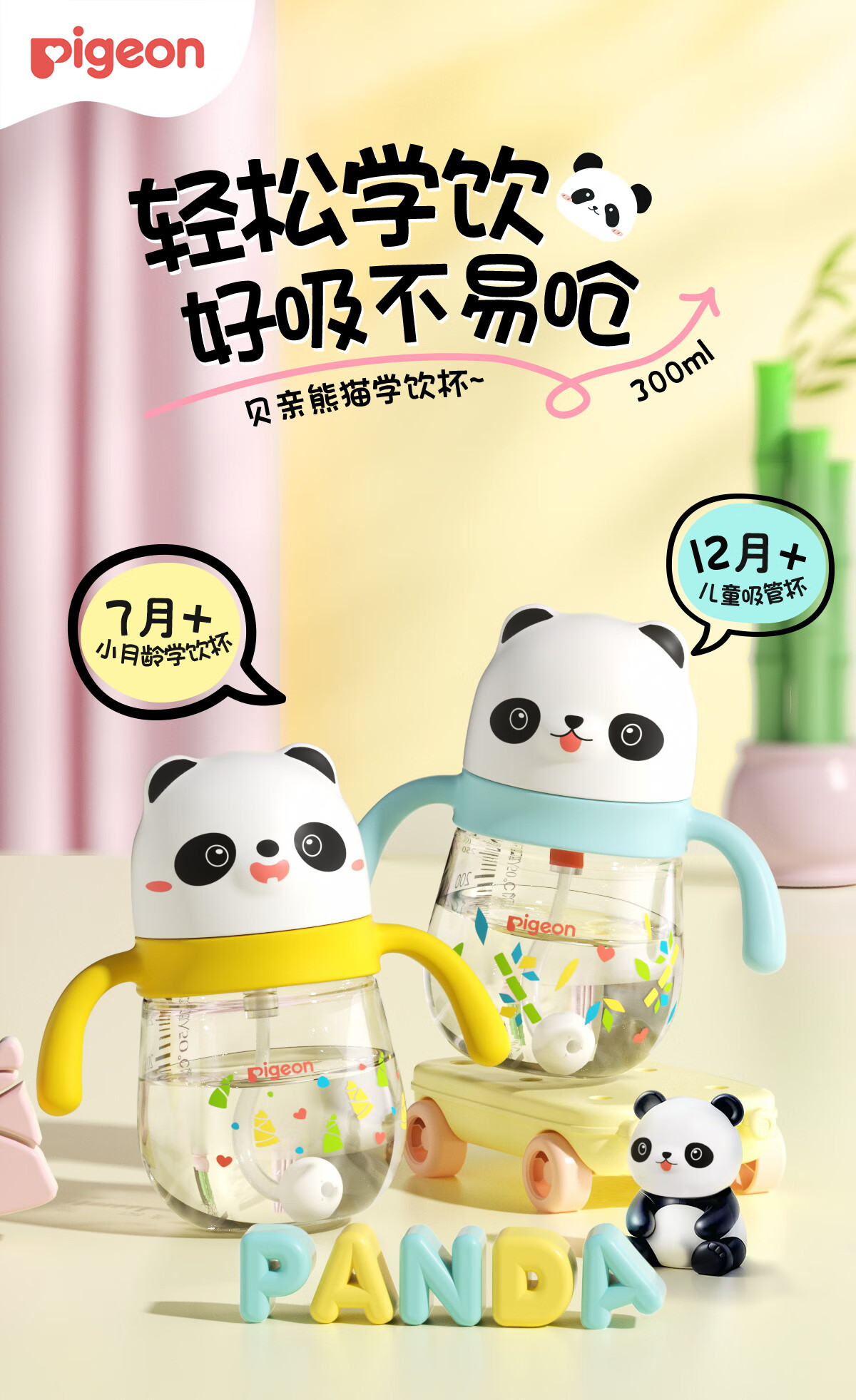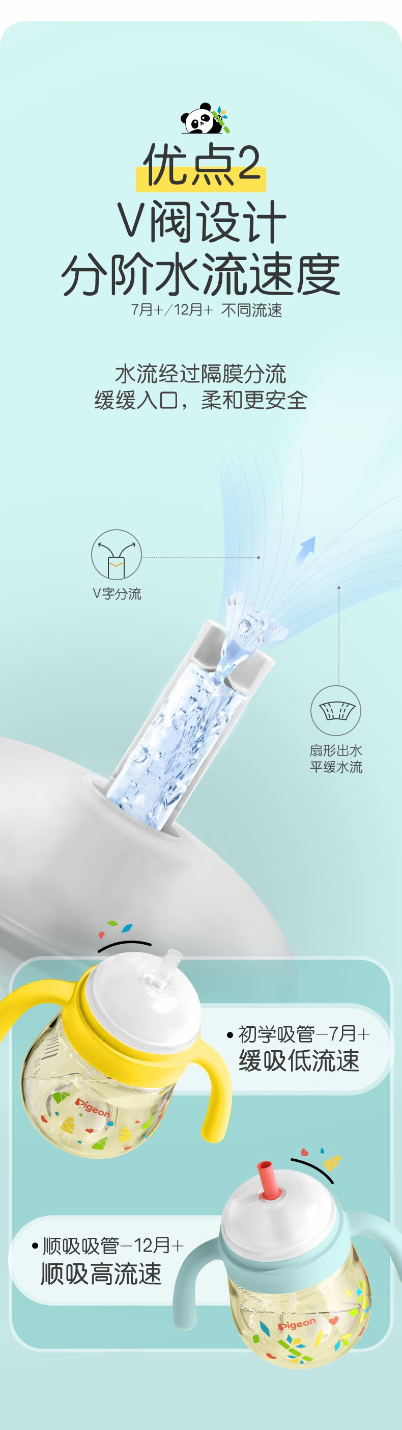 贝亲(Pigeon)熊猫系列水杯配件 上吸管替换装-低流速吸管(7月+)DA190