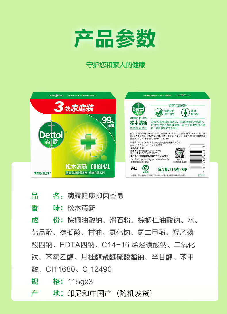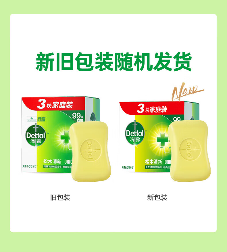 滴露抑菌香皂多香型清新焕肤家庭实惠装洗手洗脸沐浴皂男女士清洁肥皂 【洁净焕肤】薄荷香皂115g*3块