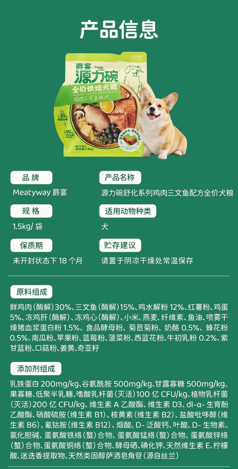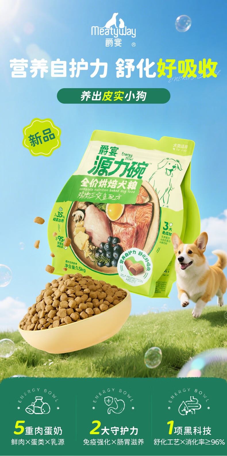 Meatyway爵宴源力碗全价烘焙犬粮鸡肉三文鱼配方1.5kg
