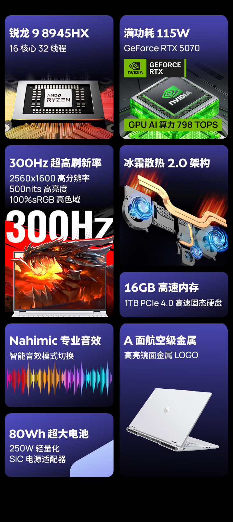 机械革命蛟龙16Pro 2026 16英寸游戏电竞笔记本电脑(R9-8945HX 16G 1T RTX5070 300Hz 白)