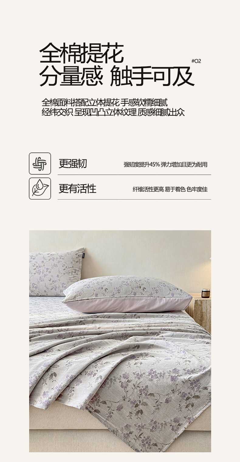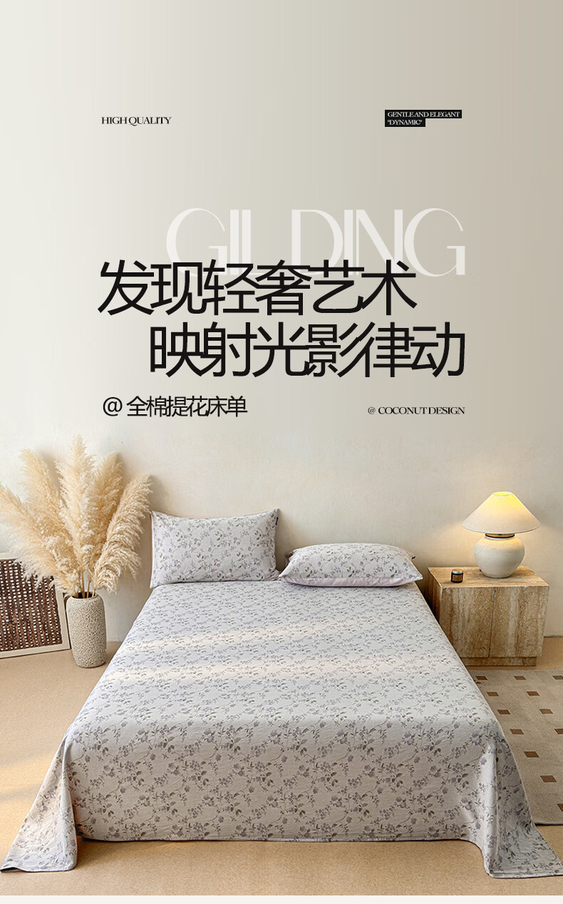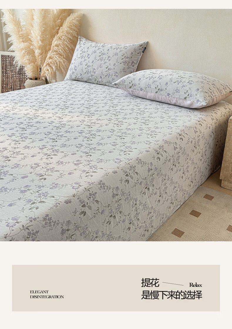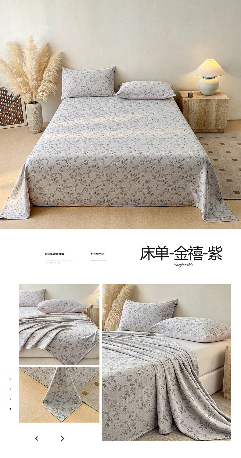 无印良品提花高端全棉床单单件纯棉被单2026新款单双人宿舍三件套床上用品 金禧-紫 【60支全棉面料 精美提花工艺】 180cm*230cm 单床单